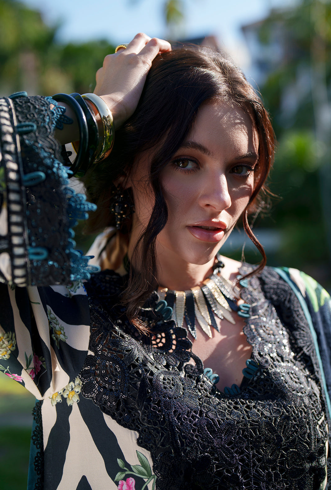 Summary: Elevate your summer wardrobe with 'Iris' by AJR Couture, a stunning Pakistani Lawn Suit that perfectly blends modern prints with traditional elegance. The shirt features a bold black and white zebra pattern, softened by vibrant floral motifs and anchored by a sophisticated black embroidered neckline. Intricate embroidered borders add a luxe touch to the hem and sleeves. Paired with a soft printed Chiffon dupatta in contrasting teal and comfortable cotton trousers, this ensemble is breathable and chic. Ideal for Eid gatherings, garden parties, or casual evening events, this unstitched dress material offers versatility and style. A must-have Black ethnic outfit for the season.