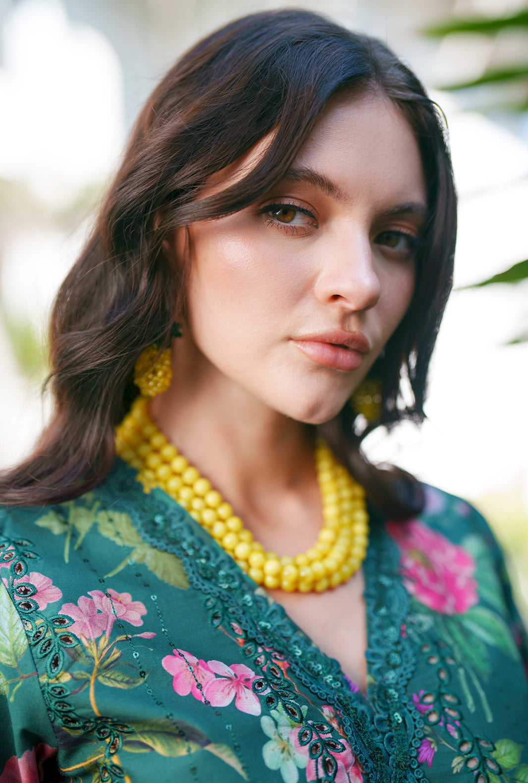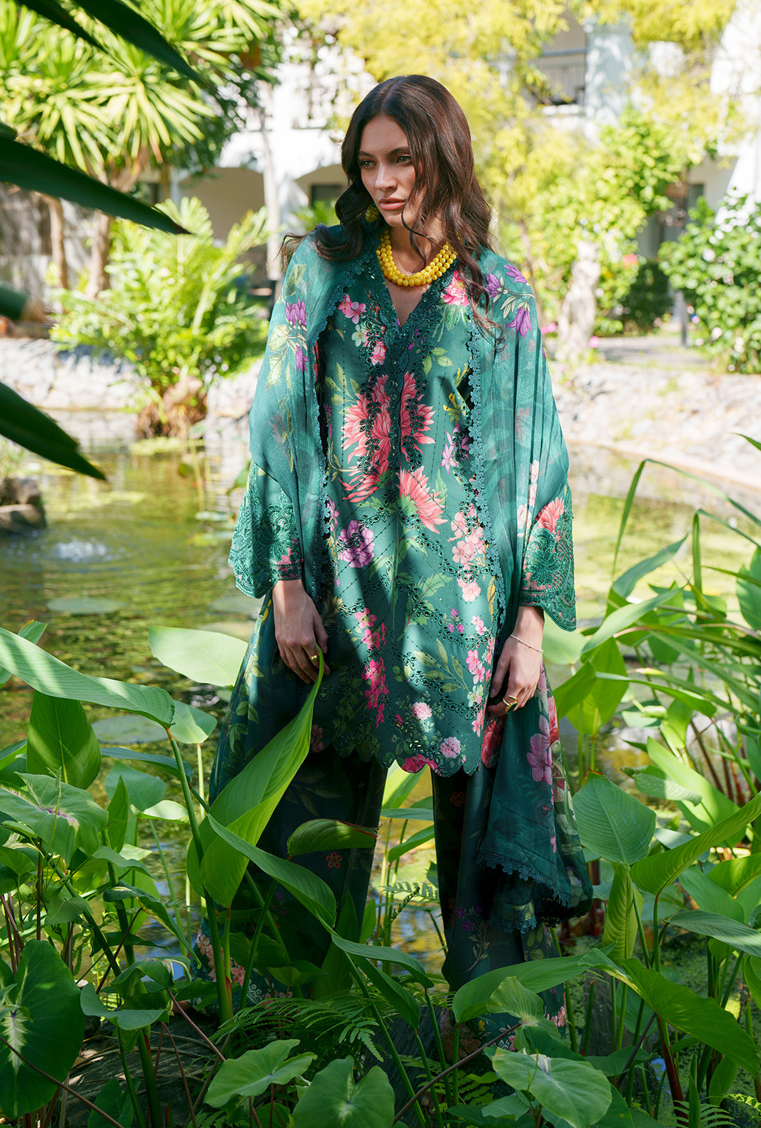 Fabric: Work Technique: Embroidered Best worn In: All Season Package Includes: 3PC Shirt, Dupatta & Trouser Fabric: Lawn Description: TALI features a printed lawn shirt beautifully adorned with delicate Chikankari embroidery on the front and an embroidered neckline patti for a refined touch. Embroidered sleeve and trouser borders enhance the elegance, while printed lawn sleeves and back maintain a cohesive charm. Paired with printed cotton trousers and a soft chiffon printed dupatta, this ensemble radiates timeless grace and sophistication. Unstitched Package Includes: Printed Lawn Chikankari Embroidered Front Fabric Printed Lawn Sleeves Fabric Printed Lawn Back Fabric Embroidered Front Neckline Patti Embroidered Sleeves Border Embroidered Trousers Border Printed Cotton Trousers Fabric Chiffon Printed Dupatta |