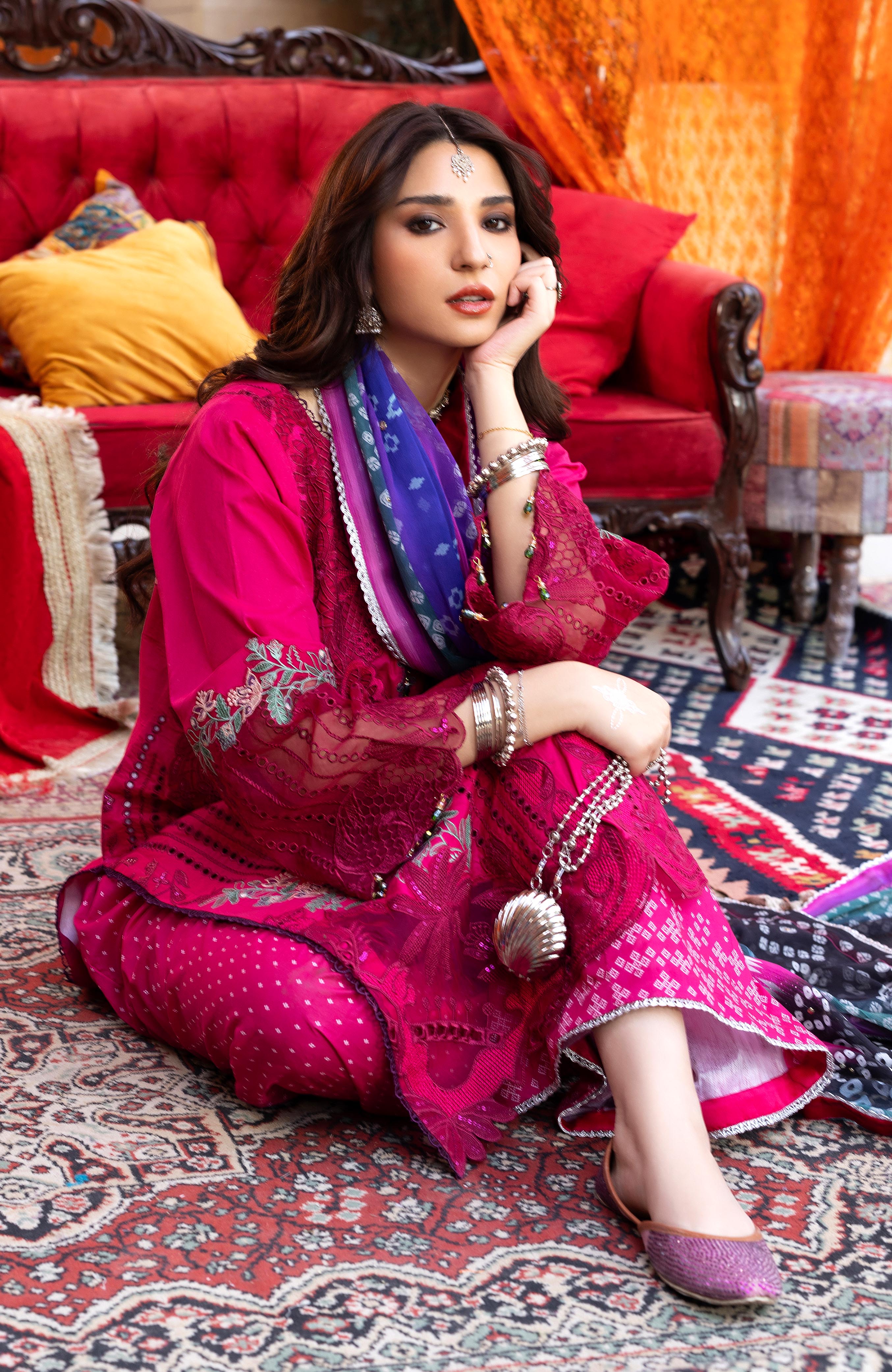 Summary: Step into sophistication with this vibrant Magenta Pakistani Suit from the Al Zohaib Bandhani Lawn collection. Crafted from breathable lawn fabric, this unstitched ethnic wear is a perfect choice for the Spring/Summer season. The kameez is a masterpiece of craftsmanship, featuring intricate Chikankari embroidery on the front, elegantly accented with shimmering sequin work. Luxurious organza bunches and a detailed daman border enhance its formal appeal. This Pakistani Lawn dress beautifully combines traditional artistry with modern style, making it ideal festive clothing for Eid celebrations, weddings, and parties.