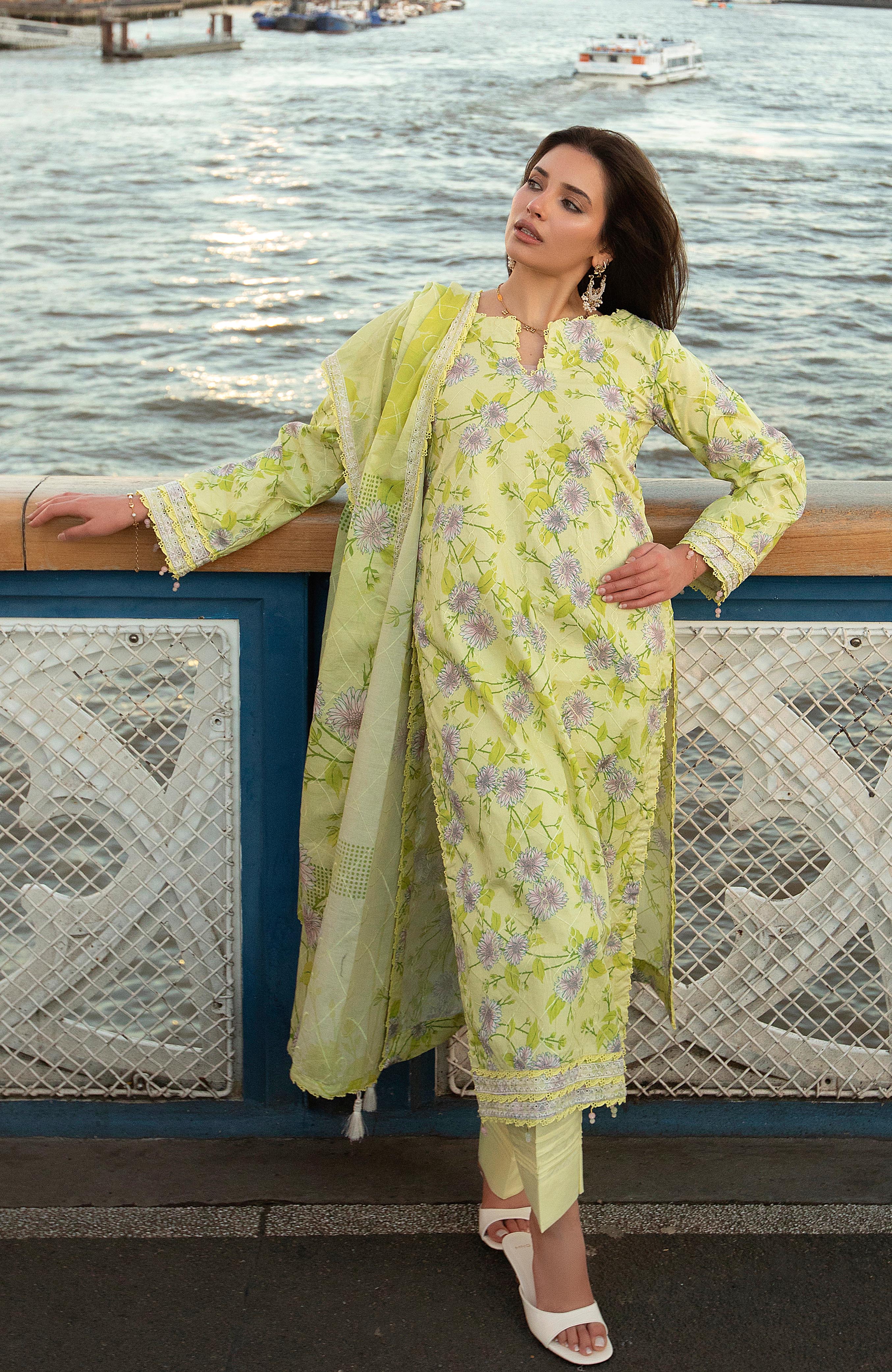 Fabric: Digital Printed Embroidered Front Digital Printed Embroidered Back Digital Printed Embroidered Sleeves Digital Printed Full Embroidered Scalloped Lawn Dupatta Dyed Trouser |