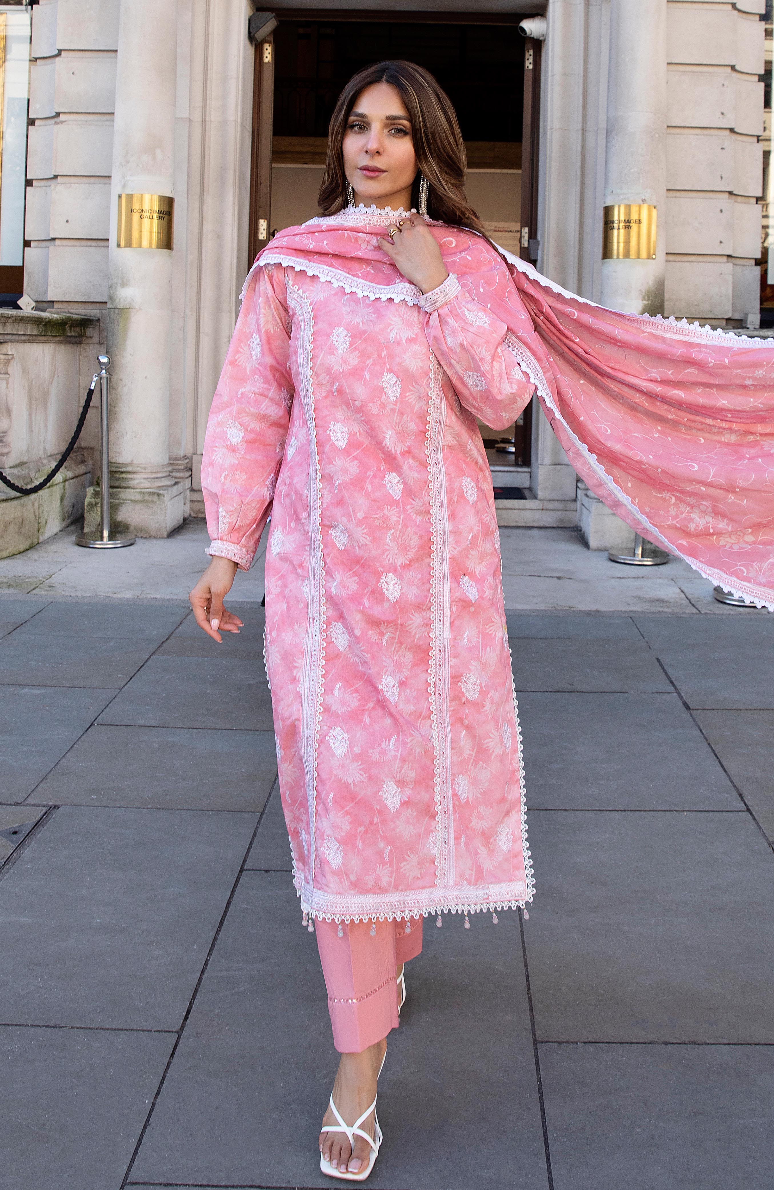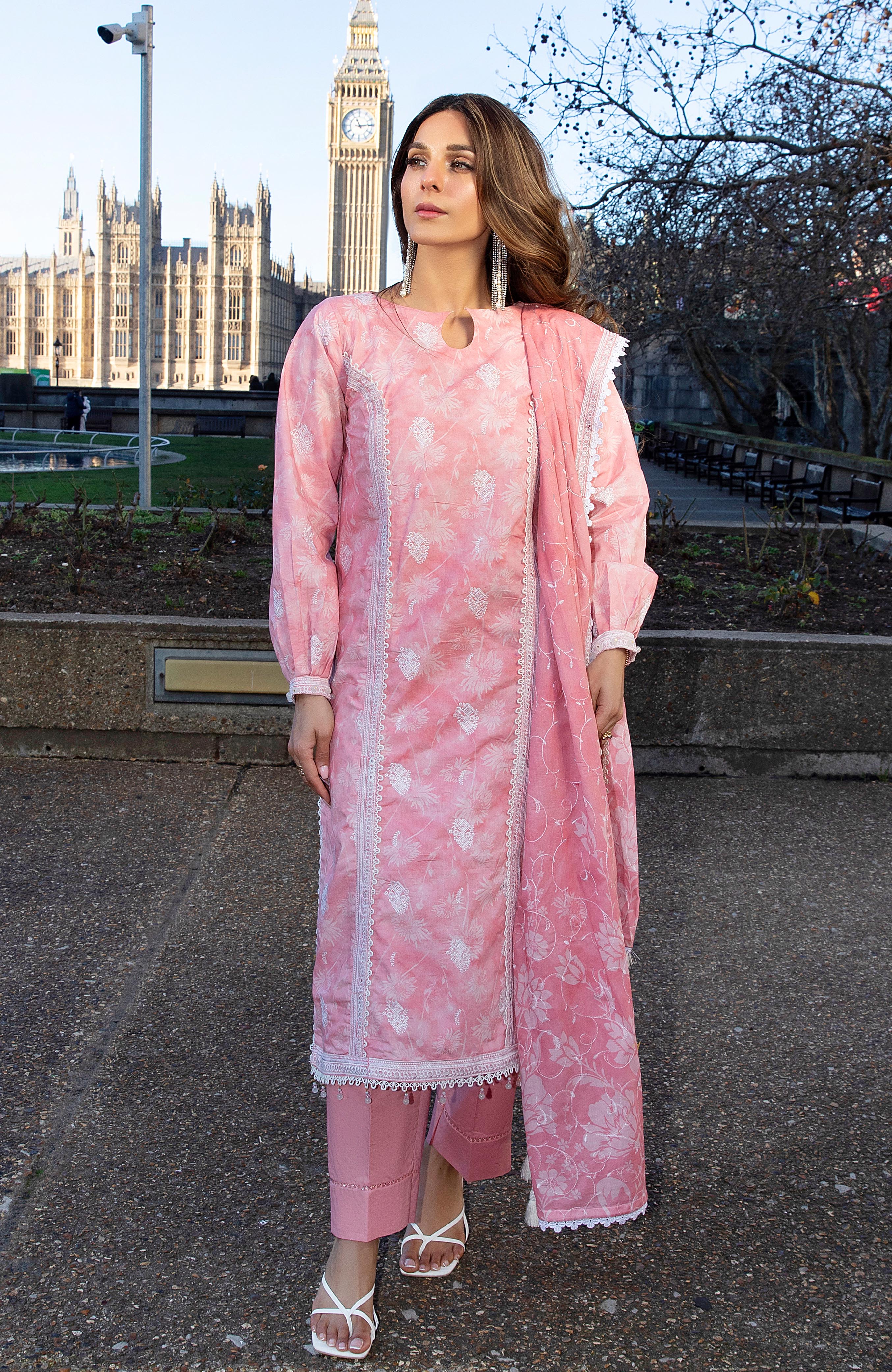 Summary: Embrace timeless grace with this stunning pink Pakistani Lawn Suit from Al Zohaib's Dhagakari collection. Crafted from premium, breathable lawn fabric, this unstitched dress is perfect for the Spring/Summer season. The kameez features intricate digital prints and delicate embroidery across the front, back, and sleeves, creating a look of sophisticated charm. This elegant Pakistani dress, in a beautiful pink hue, is ideal for formal gatherings, daytime parties, or Eid celebrations. A perfect piece of ethnic wear to elevate your festive wardrobe with effortless style and comfort.