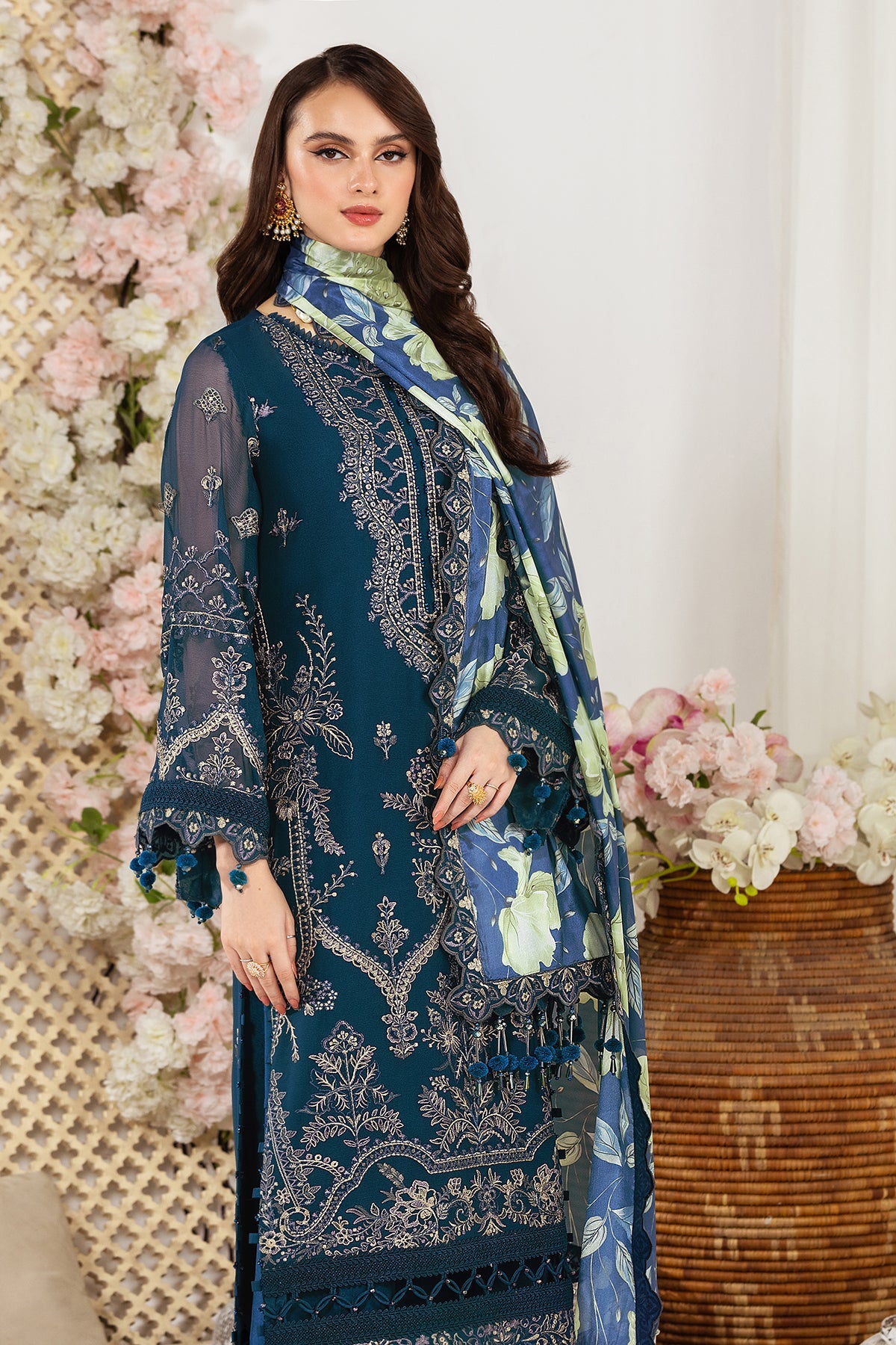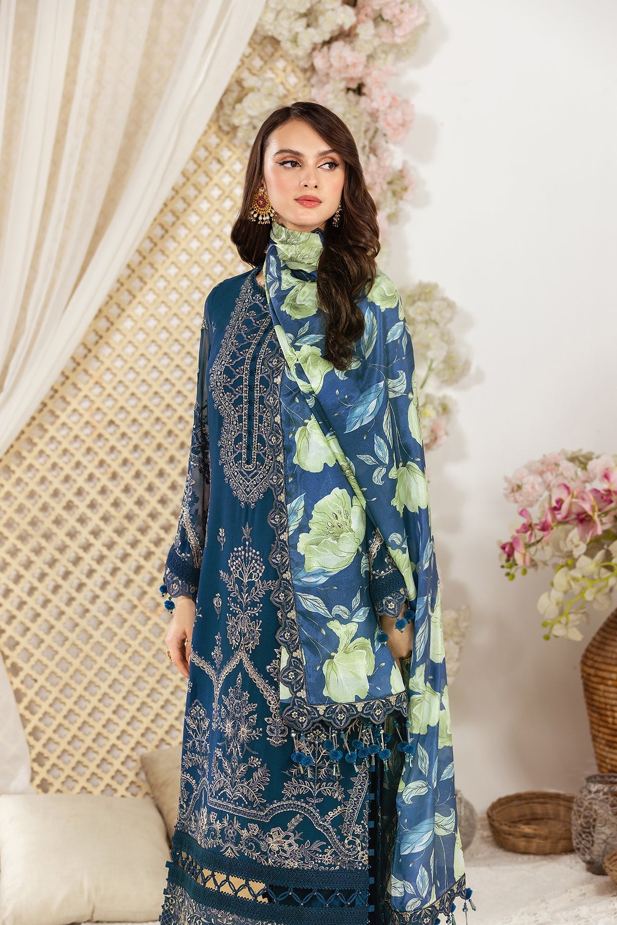 Fabric: Embroidered Chiffon Front Embroidered Chiffon Front Kali Embroidered Chiffon Back Embroidered Chiffon Sleeves Embroidered Sleeves Patch Embroidered Front + Back Patch Embroidered + Printed Silk Dupatta Dyed Grip Trouser |