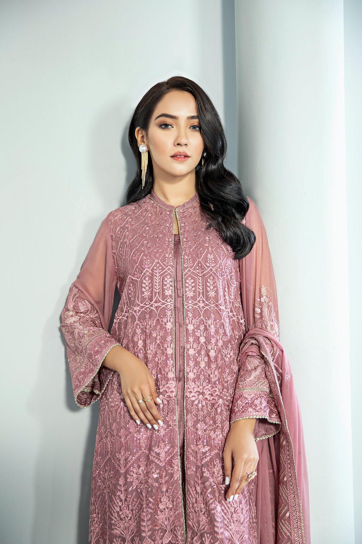 Embroidered Chiffon Front