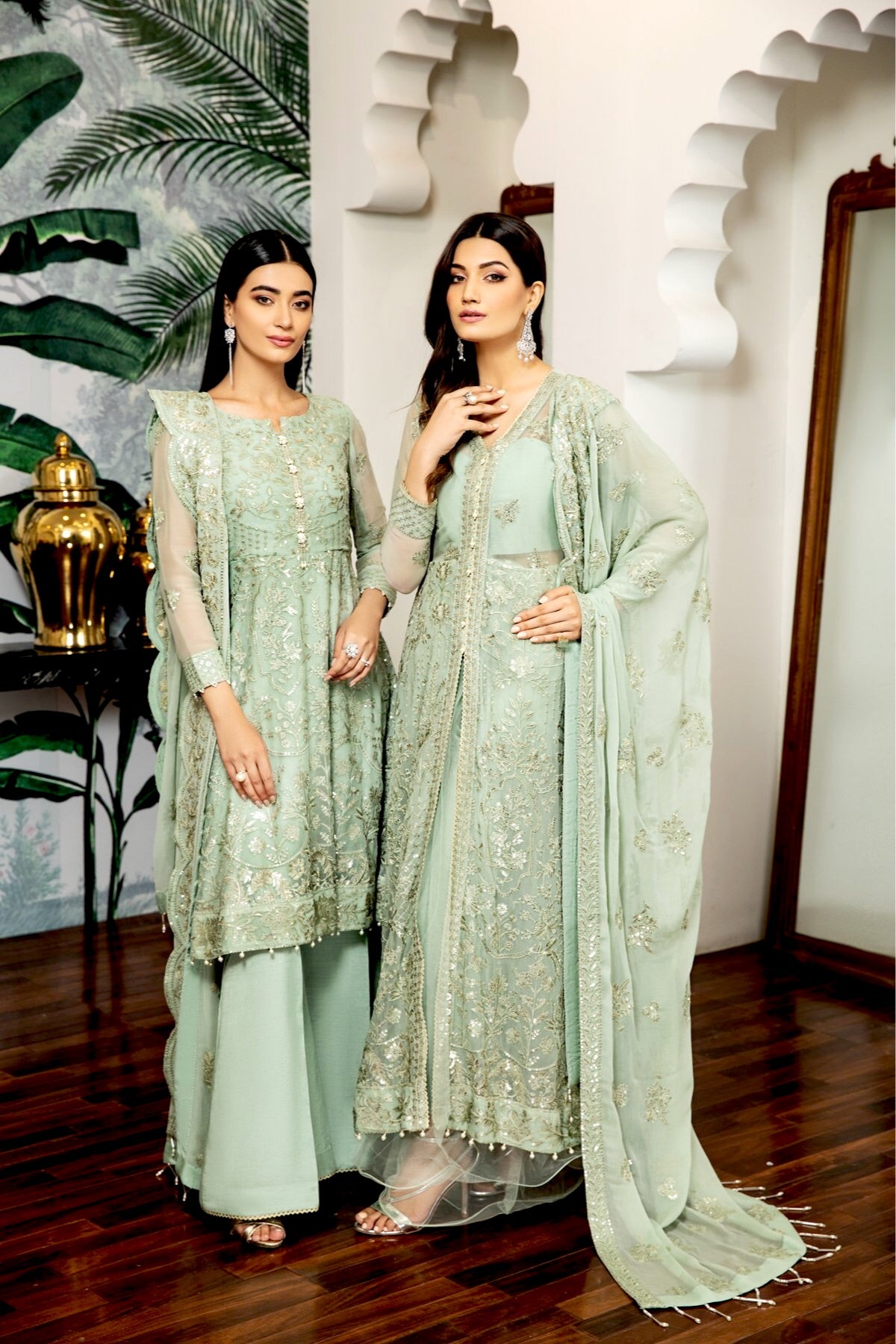 Fabric: Embroidered Chiffon Front Embroidered Chiffon Back Embroidered Front+Back Body Embroidered Chiffon Sleeves Embroidered Chiffon Front + Back Patch (2) Embroidered Chiffon Dupatta Dyed Raw Silk Trouser |