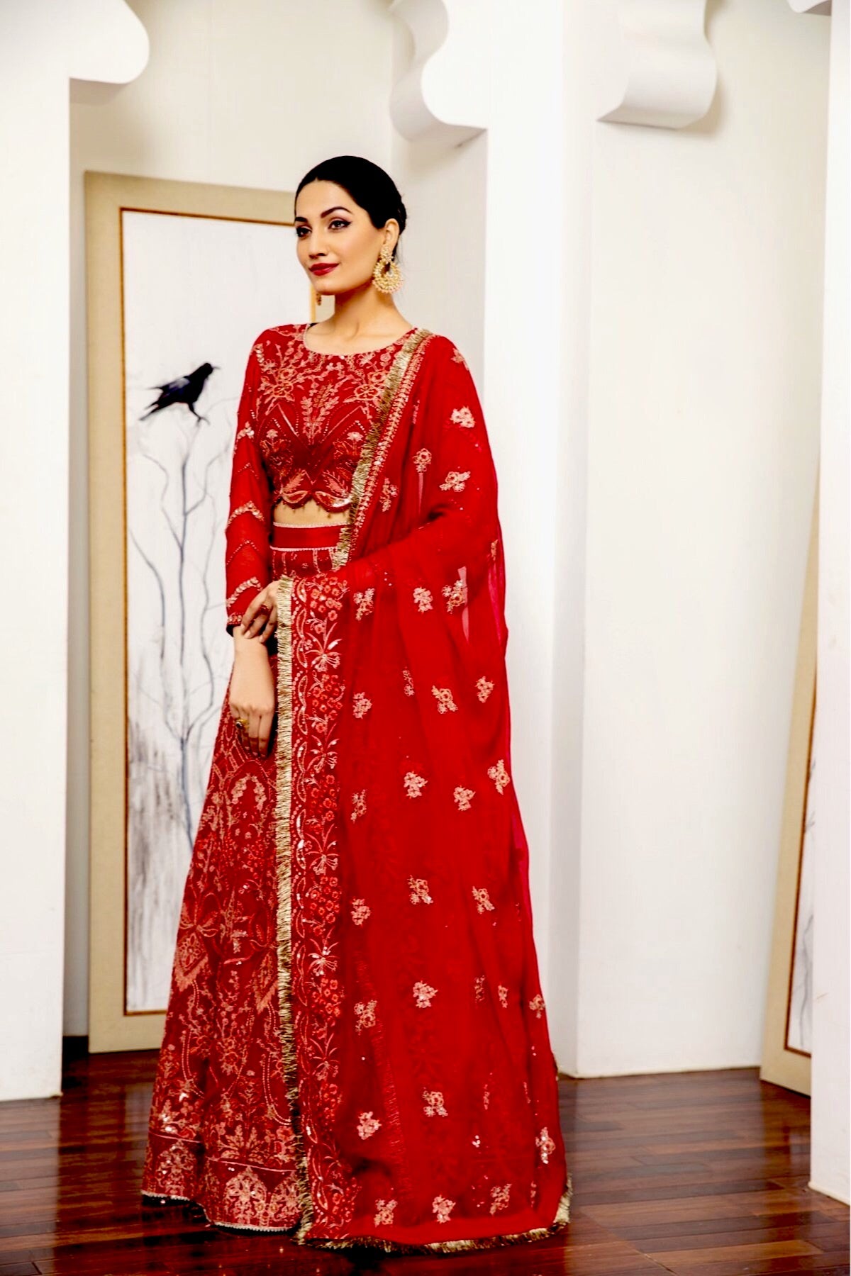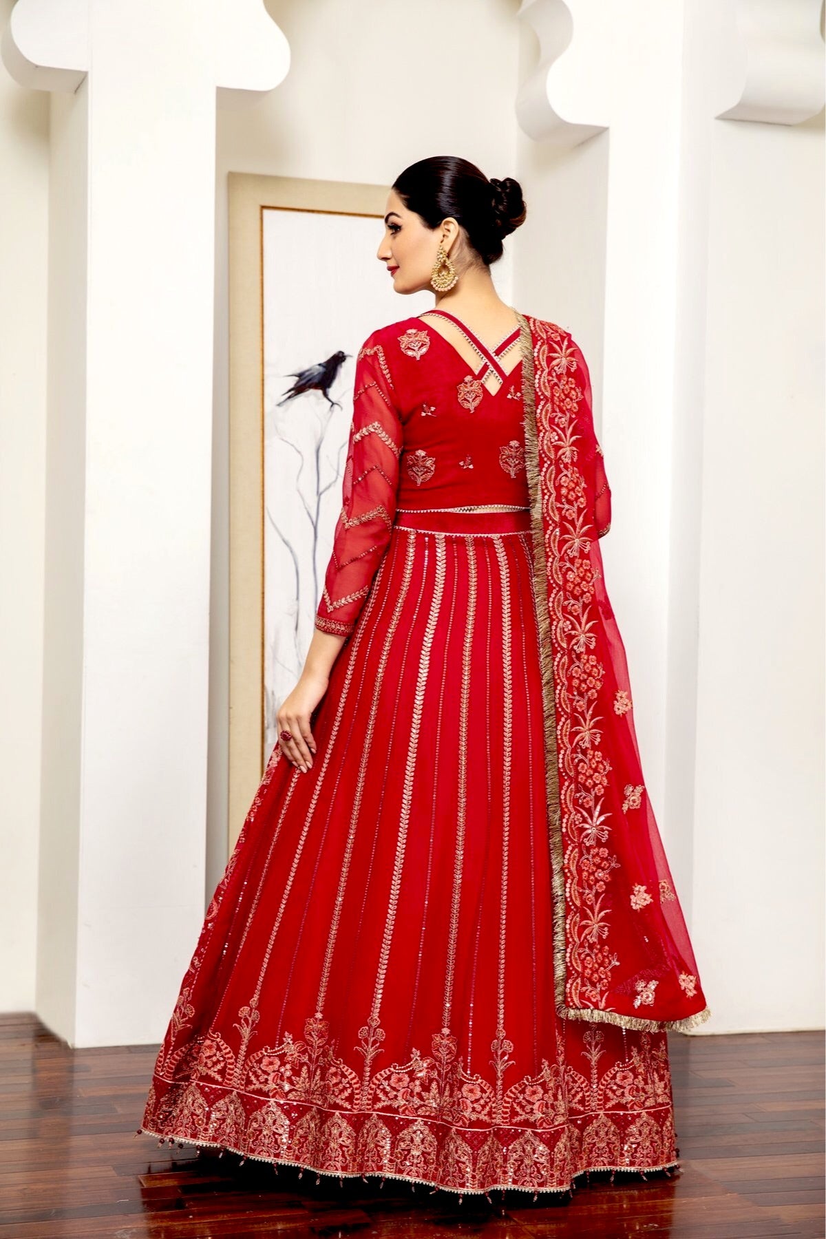 Fabric: Embroidered Chiffon Front Kalli Embroidered Chiffon Back Kalli Embroidered Chiffon Front Back Body Embroidered Chiffon Sleeves Embroidered Chiffon Front + Back Patch Embroidered Chiffon Dupatta Dyed Grip Trouser |