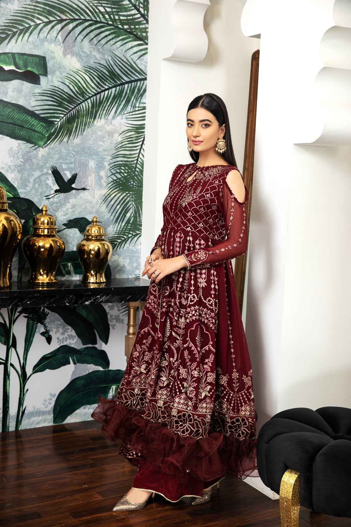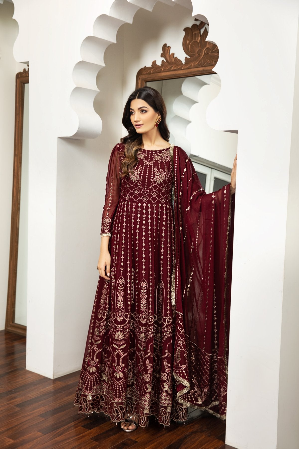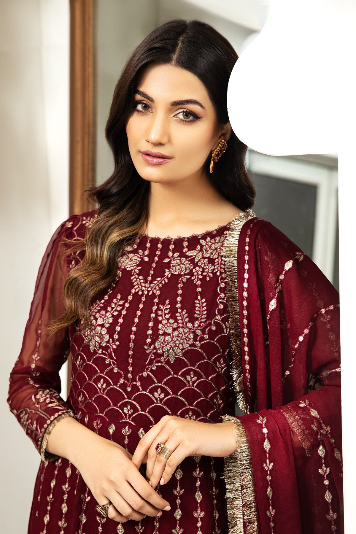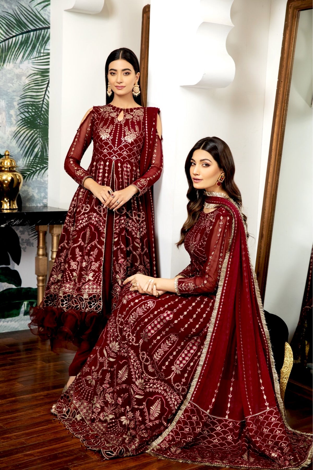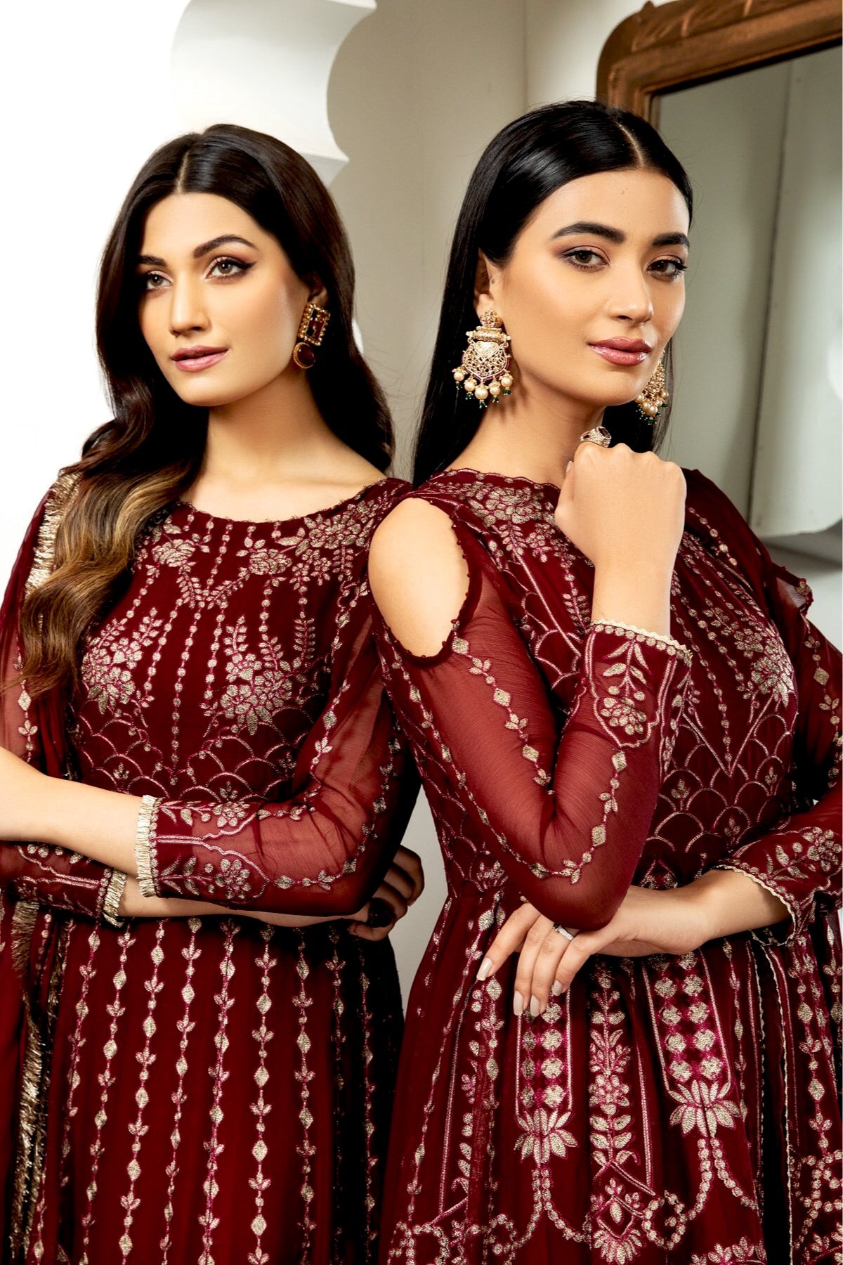 Fabric: Embroidered Chiffon Front Kalli Embroidered Chiffon Back Kalli Embroidered Chiffon Front Back Body Embroidered Chiffon Sleeves Embroidered Chiffon Front + Back Laser Cut Patch Embroidered Chiffon Pallu Dupatta Dyed Grip Trouser |