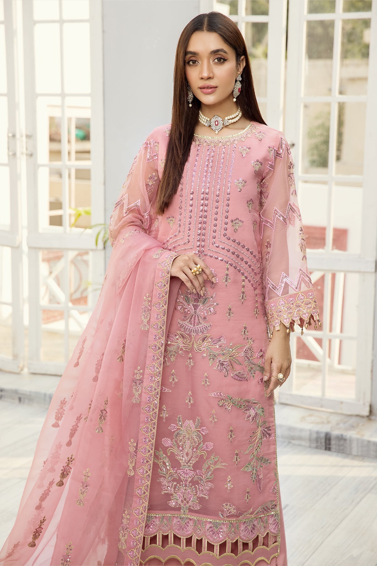 Fabric: Embroidered Organza Front Embroidered Organza Back Embroidered Organza Sleeves Embroidered Front + Back Patch Embroidered Sleeves Patch Embroidered Organza Dupatta Embroidered Dupatta Patch Dyed Grip Trouser Embroidered Trouser Patch |