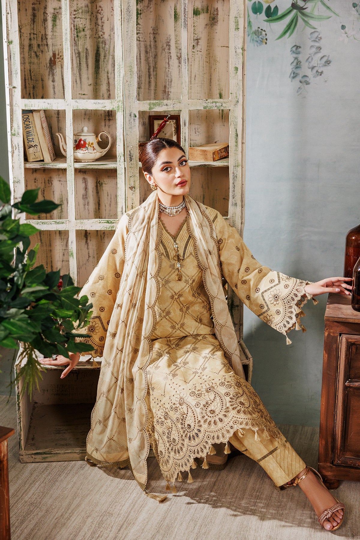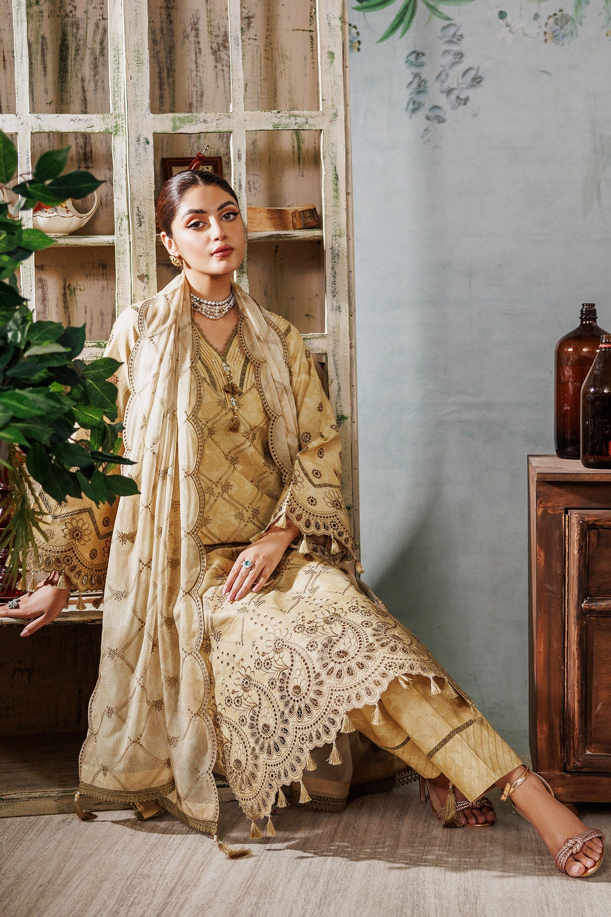 Fabric: Digital Printed ChikanKari Lawn Front Digital Printed Lawn Back and Trouser Digital Printed ChikanKari Lwan Sleeves Printed ChikanKari Chiffon Dupatta |