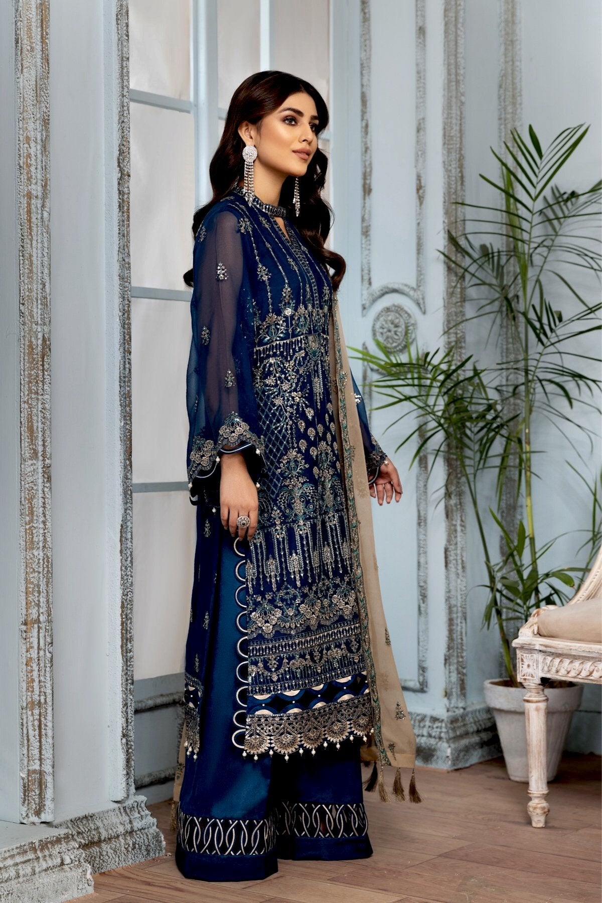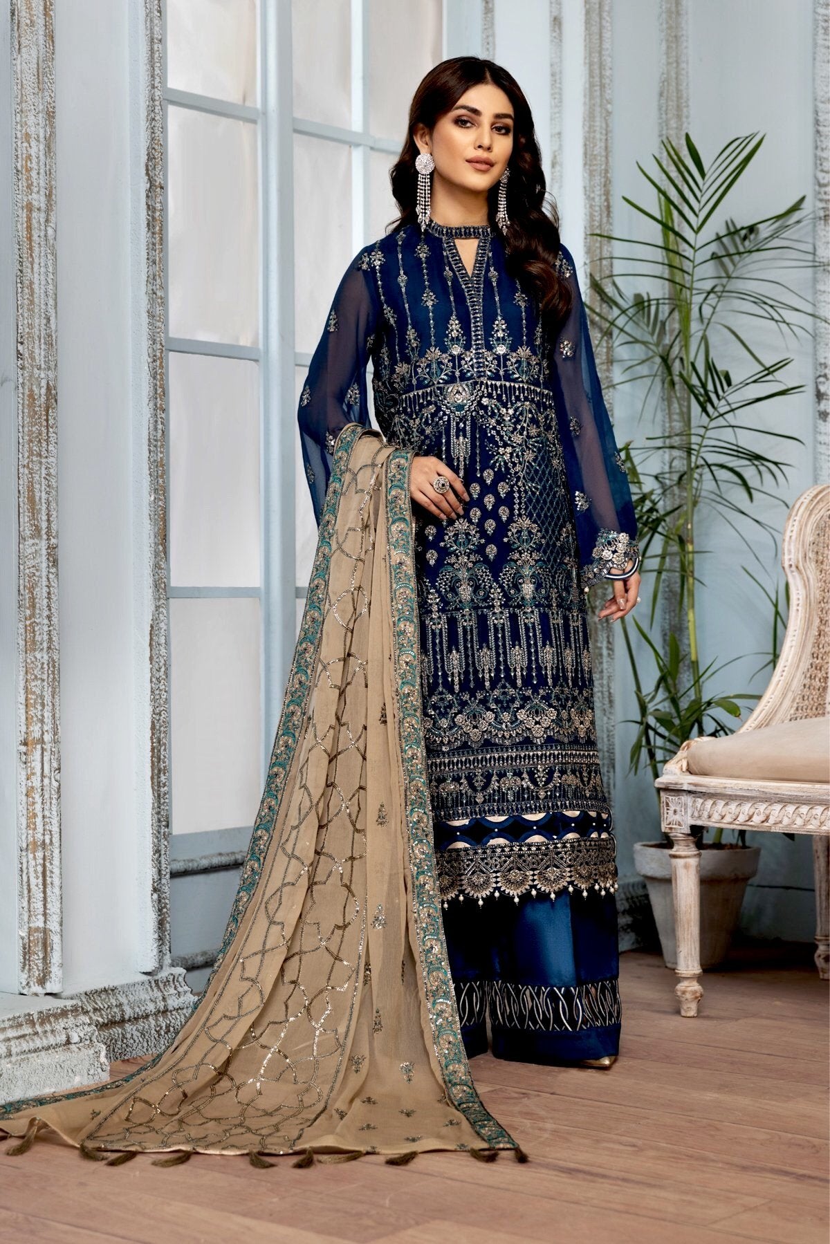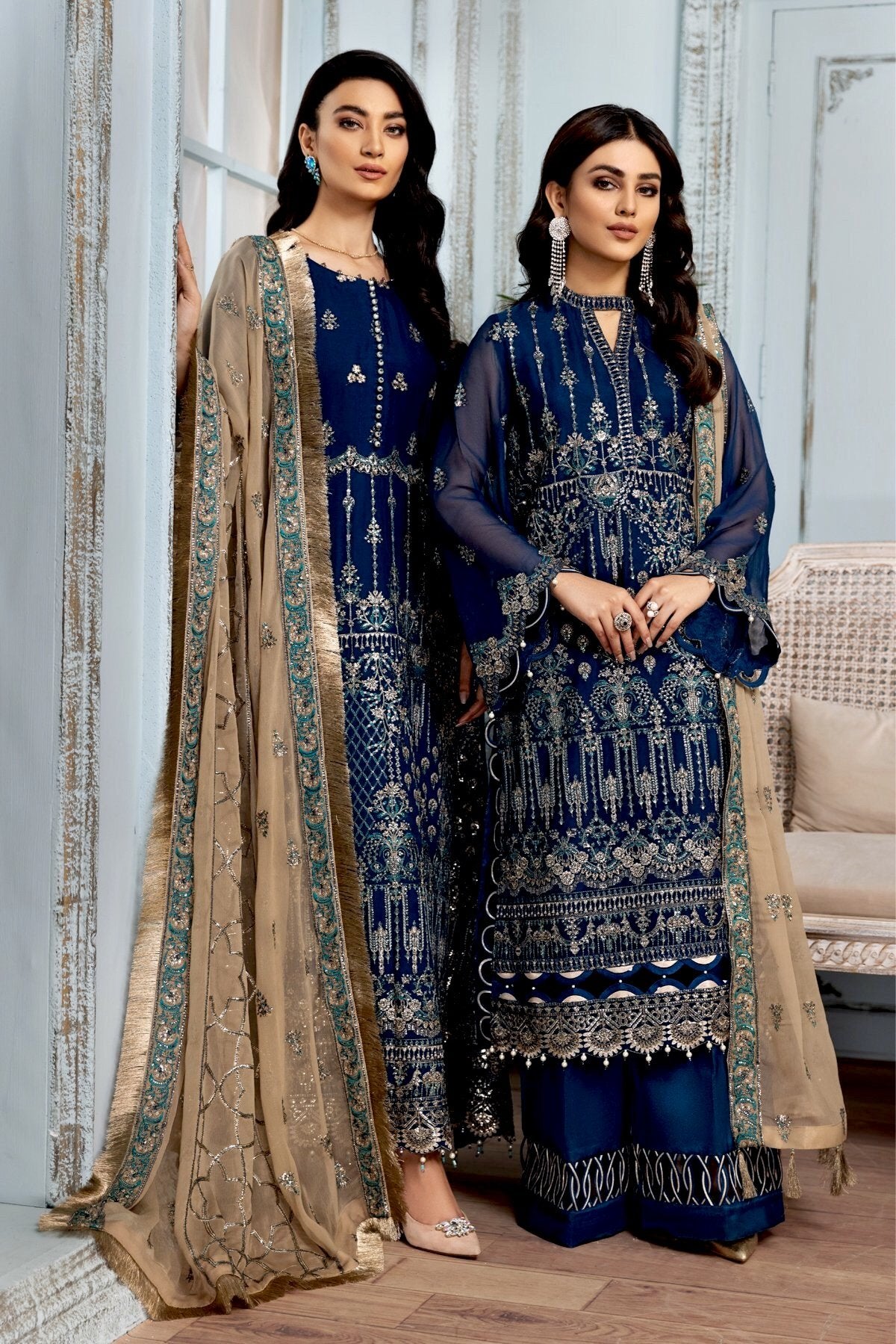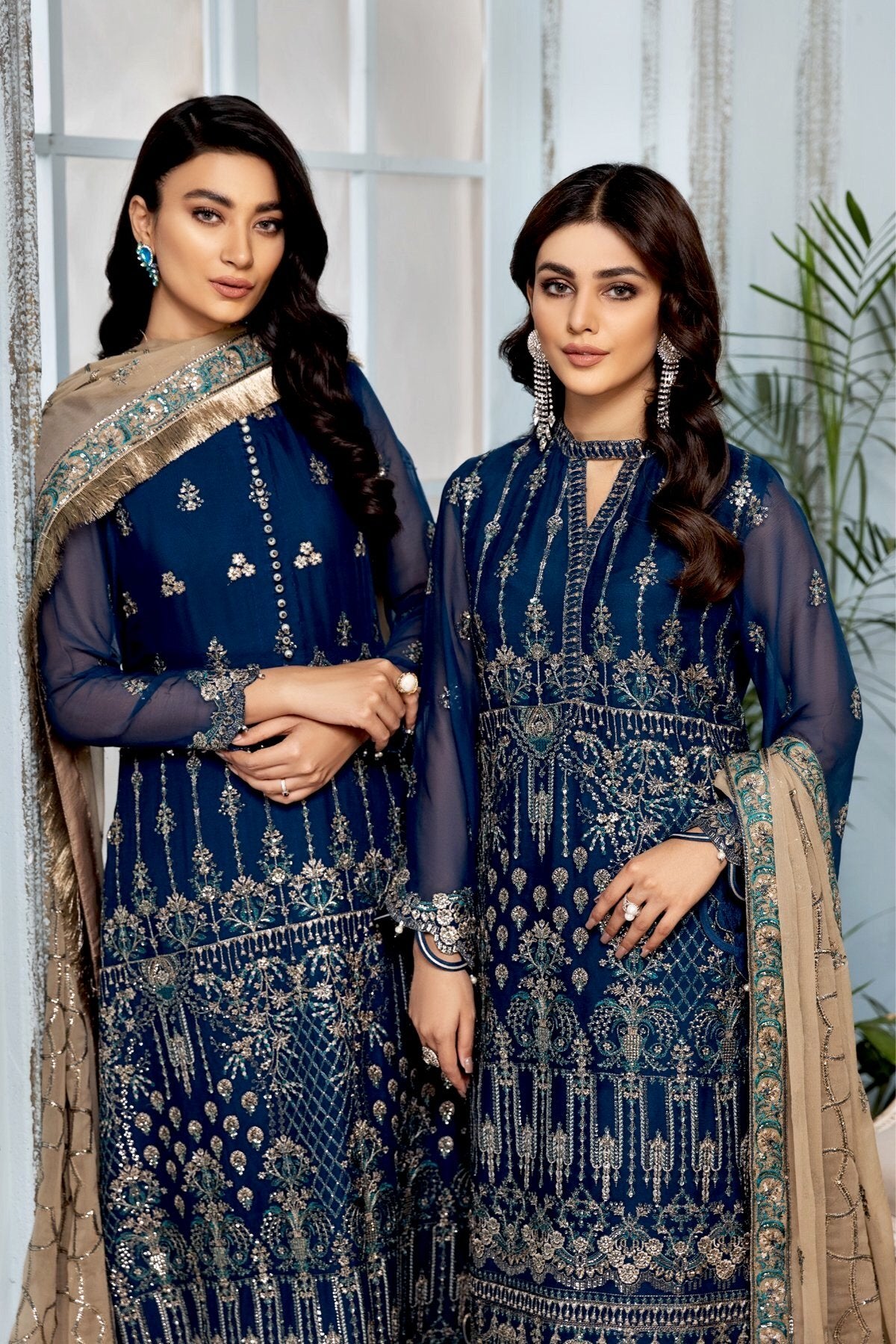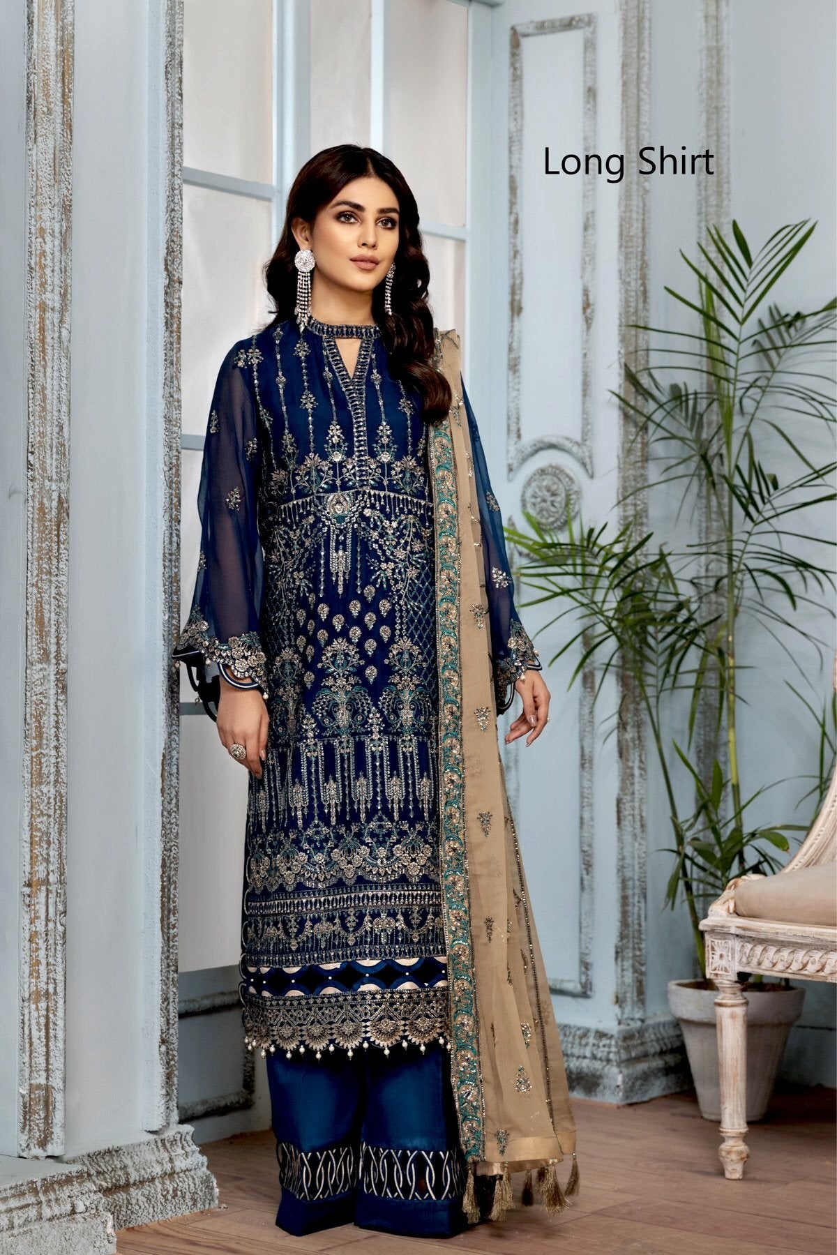 Fabric: Embroidered Chiffon Front Embroidered Chiffon Back Embroidered Chiffon Front + Back Body Embroidered Chiffon Front + Back Patch 2 Embroidered Chiffon Sleeves Embroidered Chiffon Dupatta Dyed Russian Grip Trouser |