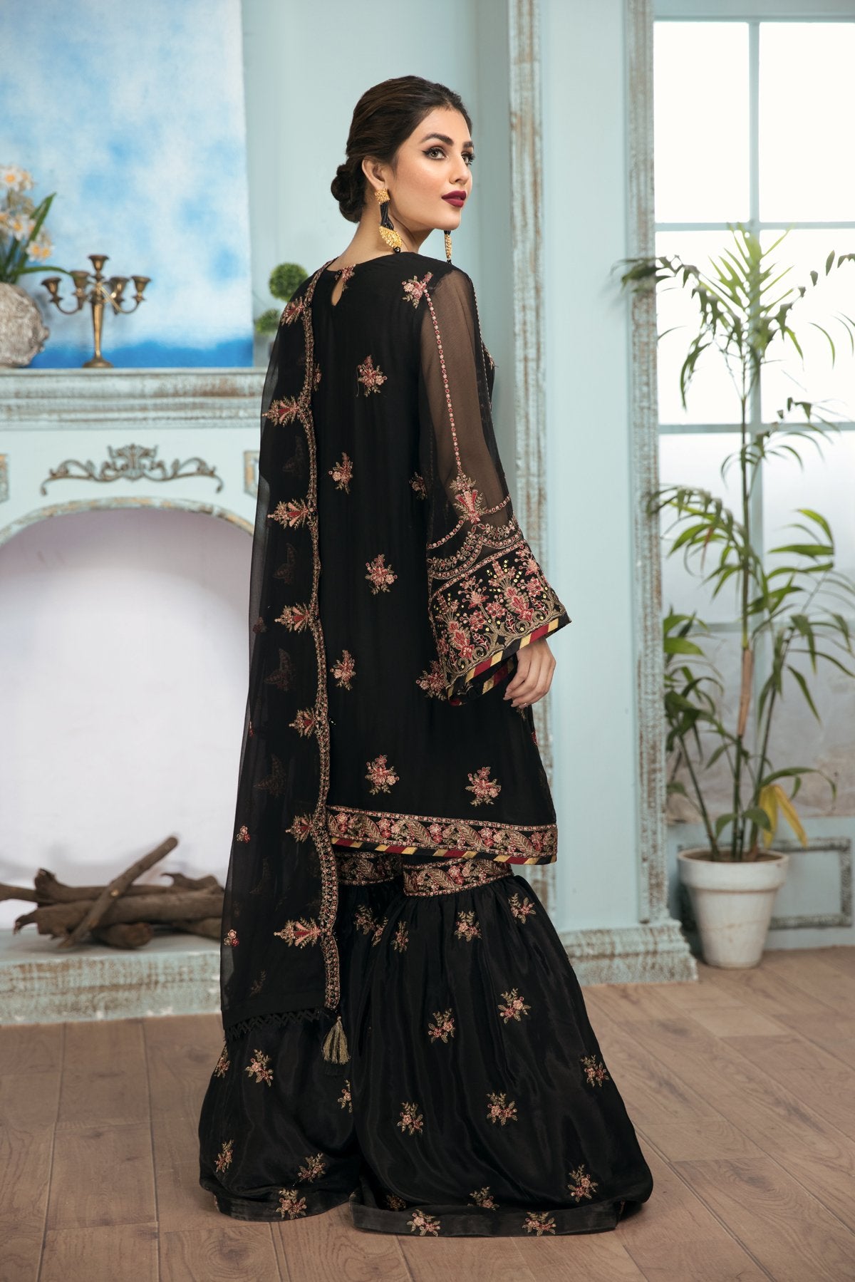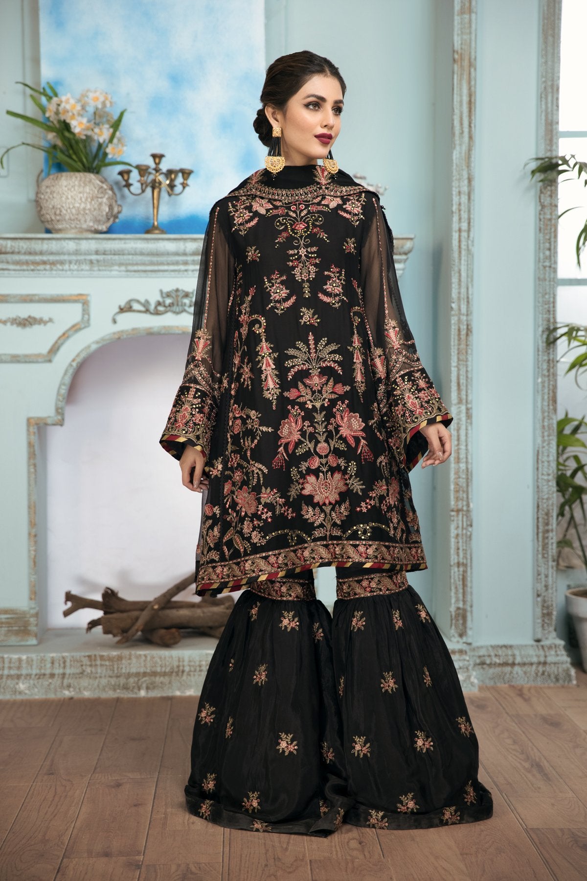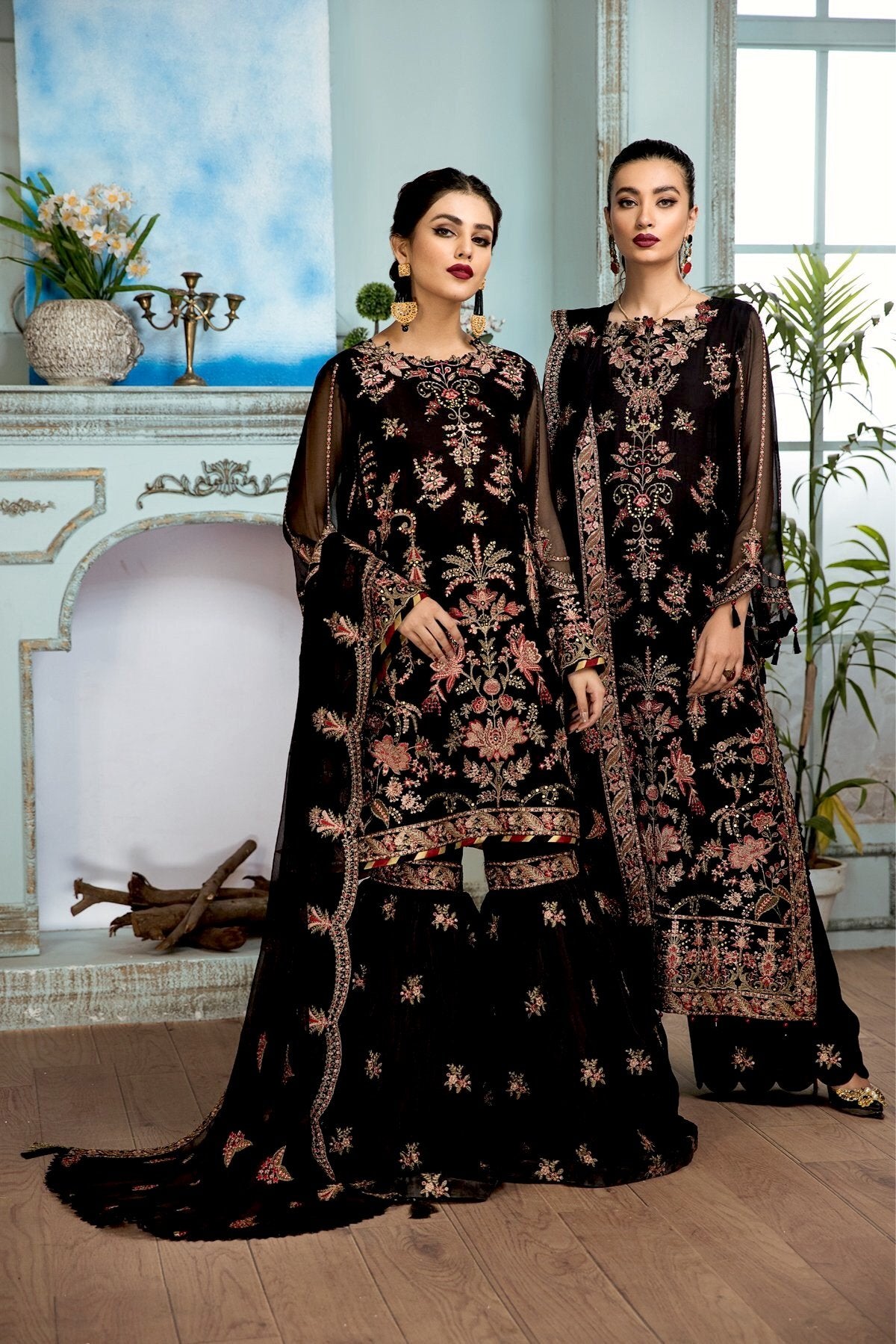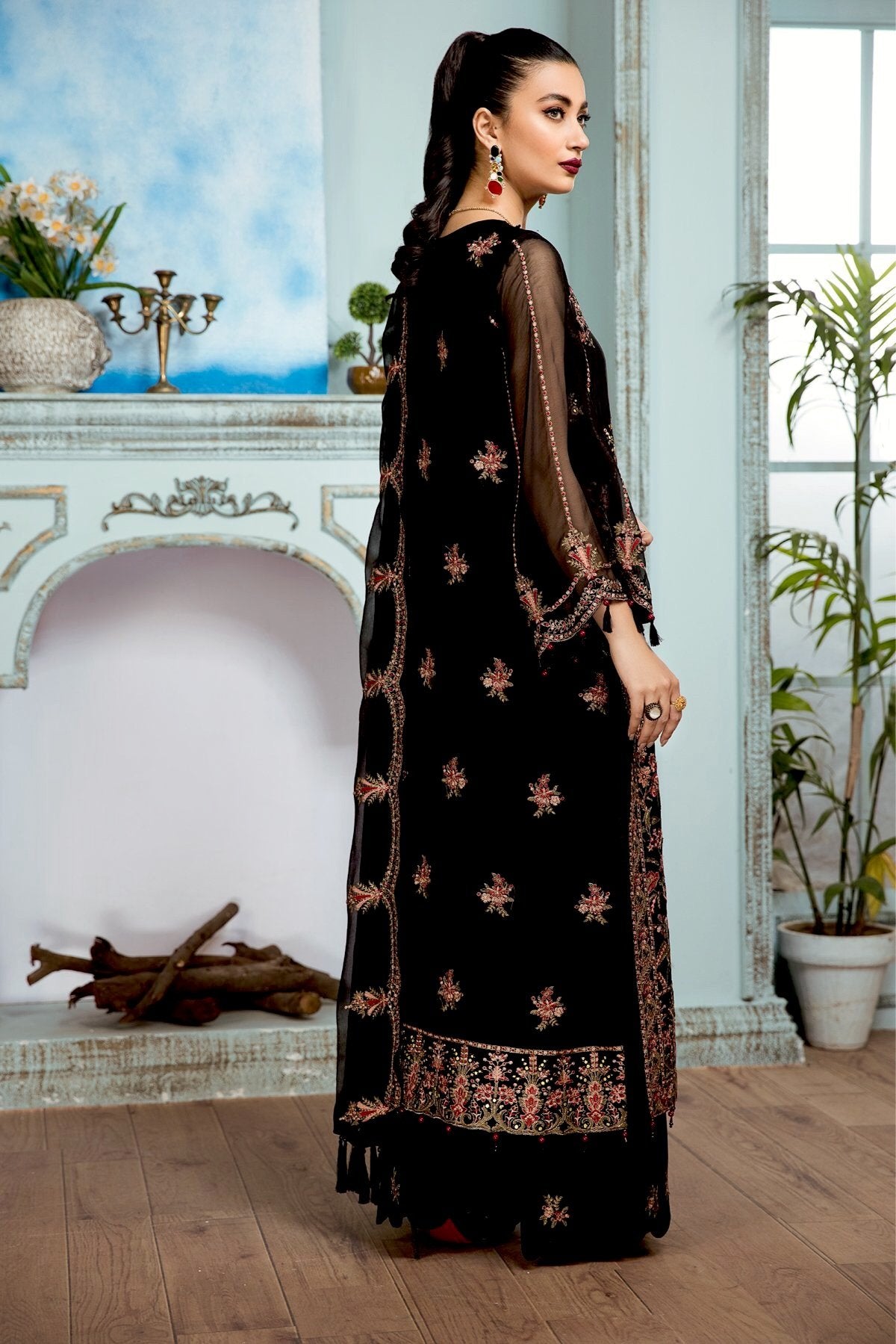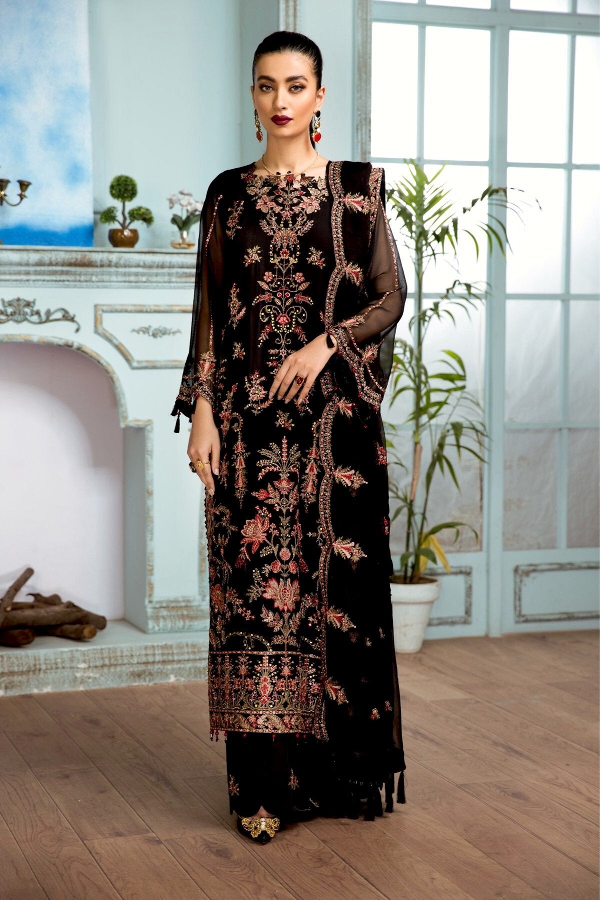 Fabric: Embroidered Chiffon Front Embroidered Chiffon Back Embroidered Chiffon Sleeves Embroidered Chiffon Right + Left Panel Embroidered Chiffon Front + Back Patch 2 Embroidered Chiffon Dupatta Embroidered Russian Grip Trouser |
