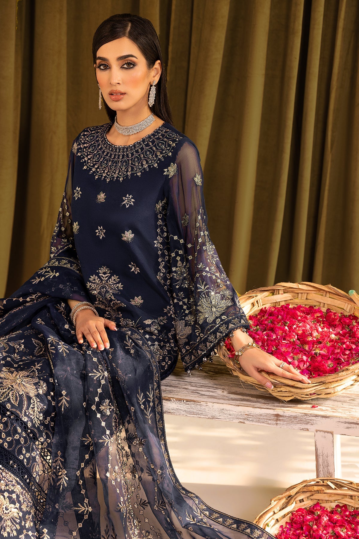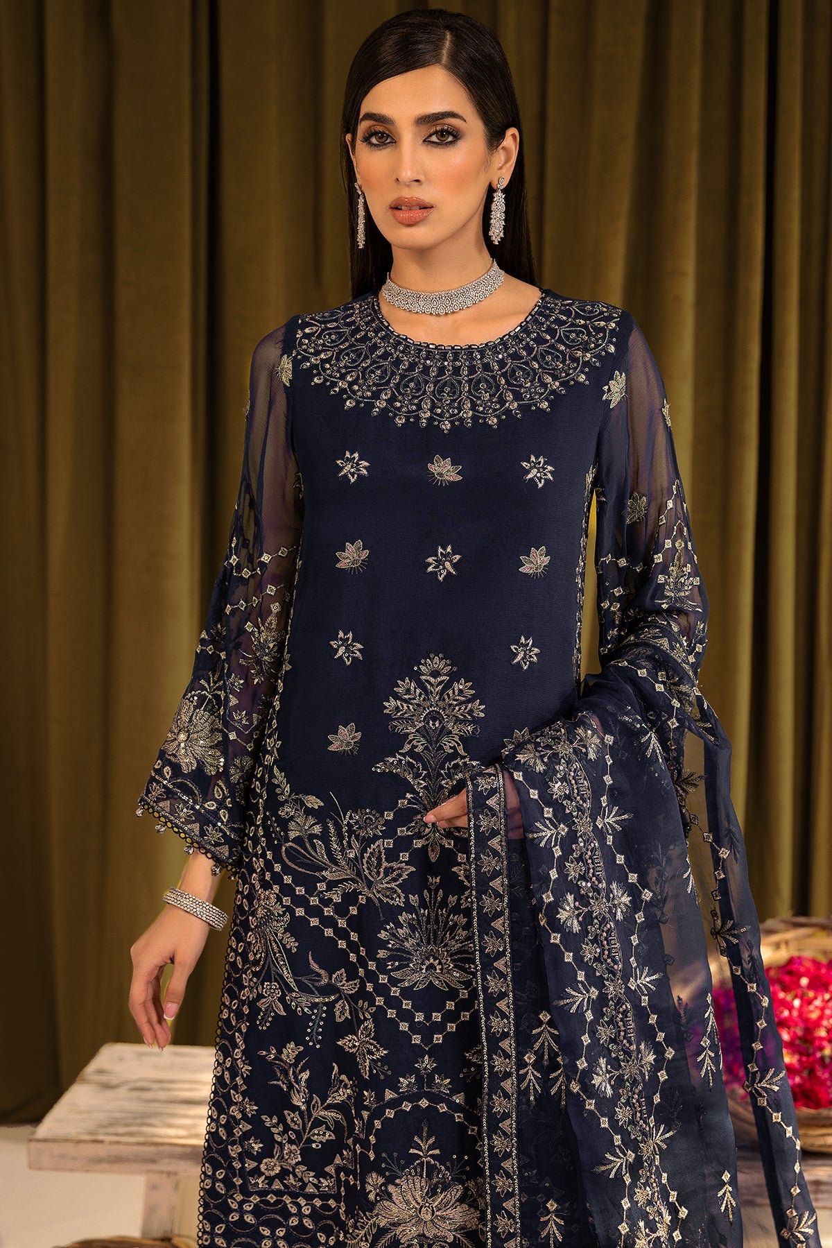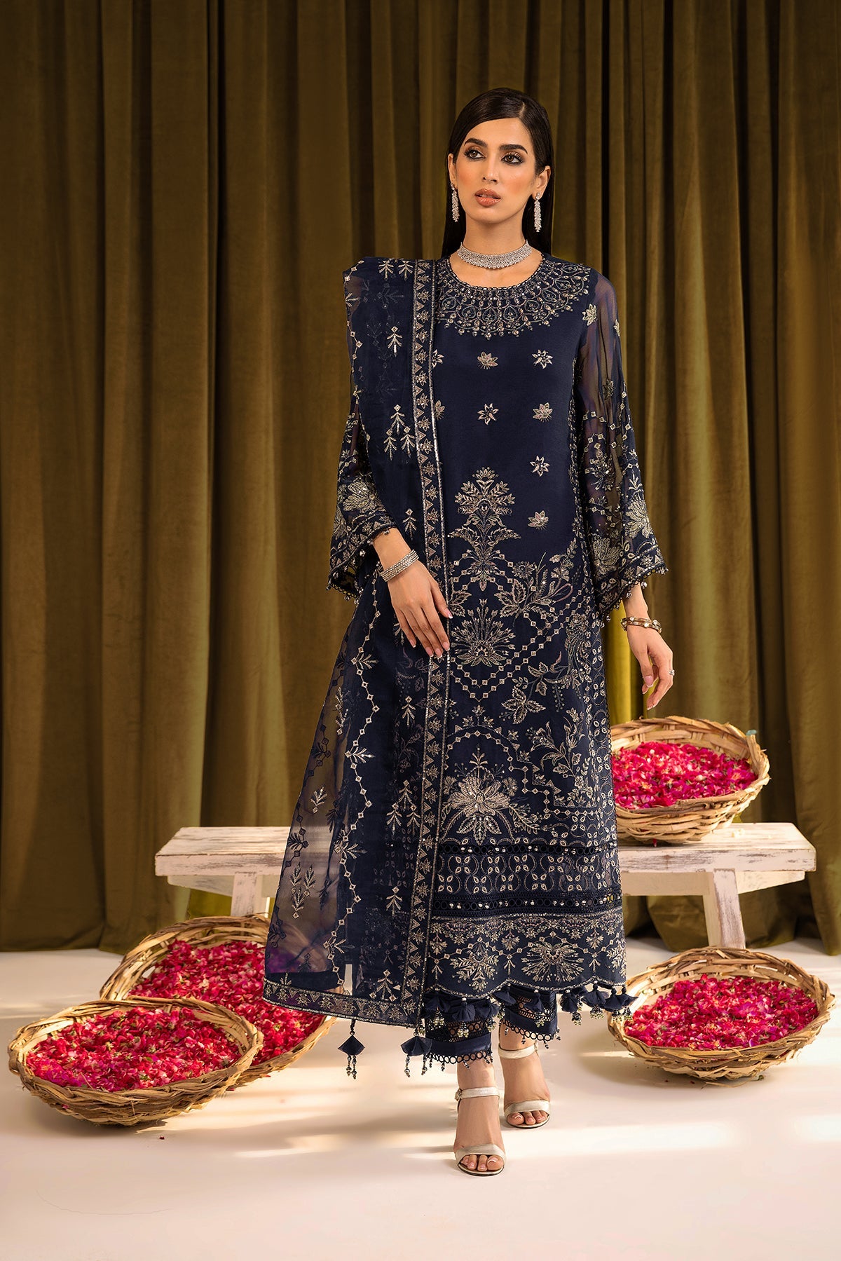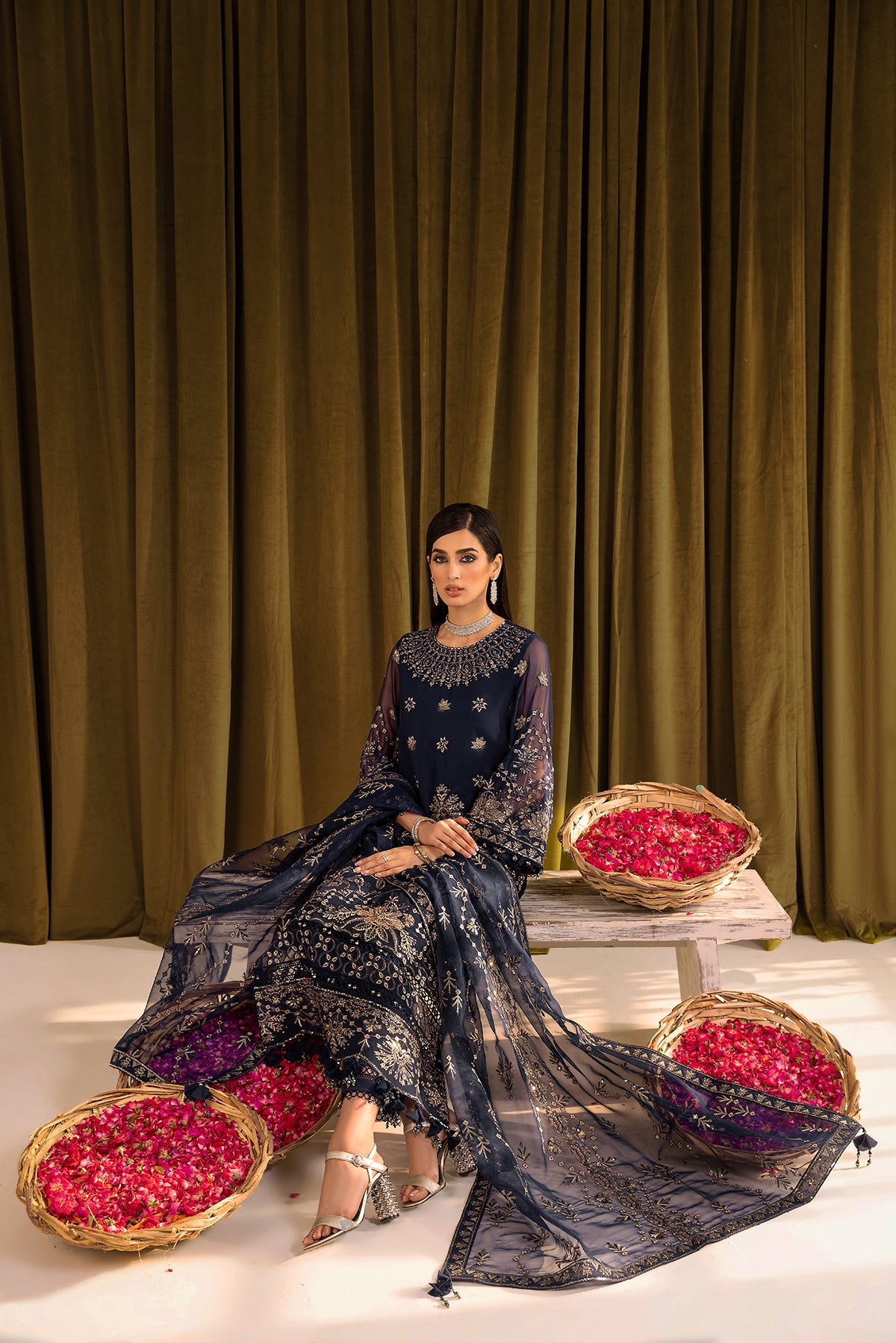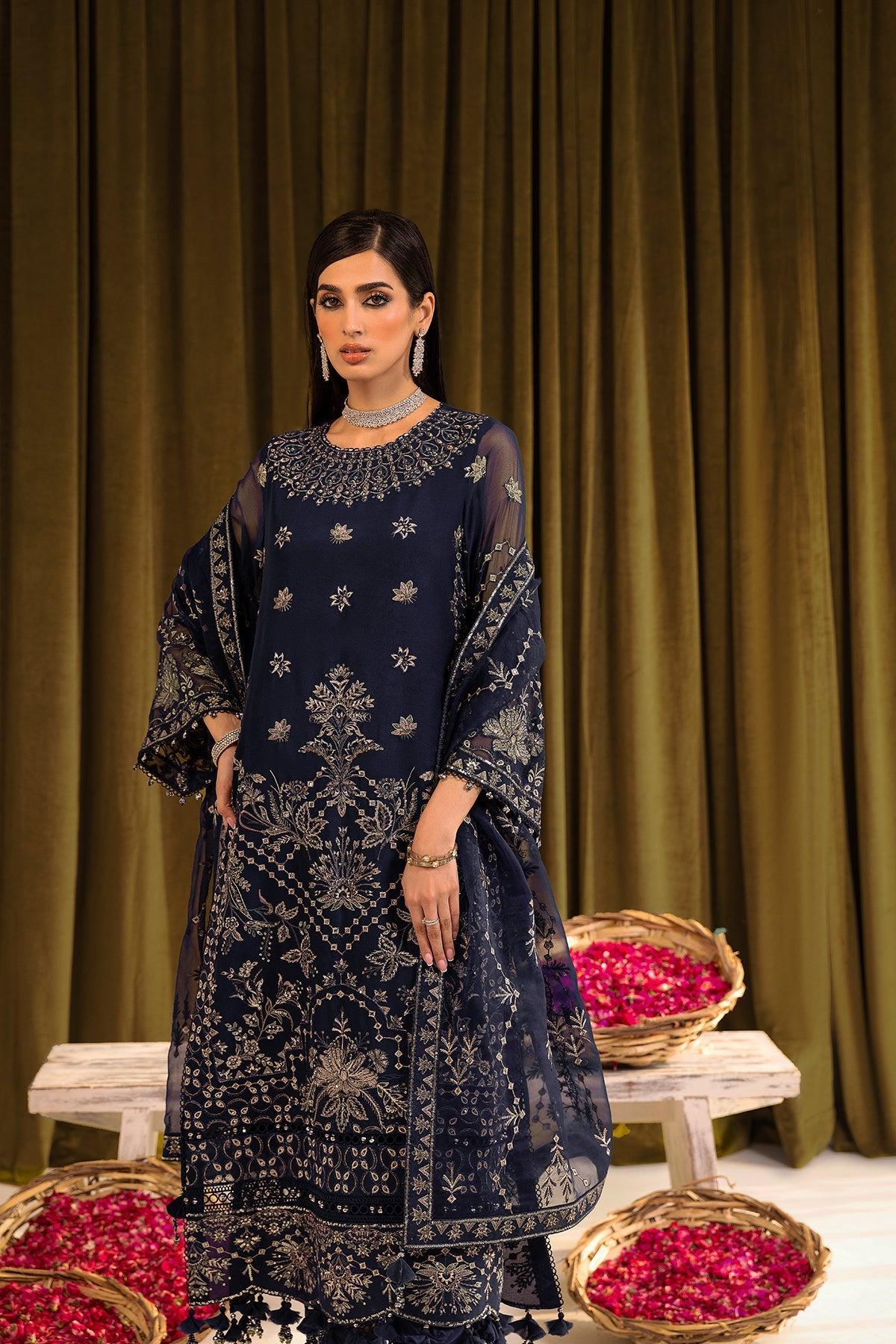 Fabric: Embroidered Chiffon Front Embroidered Chiffon Back Embroidered Chiffon Kali Embroidered Chiffon Sleeves Embroidered Front + Back Patch Embroidered Organza Dupatta Dyed Grip Trouser |