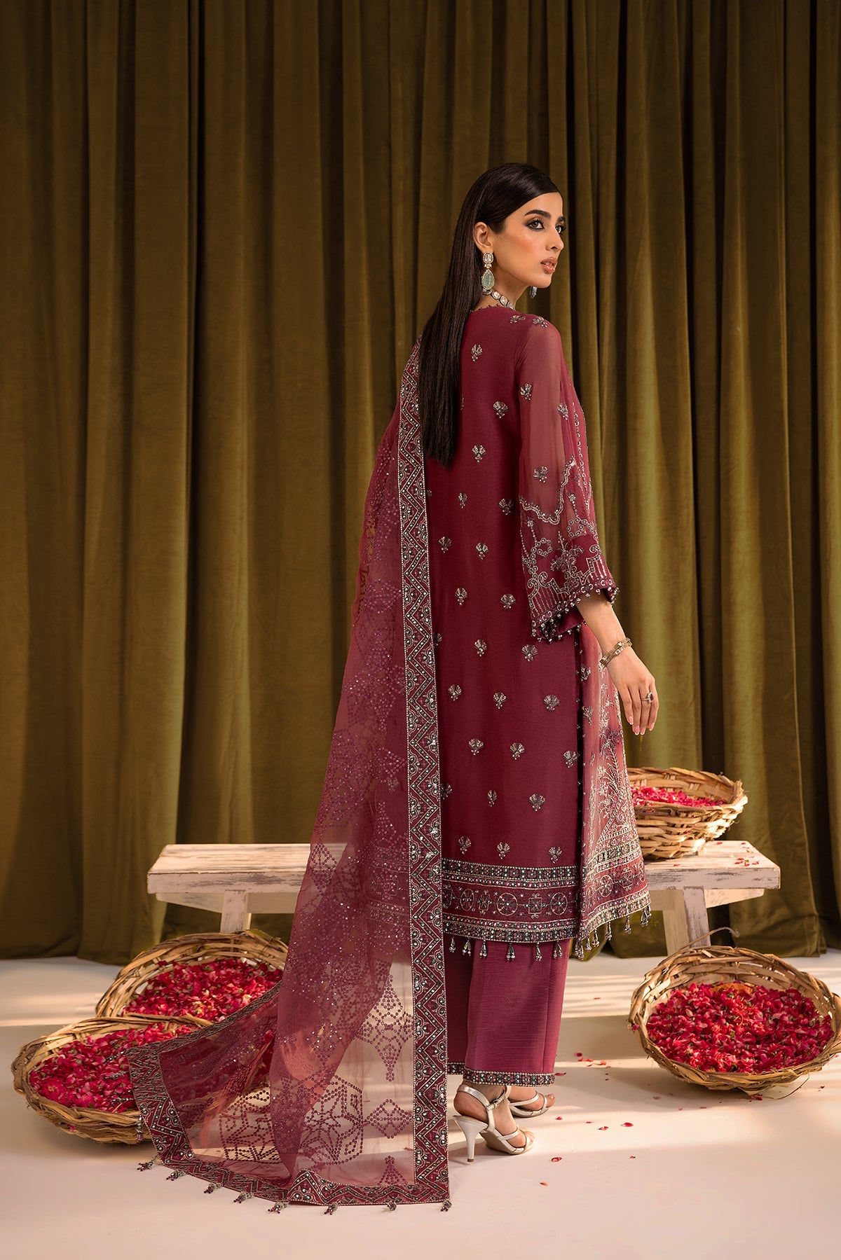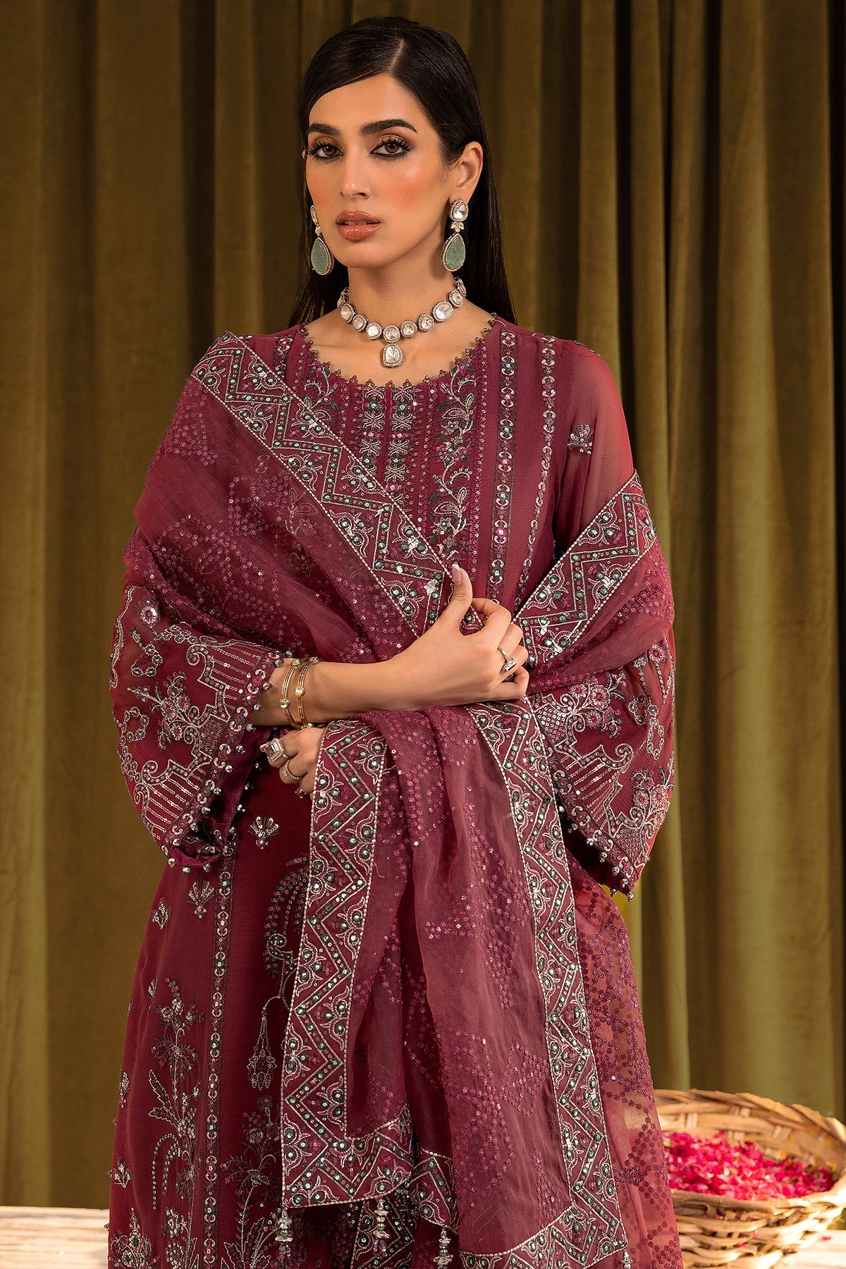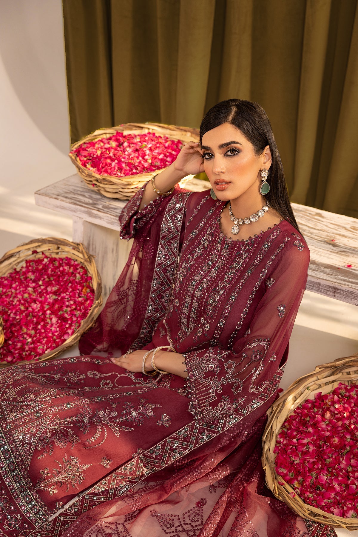 Fabric: Embroidered Chiffon Front Panel Embroidered Chiffon Right + Left Panel Embroidered Chiffon Back Embroidered Chiffon Sleeves Embroidered Front + Back Patch (2) Embroidered Organza Shawl Dyed Grip Trouser Embroidered Trouser Patch |
