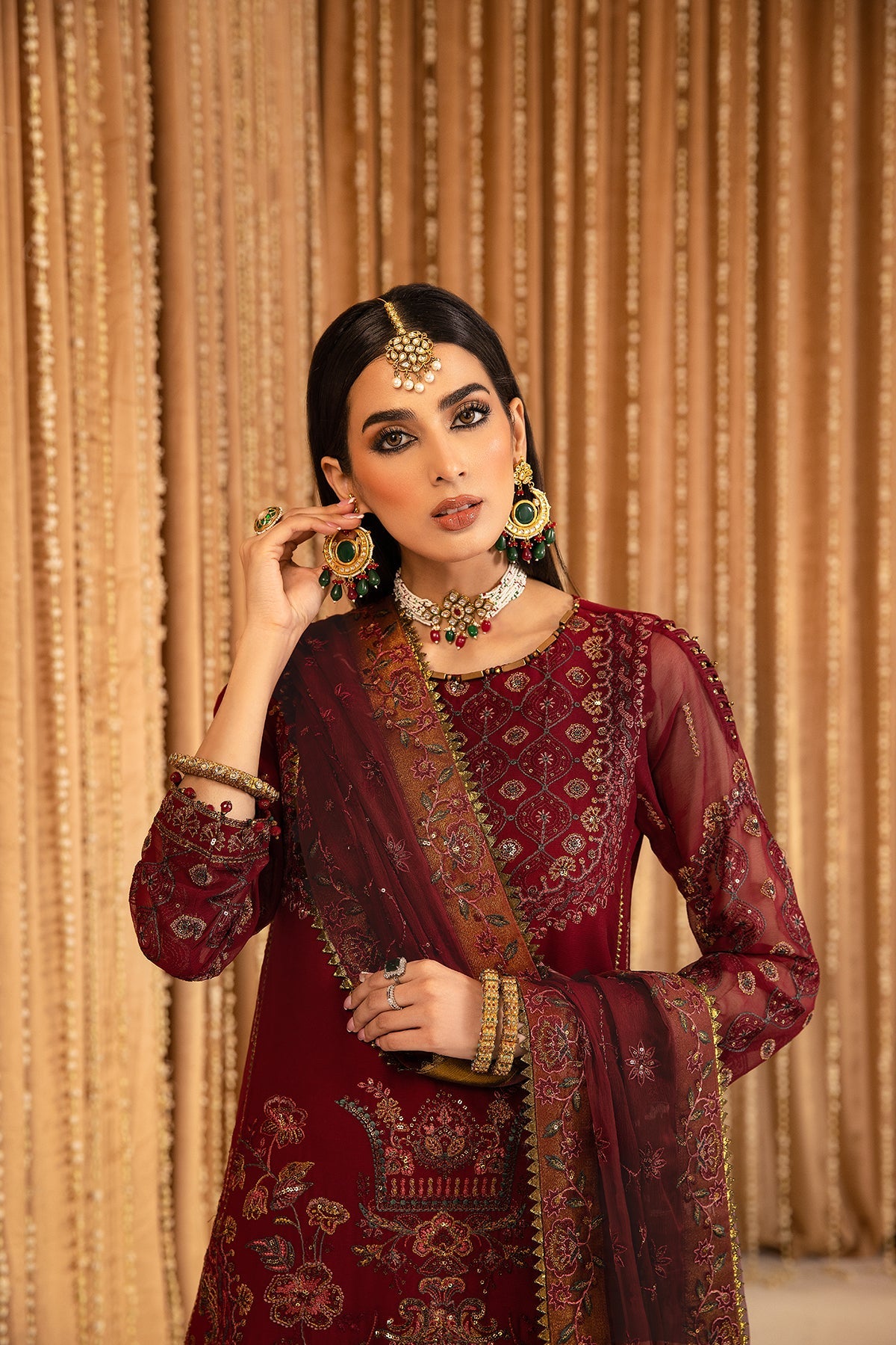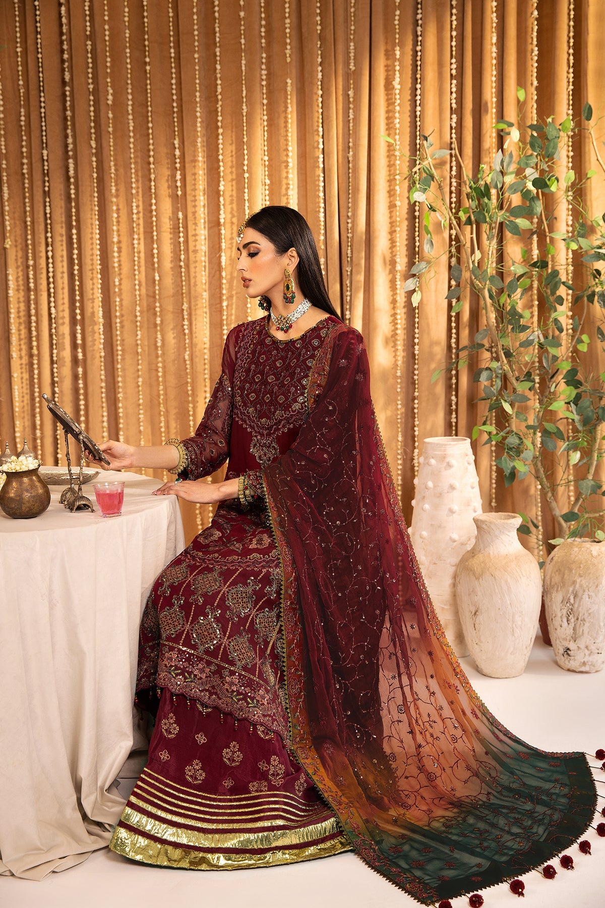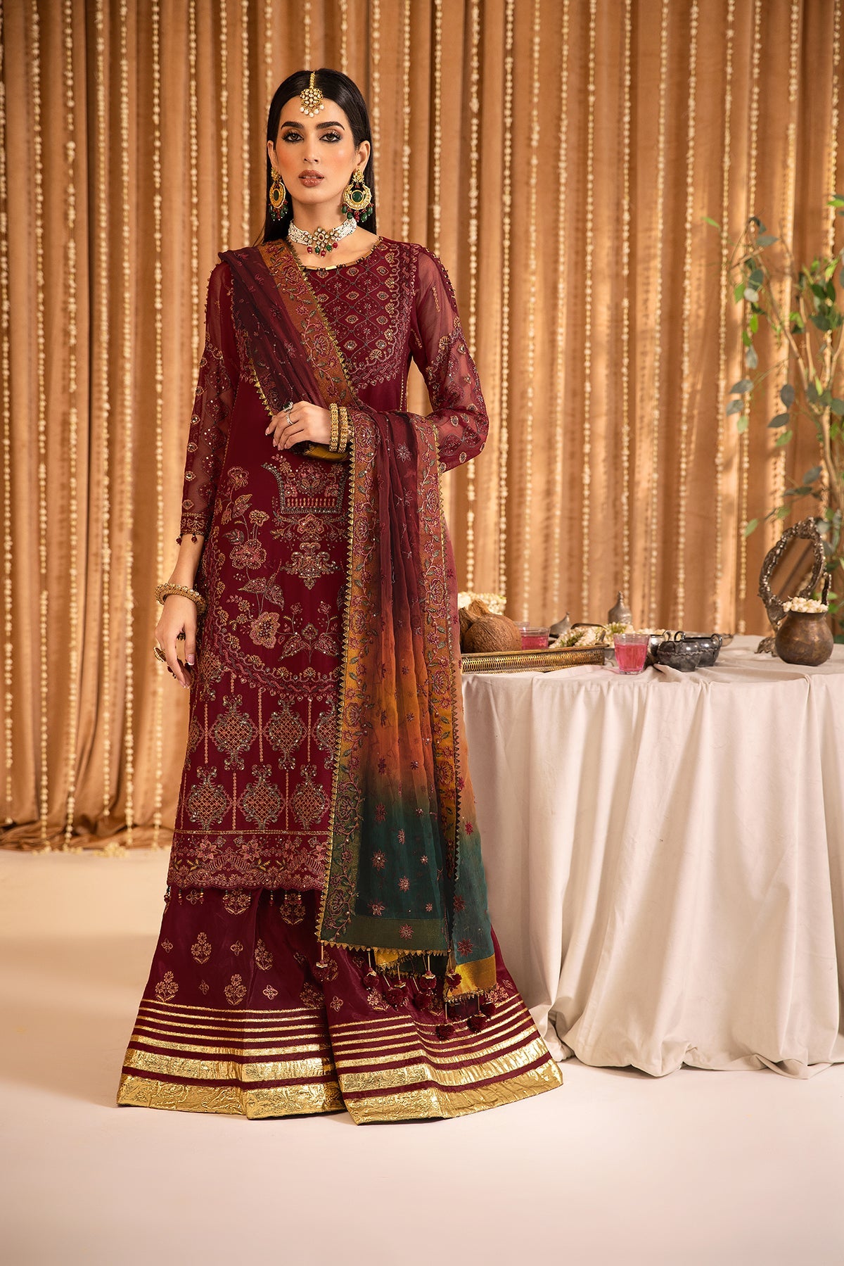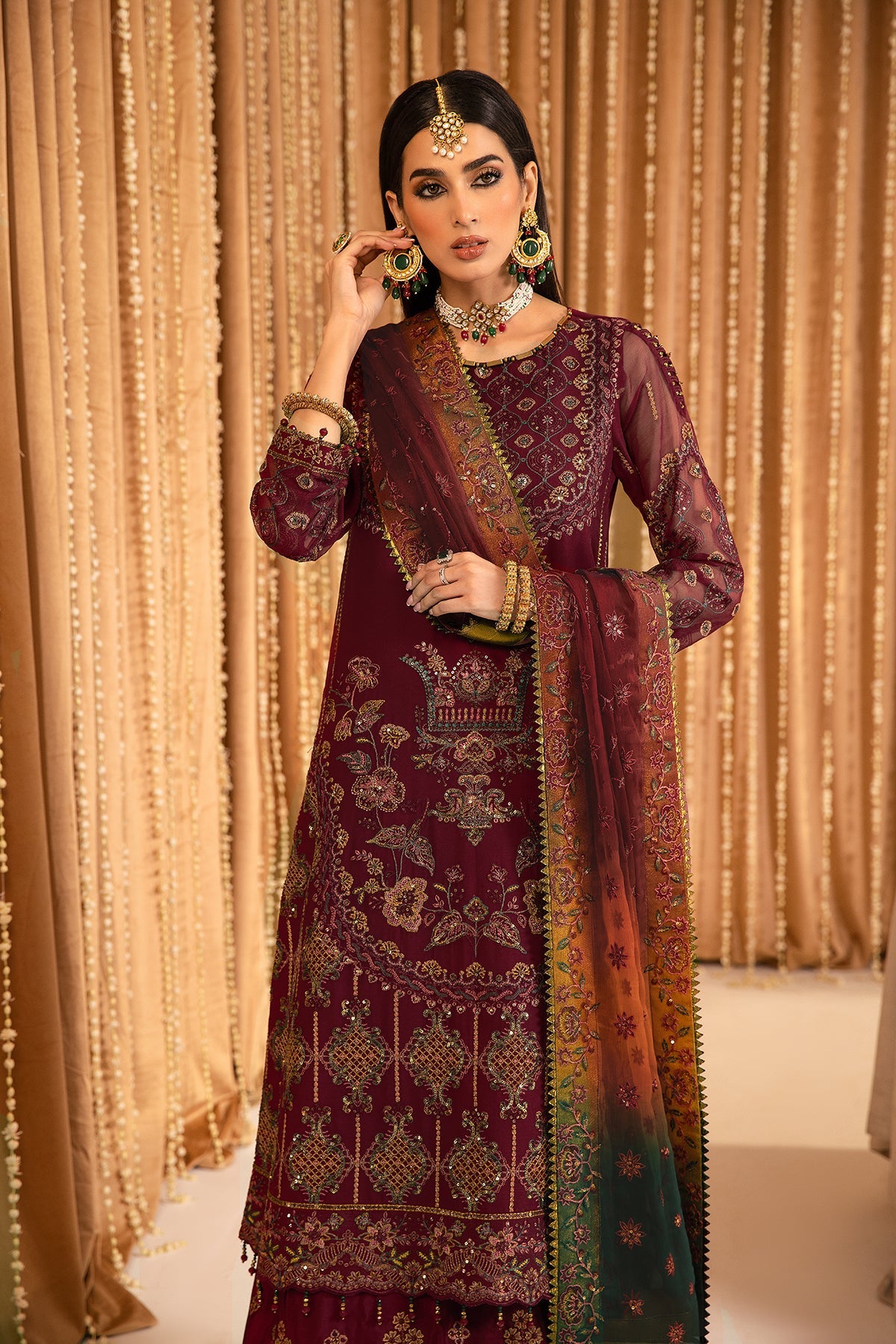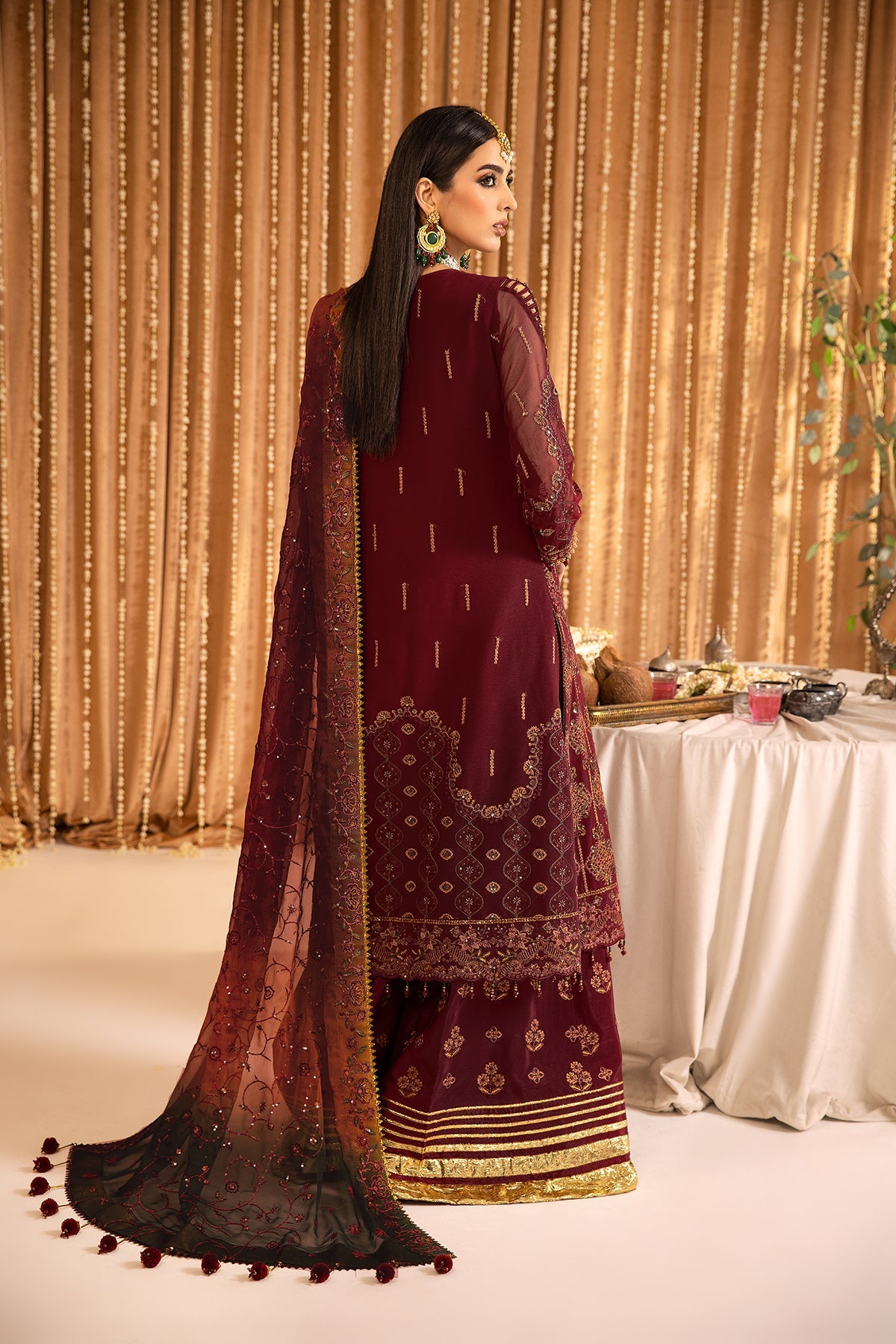 Fabric: THIS SUIT HAS AN INDEFINITE DELIVERY TIME. Embroidered Chiffon Front Embroidered Chiffon Back Embroidered Chiffon Front Kali Embroidered Chiffon Sleeves Embroidered Front + Back Patch Embroidered Organza Dupatta Embroidered Grip Trouser |