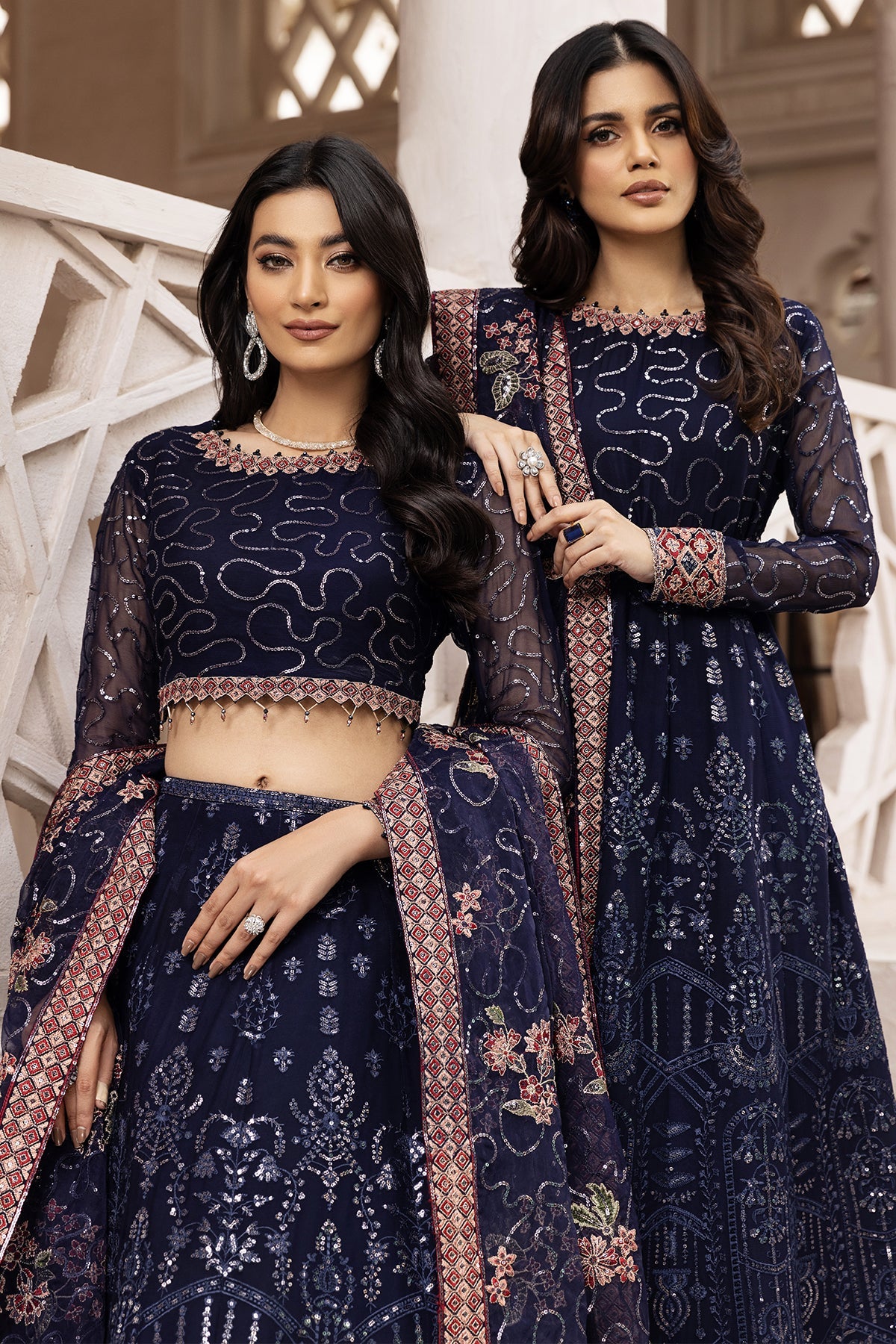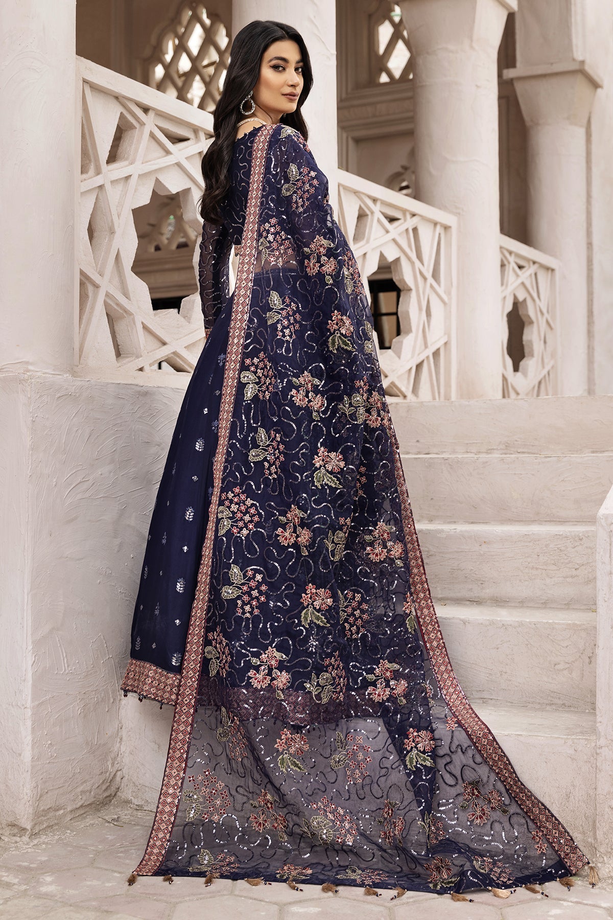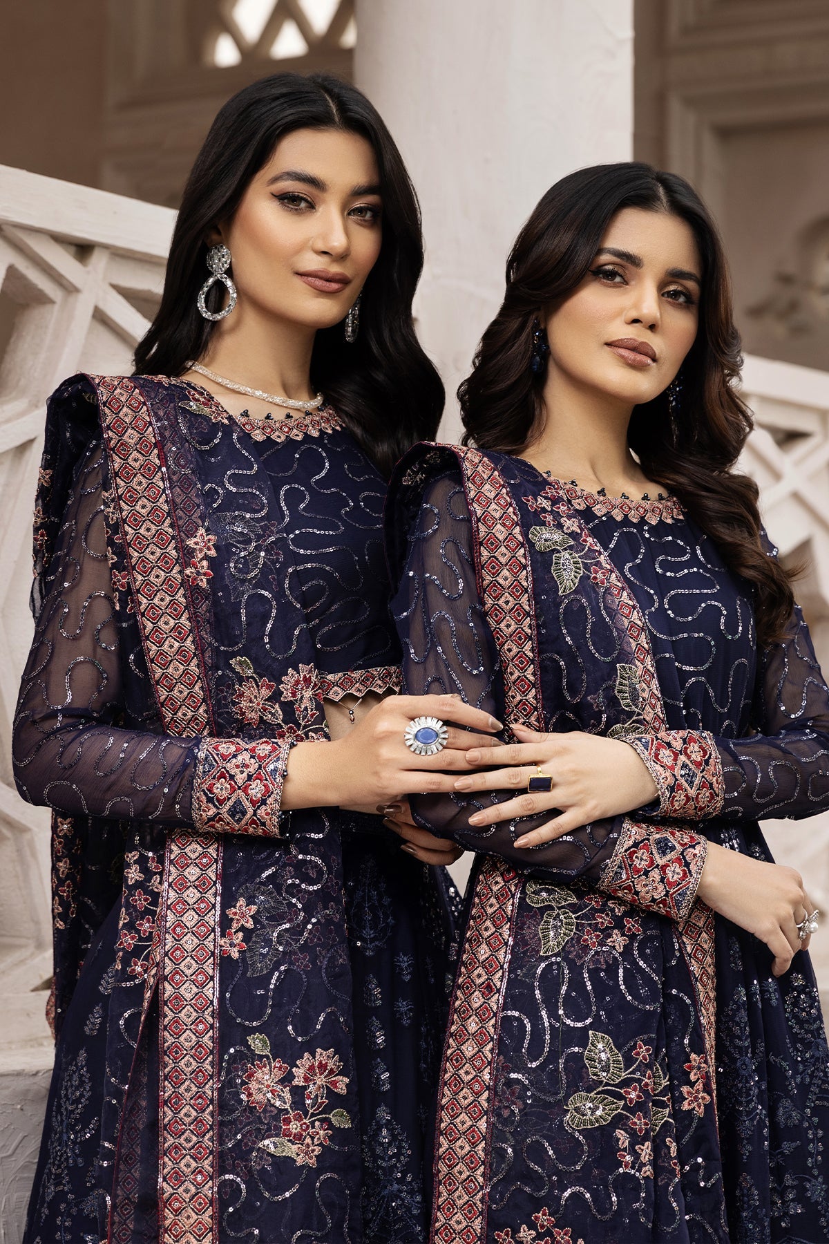 Fabric: Embroidered Chiffon Front Kali Embroidered Chiffon Back Embroidered Chiffon Sleeves Embroidered Chiffon Front + Back Body (1) Embroidered Chiffon Front + Back Patch (1) Embroidered Chiffon Body Patch (1) Embroidered Chiffon Sleeves Patch Embroidered Chiffon Belt Patch Embroidered Organza Shawl Dyed Russian Silk Trouser |
