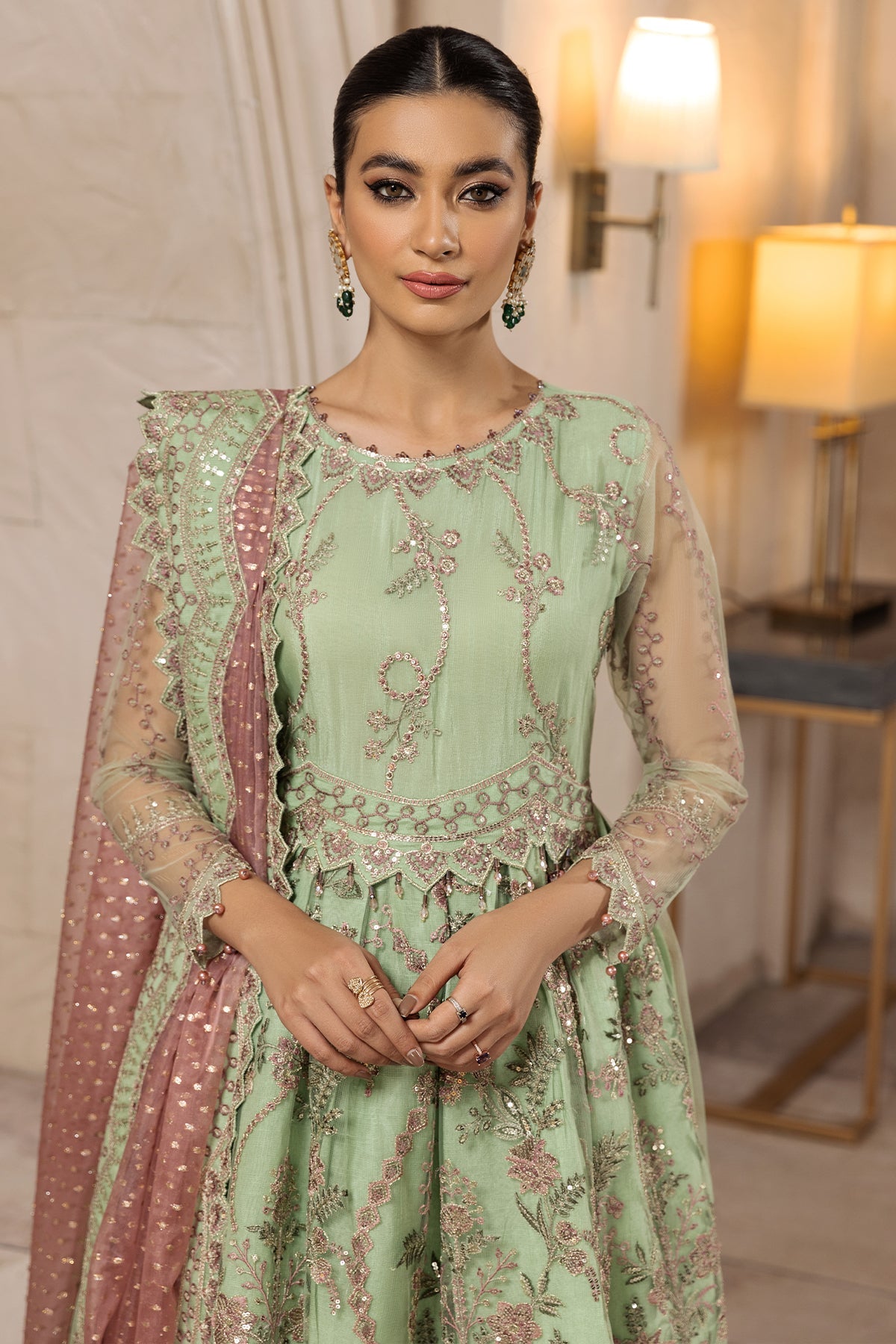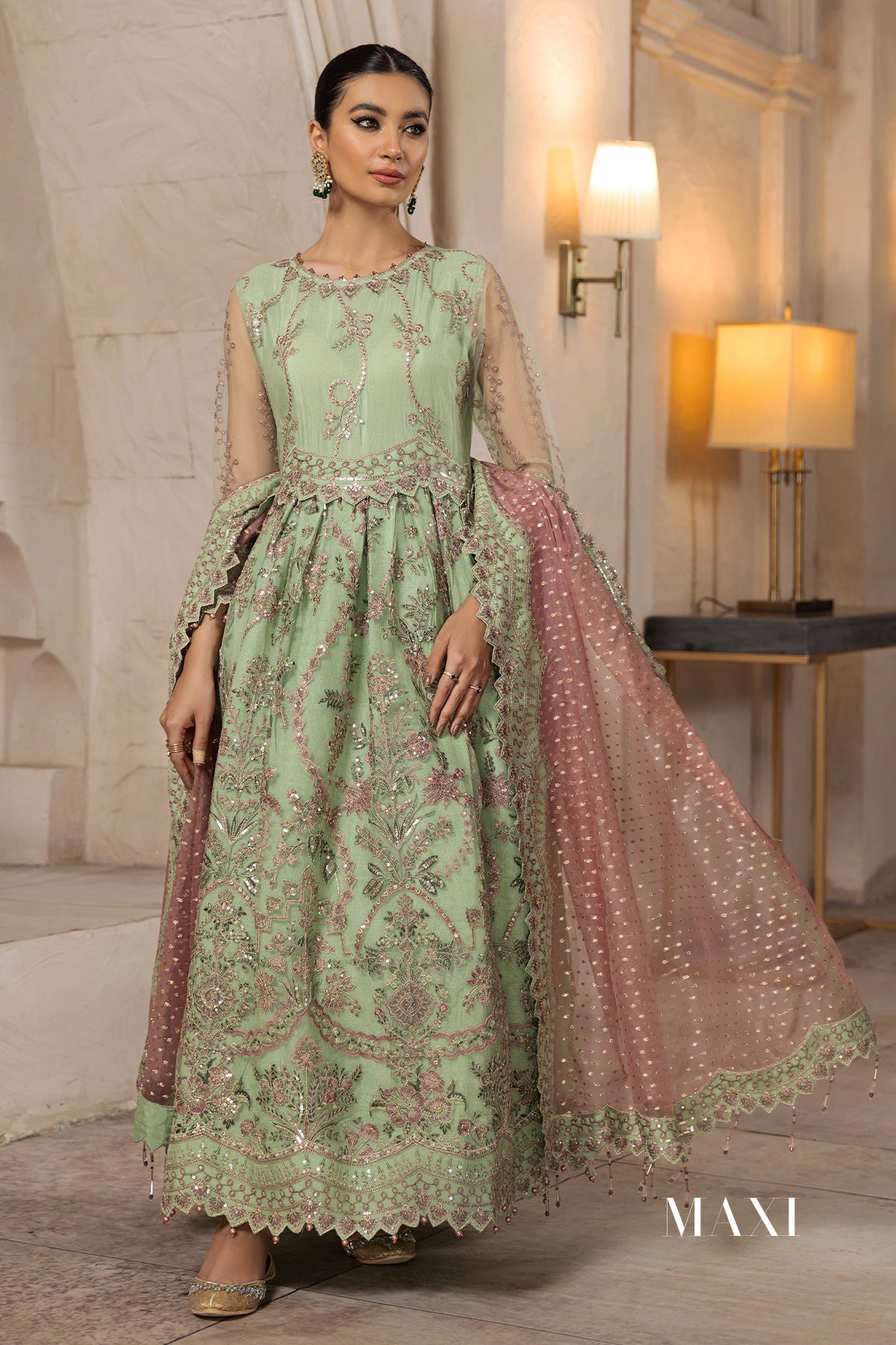Fabric: Embroidered Net Front Embroidered Net Back Embroidered Net Sleeves Embroidered Net Front + Back Body Embroidered Net Front + Back Patch (1) Organza Bindi Dupatta Embroidered Net Dupatta Patch (2) Dyed Raw Silk Trouser |