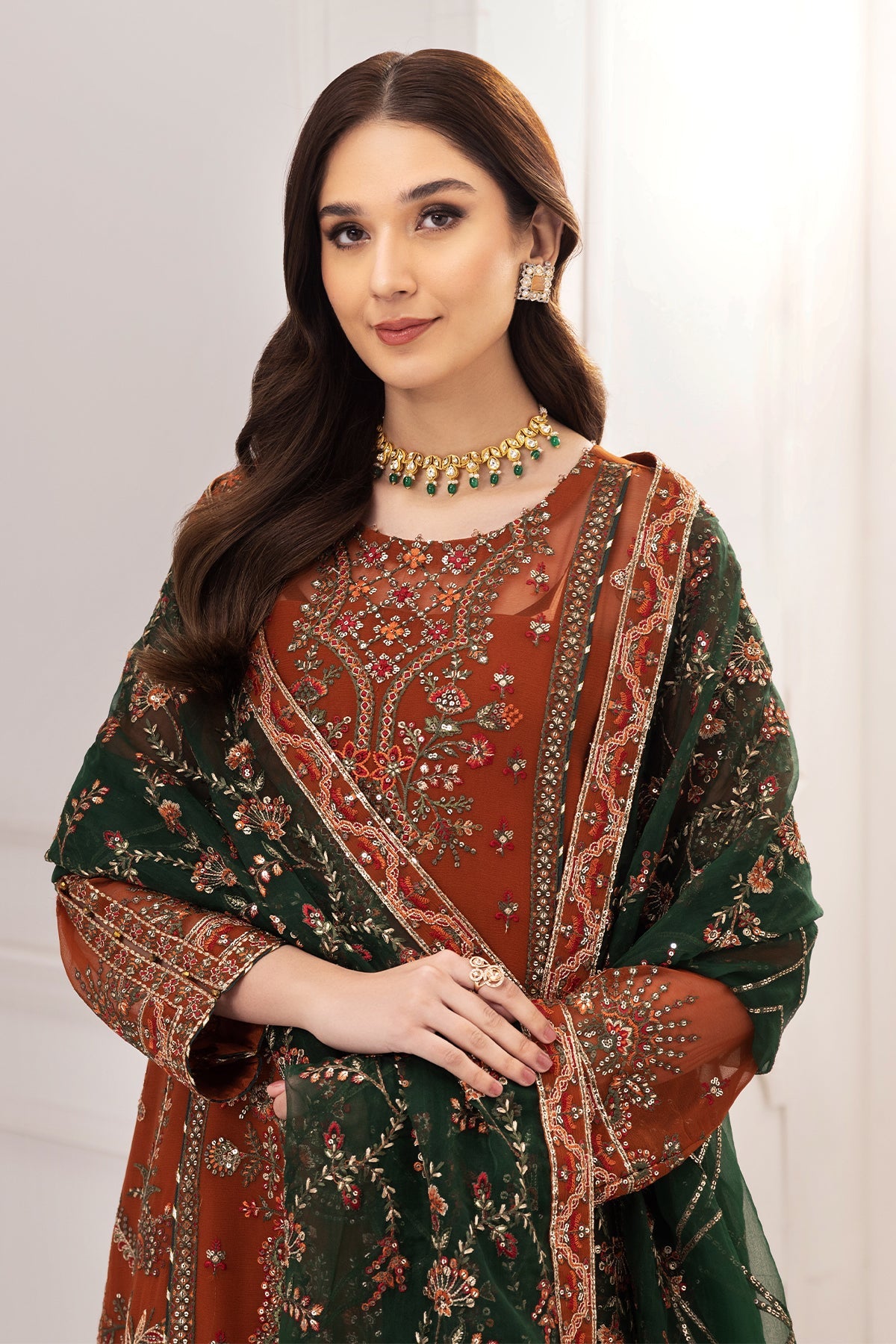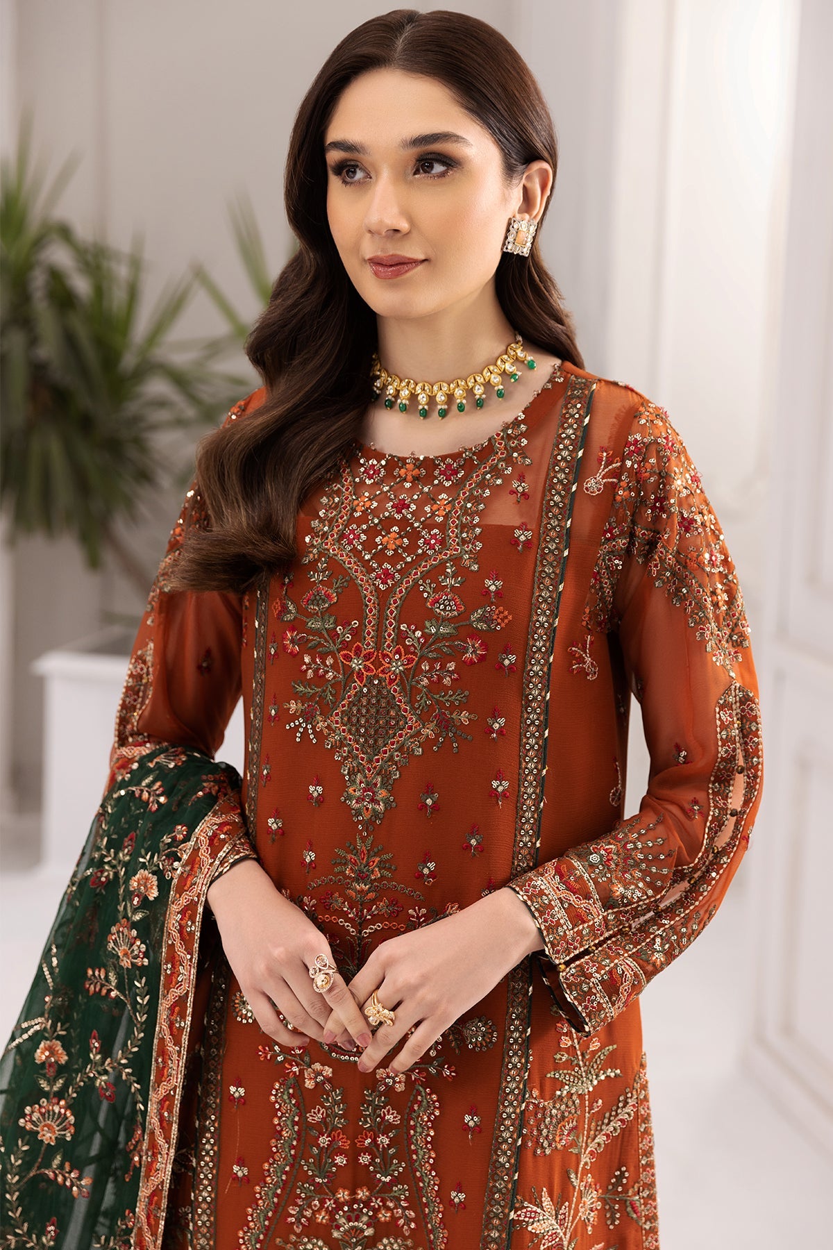 Fabric: Embroidered Chiffon Center Panel Embroidered Chiffon Right + Left Panel Embroidered Chiffon Back Embroidered Chiffon Sleeves Embroidered Sleeves Patch (2) Embroidered Front + Back Patch (2) Embroidered Organza Dupatta Dyed Raw Silk Trouser Embroidered Trouser Patch |