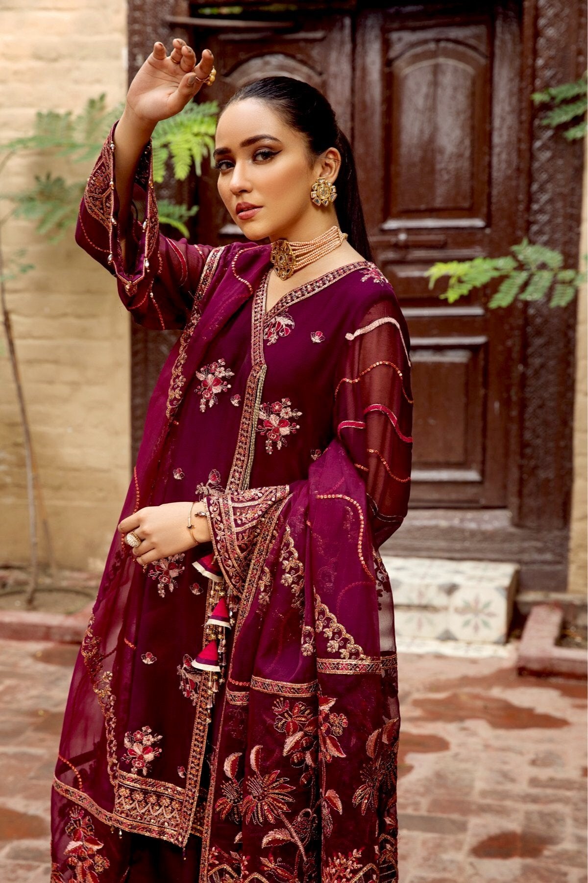 Fabric: Embroidered Chiffon Front Embroidered Chiffon Back Embroidered Chiffon Side Kali Embroidered Chiffon Front + Back Patch Embroidered Chiffon Sleeves Embroidered Chiffon Sleeves Patch Embroidered Chiffon Dupatta Embroidered Chiffon Dupatta Patch Embroidered Trouser Patch Dyed Russian Grip Trouser |