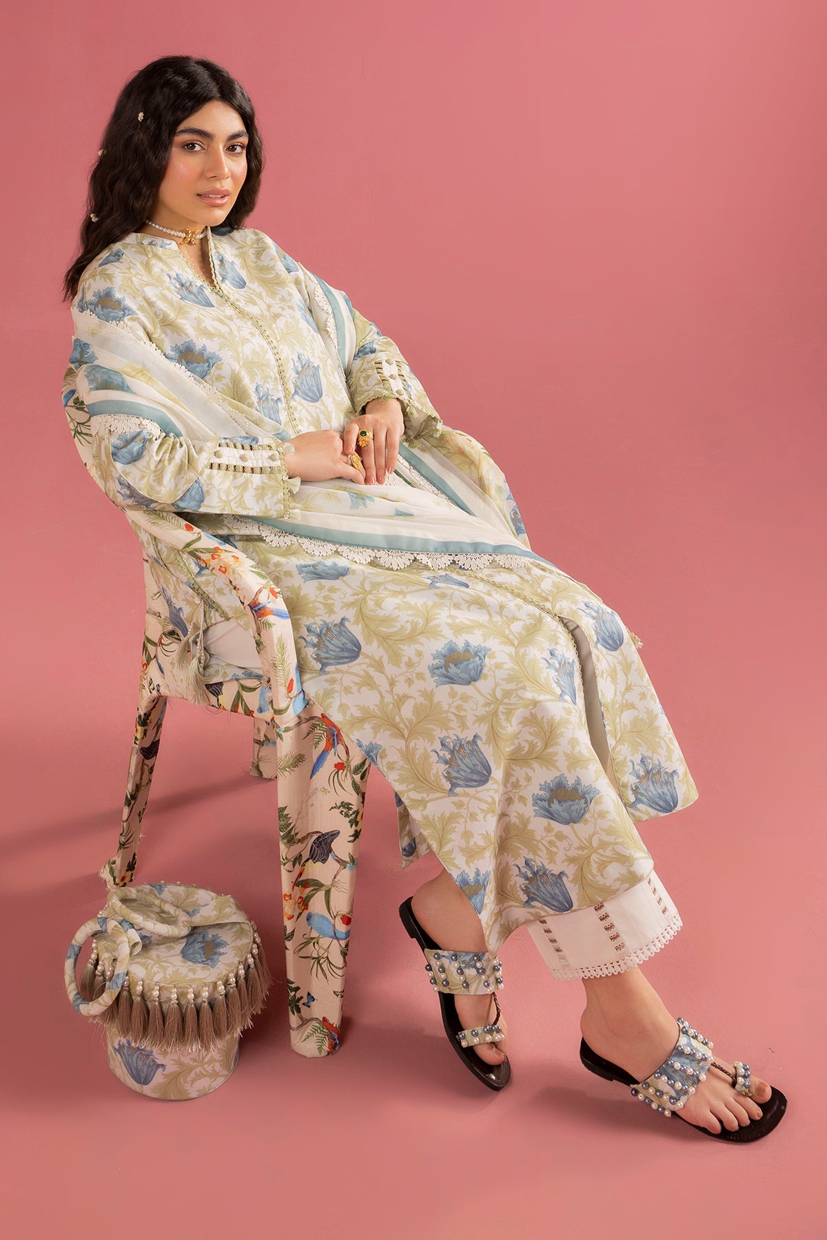 Fabric: Digital Printed Fine Lawn Shirt & Plain Cotton Trouser Digital Printed Chiffon Dupatta |