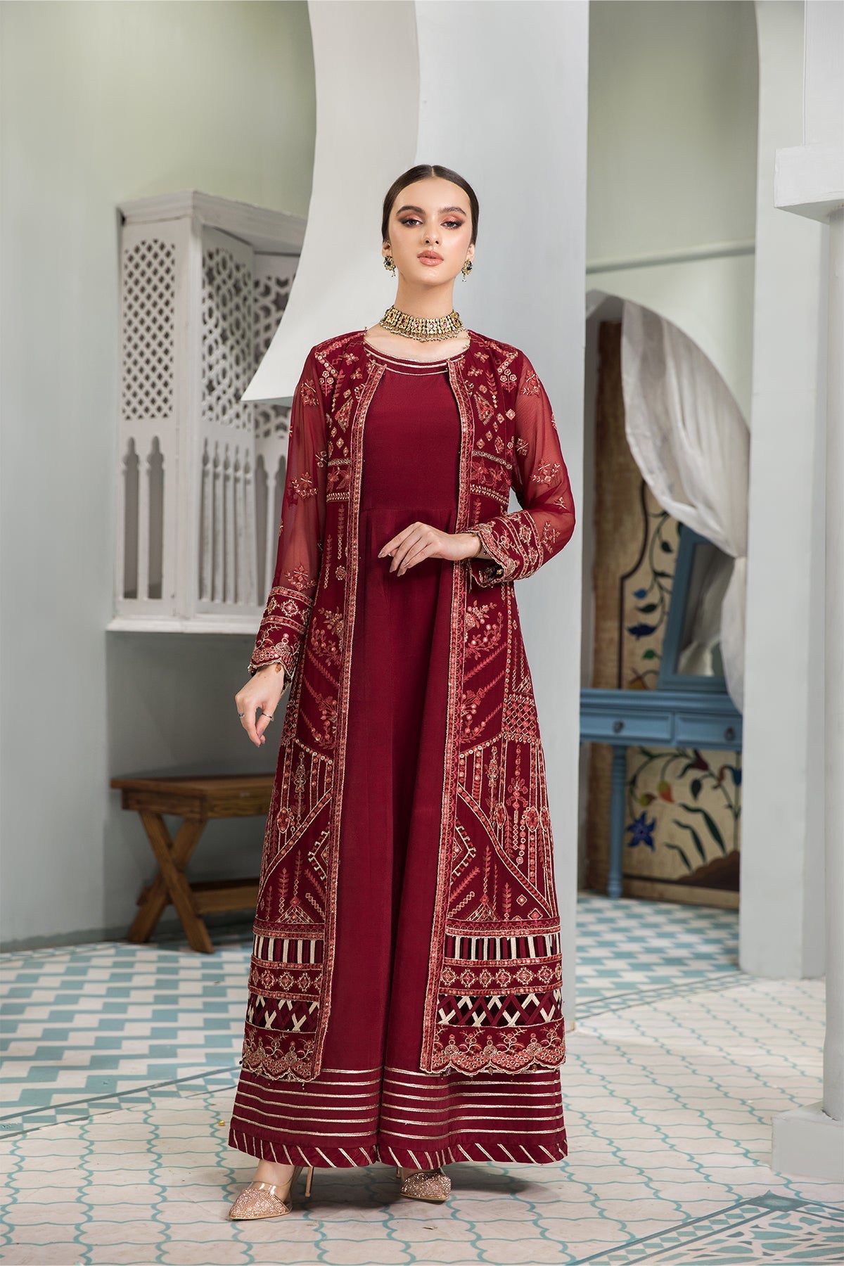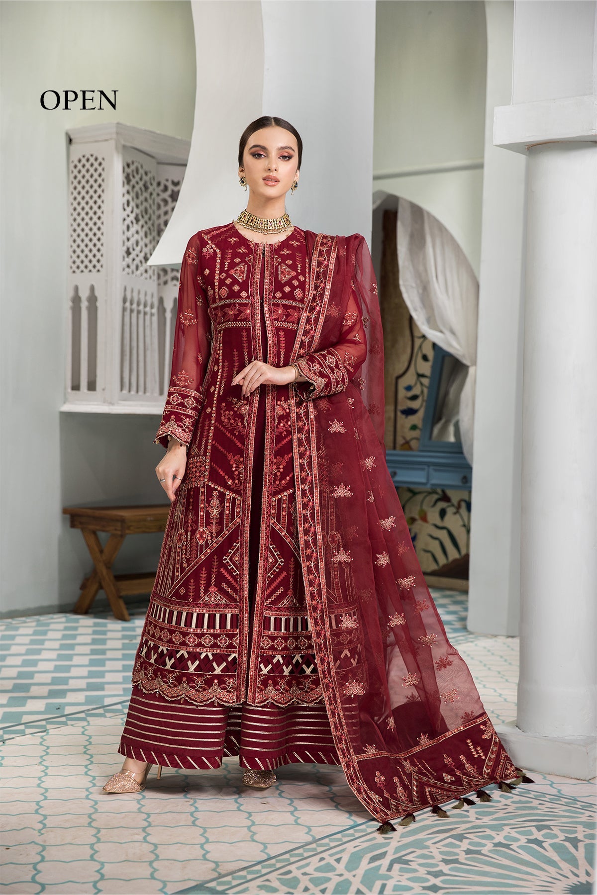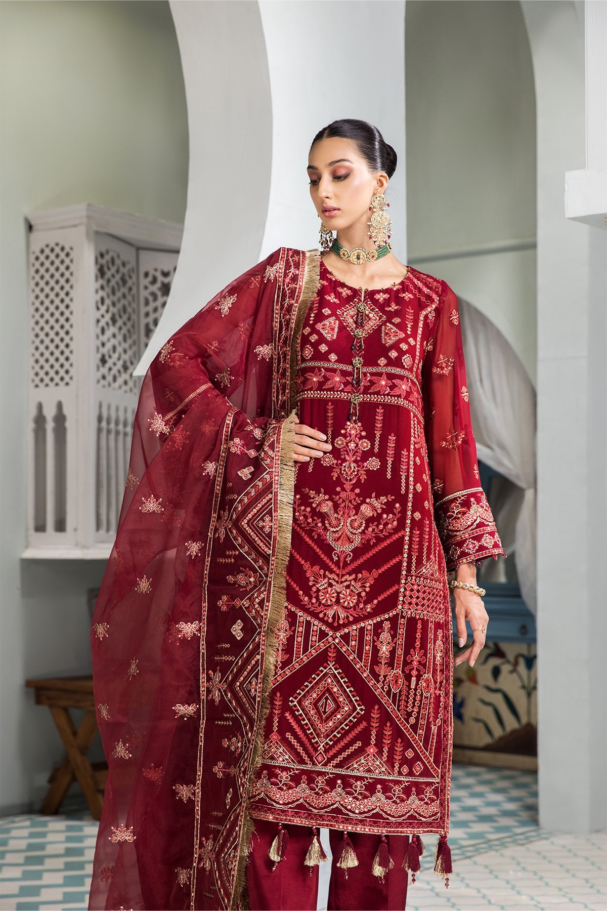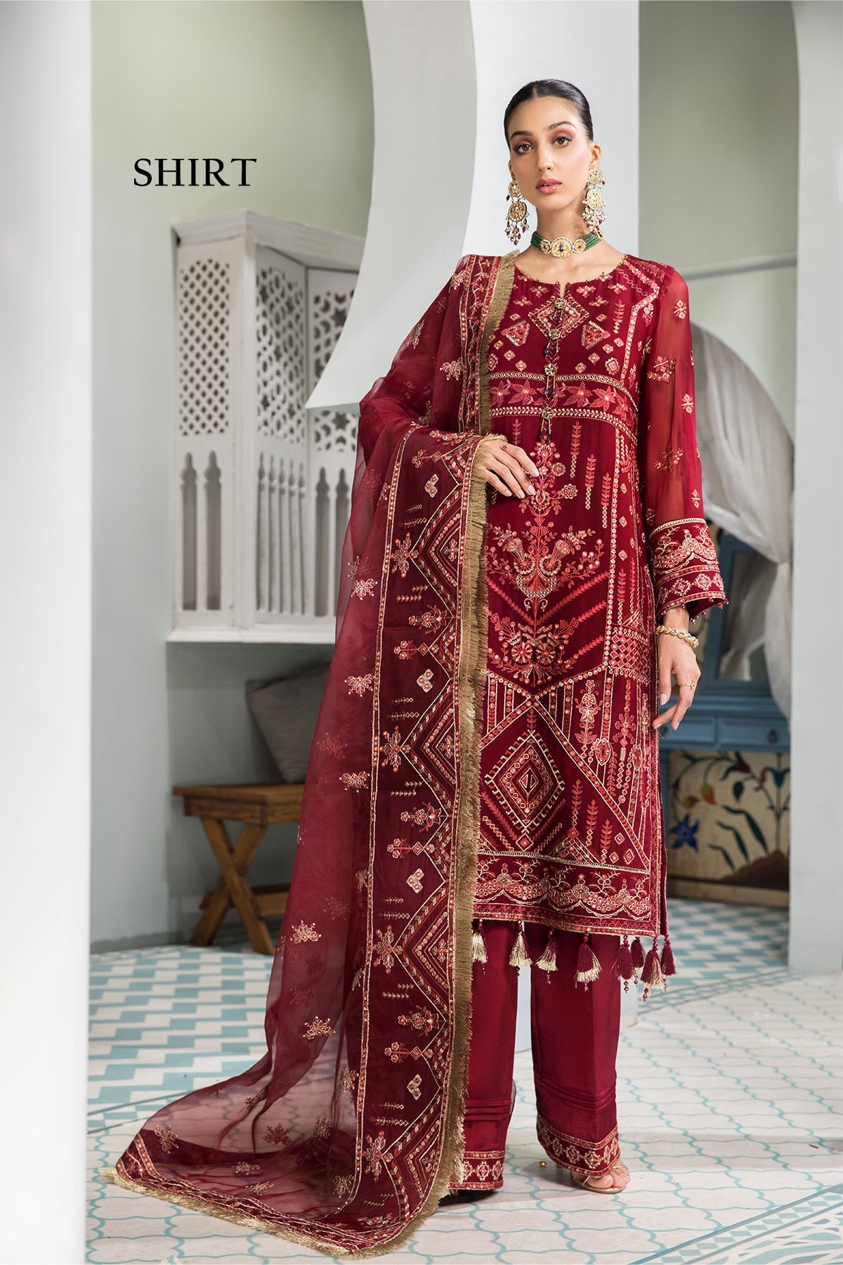 Fabric: Embroidered Chiffon Front Embroidered Chiffon Right + Left Panel Embroidered Chiffon Back Embroidered Chiffon Sleeves Embroidered Organza Dupatta Embroidered Front + Back Patch (3) Embroidered Sleeves Patch (2) Embroidered Dupatta Patch Dyed Grip Trouser |