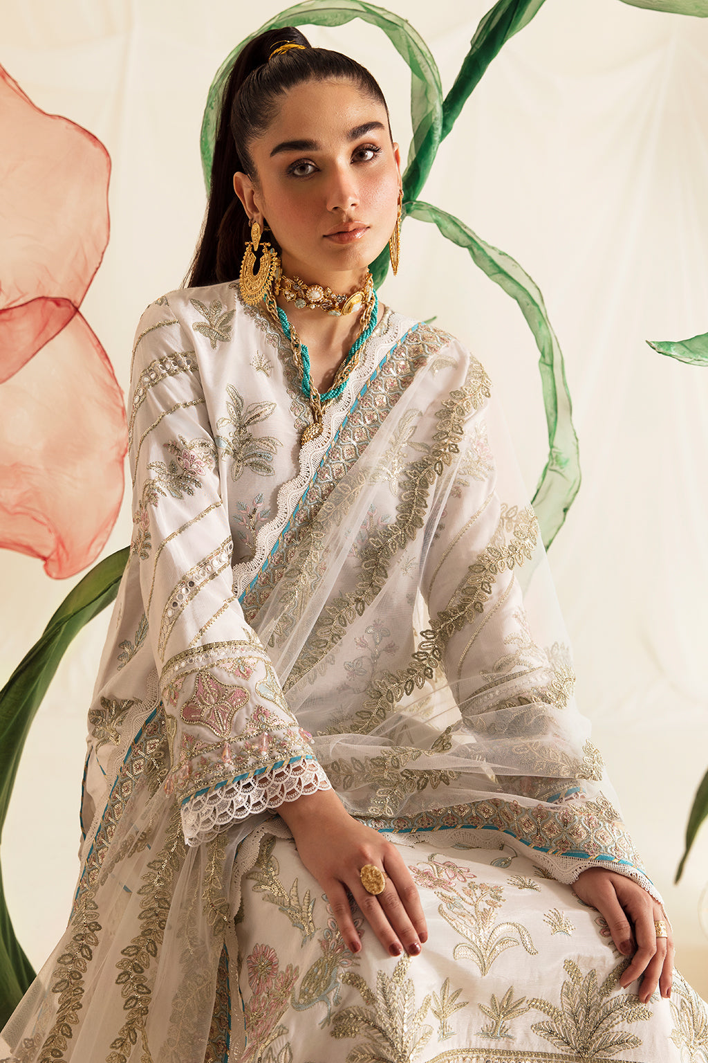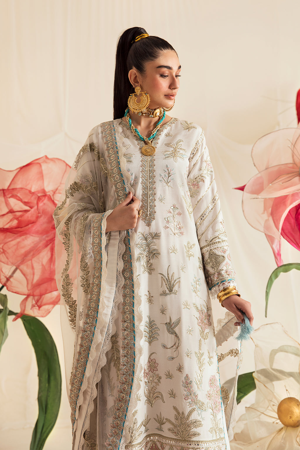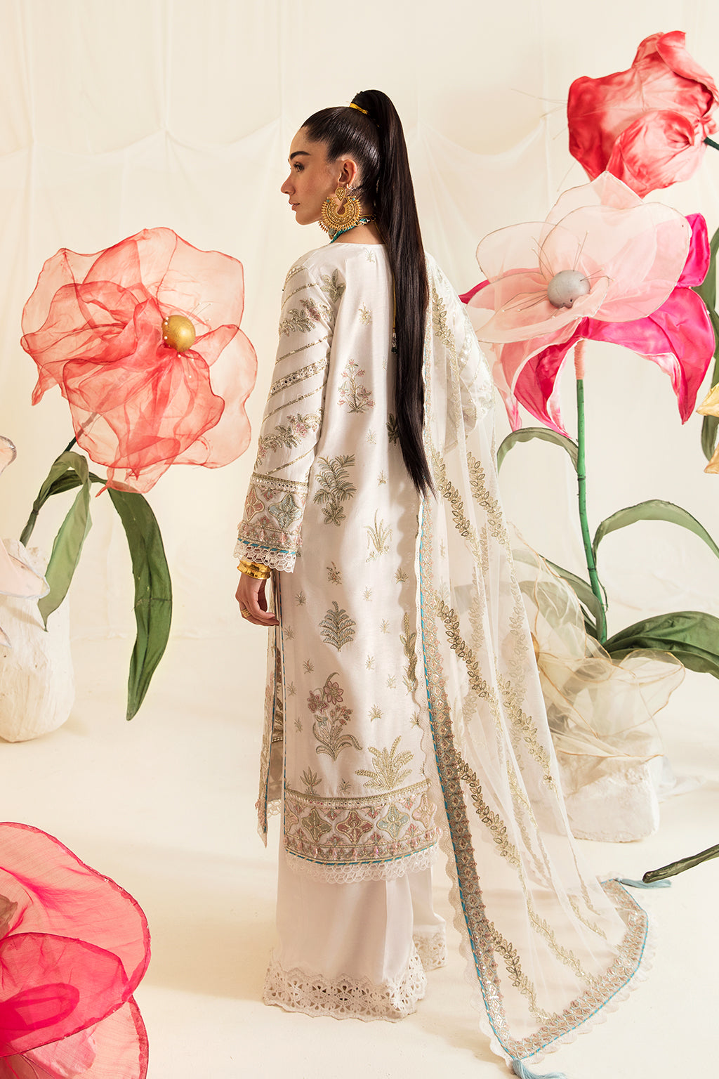 Fabric: RAW SILK EMBROIDERED FRONT (1 PC) RAW SILK EMBROIDERED BACK (1 PC) RAW SILK EMBROIDERED SLEEVES (0.66 M) VISCOSE EMBROIDERED FRONT+BACK+SLEEVES BORDER (3 M) NET EMBROIDERED DUPATTA (2.65 M) RAW SILK DYED TROUSER (2.28 M) |
