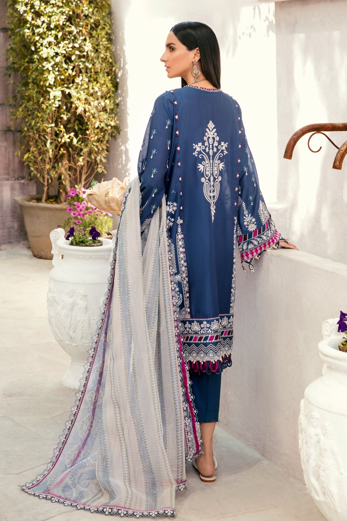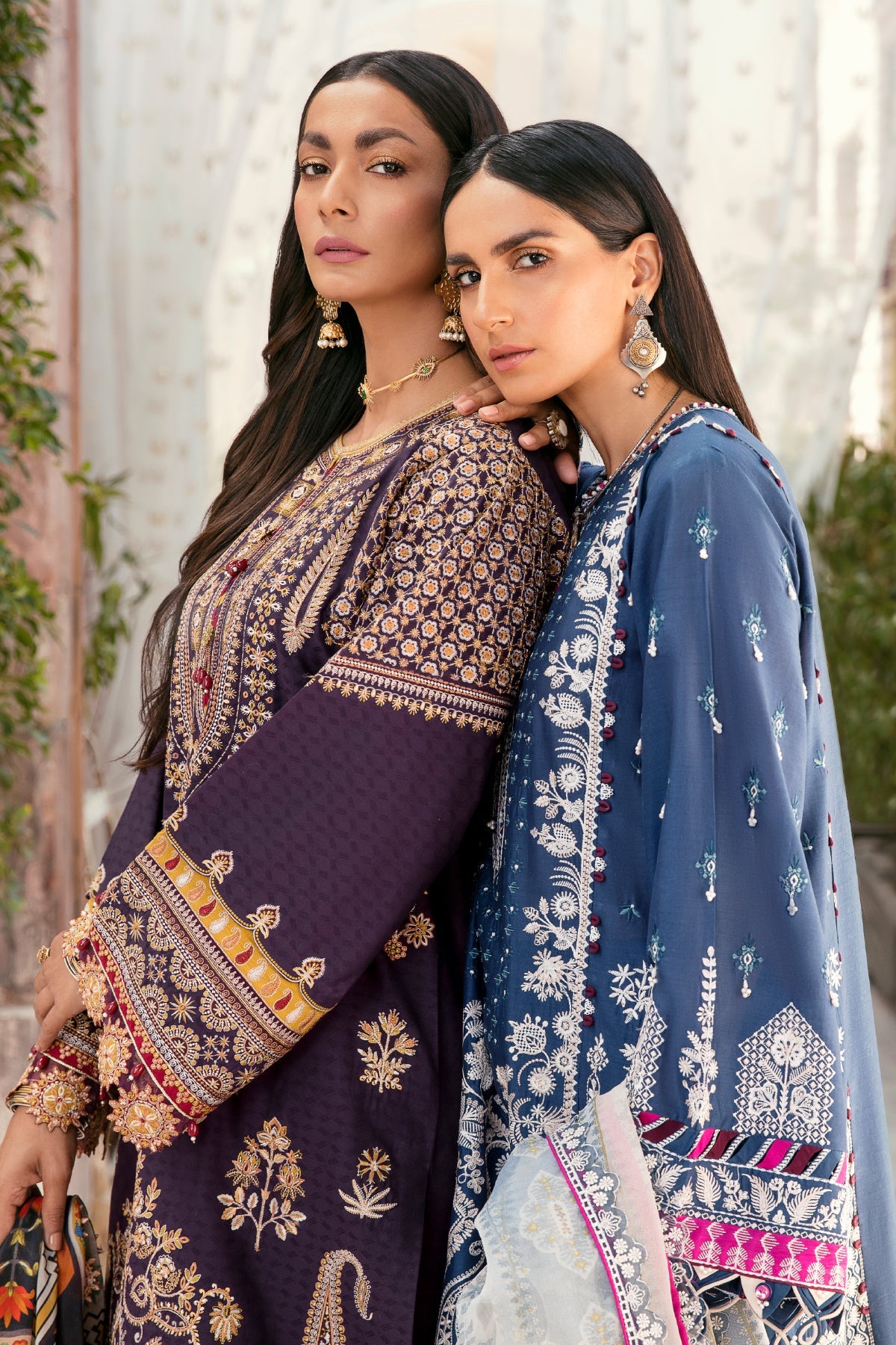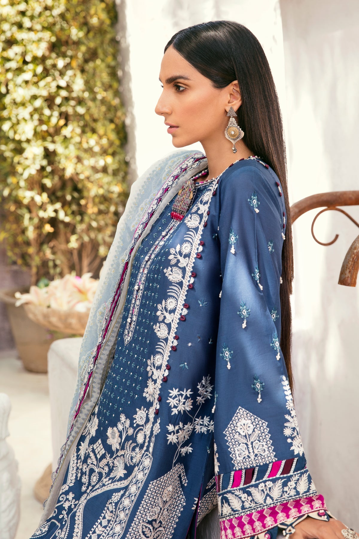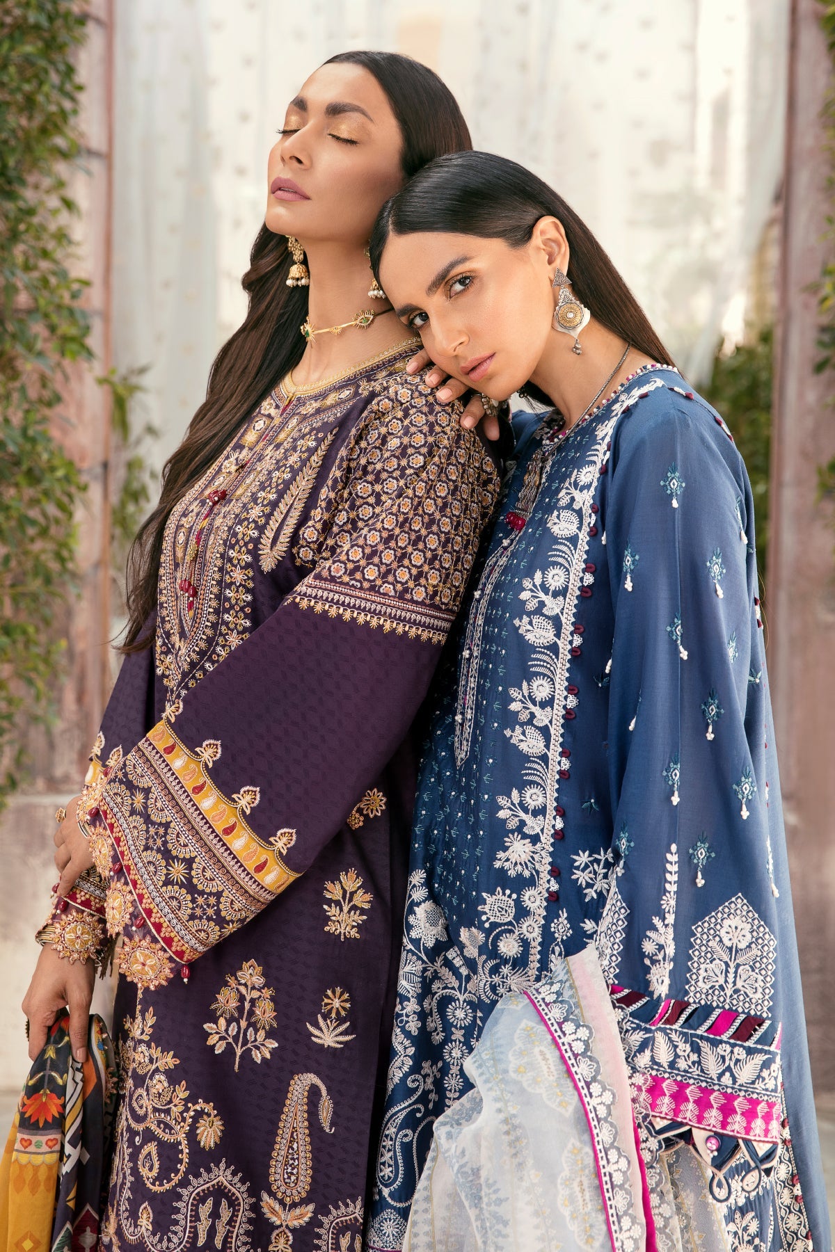 Fabric: EMBROIDERED LAWN FRONT PANEL (0.35 YARDS) EMBROIDERED LAWN BACK PANEL (0.35 YARDS) EMBROIDERED LAWN FRONT & BACK SIDE PANELS (04) (0.35 YARDS EACH) EMBROIDERED LAWN SLEEVES (0.70 YARDS) EMBROIDERED LAWN SLEEVES PATCHES (02) (1.10 YARDS EACH) EMBROIDERED FRONT & BACK PATCH (2 YARDS) EMBROIDERED DUPATTA PATCH (8.65 YARDS) DIGITAL PRINTED ORGANZA DUPATTA (2.73 YARDS) DYED CAMBRIC LAWN TROUSER (2.73 YARDS) |