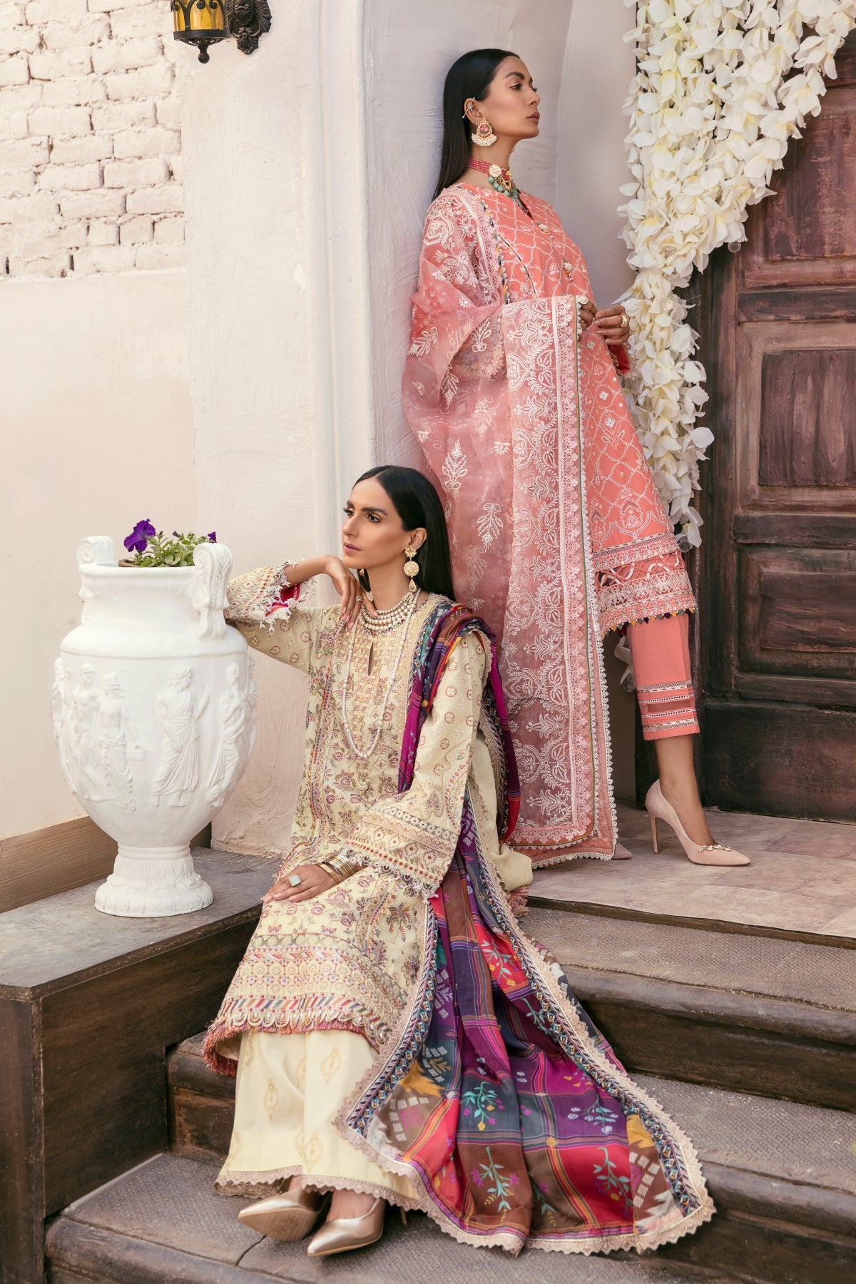 Fabric: EMBROIDERED SELF JACQUARD LAWN FRONT PANEL (0.35 YARDS) EMBROIDERED SELF JACQUARD LAWN SIDE PANELS (02) (0.35 YARDS EACH) DYED SELF JACQUARD LAWN BACK (1 YARD) EMBROIDERED SELF JACQUARD LAWN SLEEVES (0.70 YARDS) EMBROIDERED SLEEVES PATCHES (02) (1.25 YARDS EACH) EMBROIDERED FRONT & BACK PATCH (02) (2 YARDS EACH) EMBROIDERED DUPATTA & TROUSER PATCH (10 YARDS) DIGITAL PRINTED SILK DUPATTA (2.73 YARDS) DIGITAL PRINTED CAMBRIC LAWN TROUSER (2.73 YARDS) |