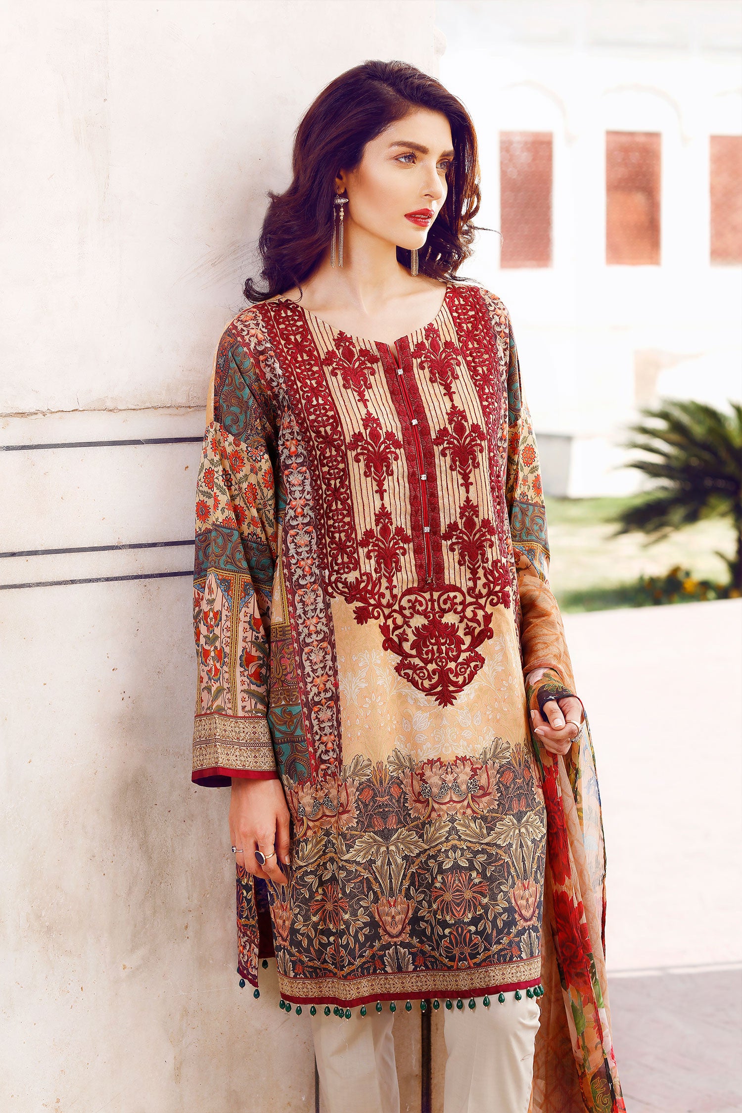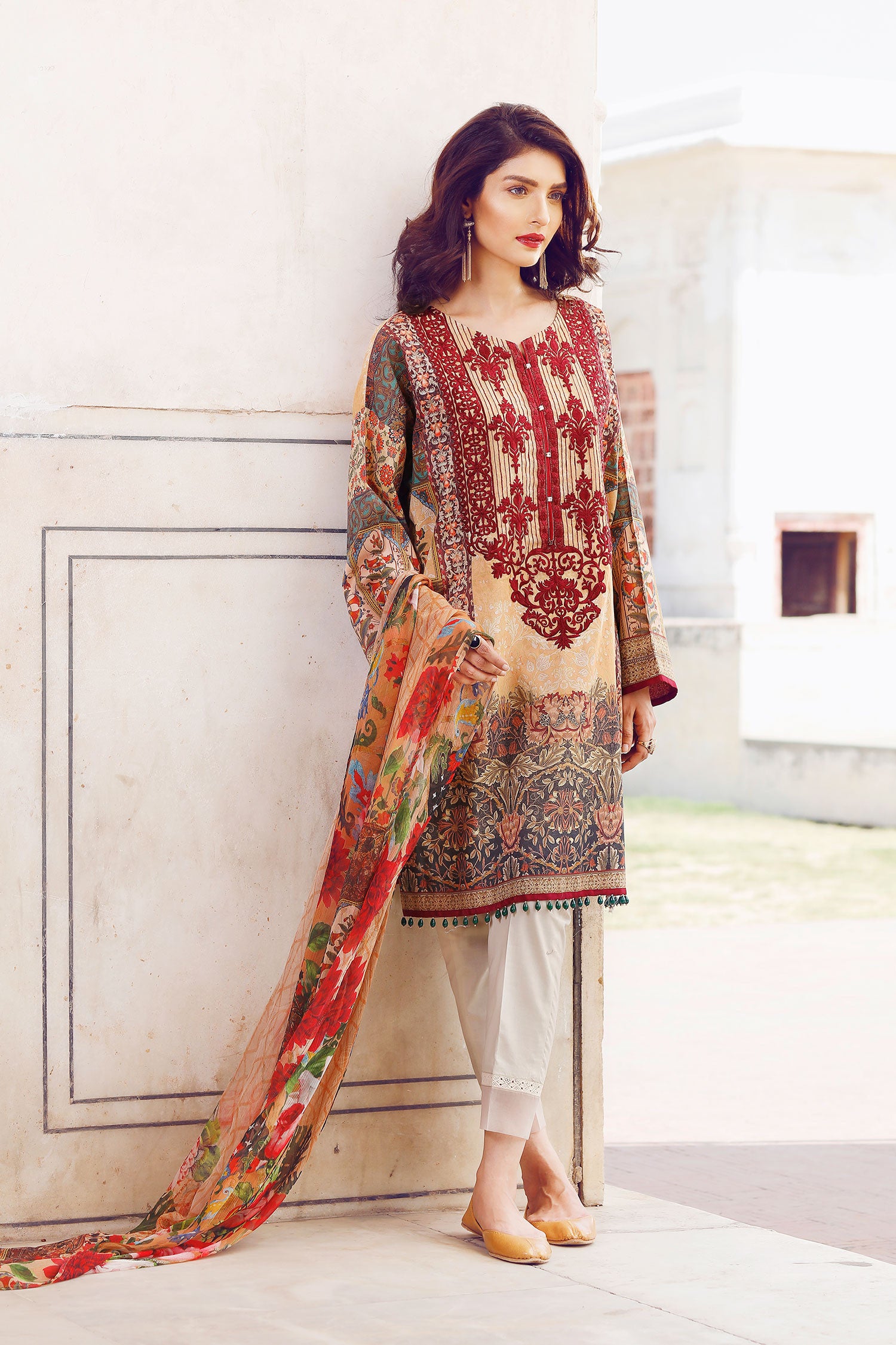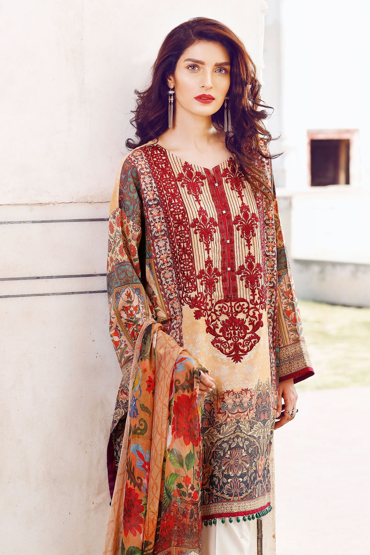 Fabric: Digital Printed Lawn Shirt Embroidered Neckline Patch Digital Printed Chifffon Dupatta Dyed Cambric Lawn Trousers |