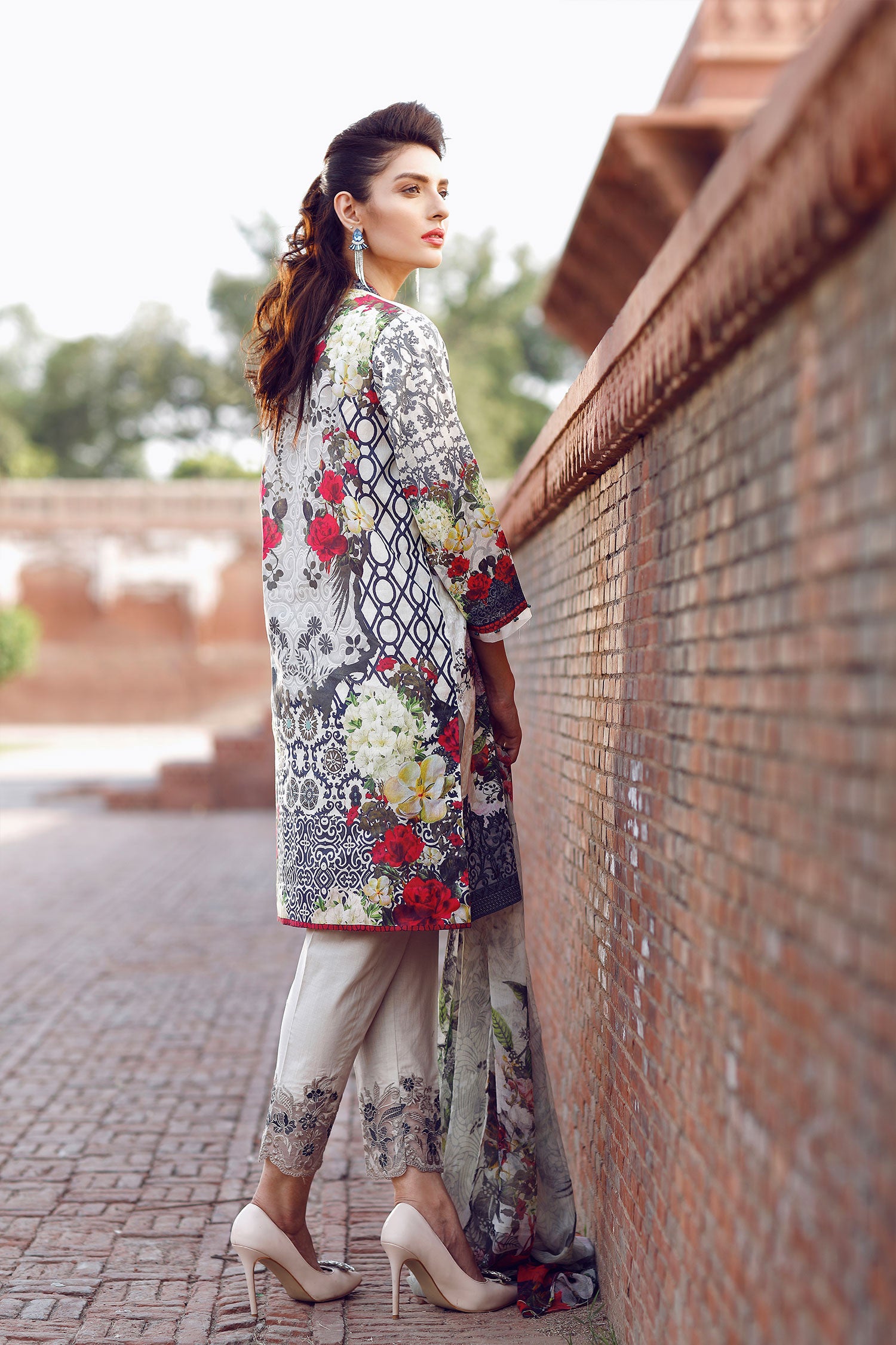 Fabric: Digital Printed Lawn Shirt Digital Printed Chiffon Dupatta Dyed Cambric Lawn Trousers Embroidered Trousers Patch Embroidered Front Bottom Patch |