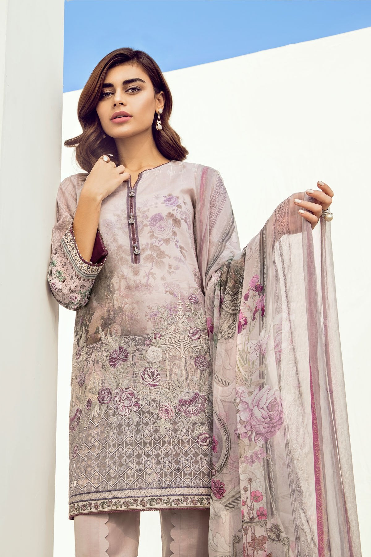 Fabric: Embroidered Front Patch Digital Printed Lawn Shirt Digital Printed Chiffon Dupatta Cambric Lawn Trousers |