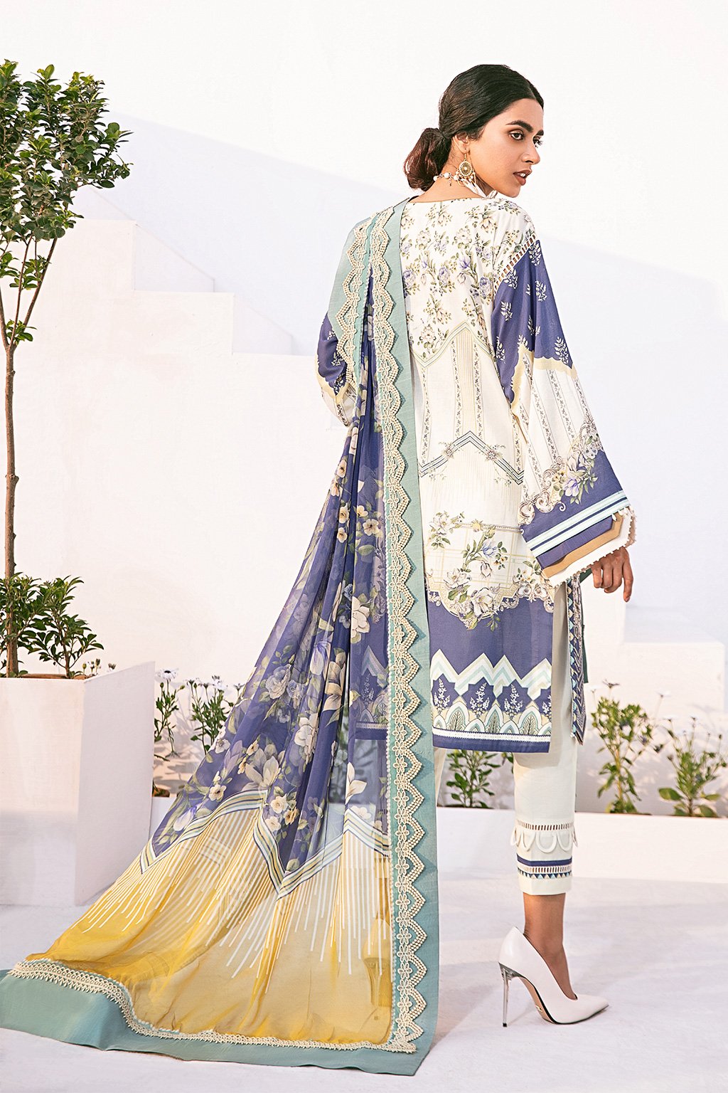 Fabric: Embroidered Lawn Front Digital Printed Lawn Back And Sleeves Embroidered Neckline Patch Embroidered Front Patch Digital Printed Chiffon Dupatta Dyed Cambric Lawn Trouser |