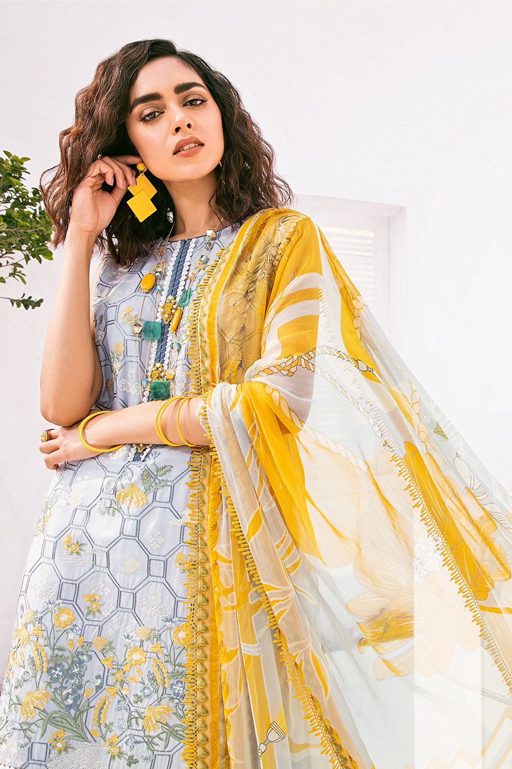 Fabric: Embroidered Lawn Front Digital Printed Lawn Back And Sleeves Embroidered Front Patch Embroidered Trousers Patch Digital Printed Chiffon Dupatta Dyed Cambric Lawn Trouser |