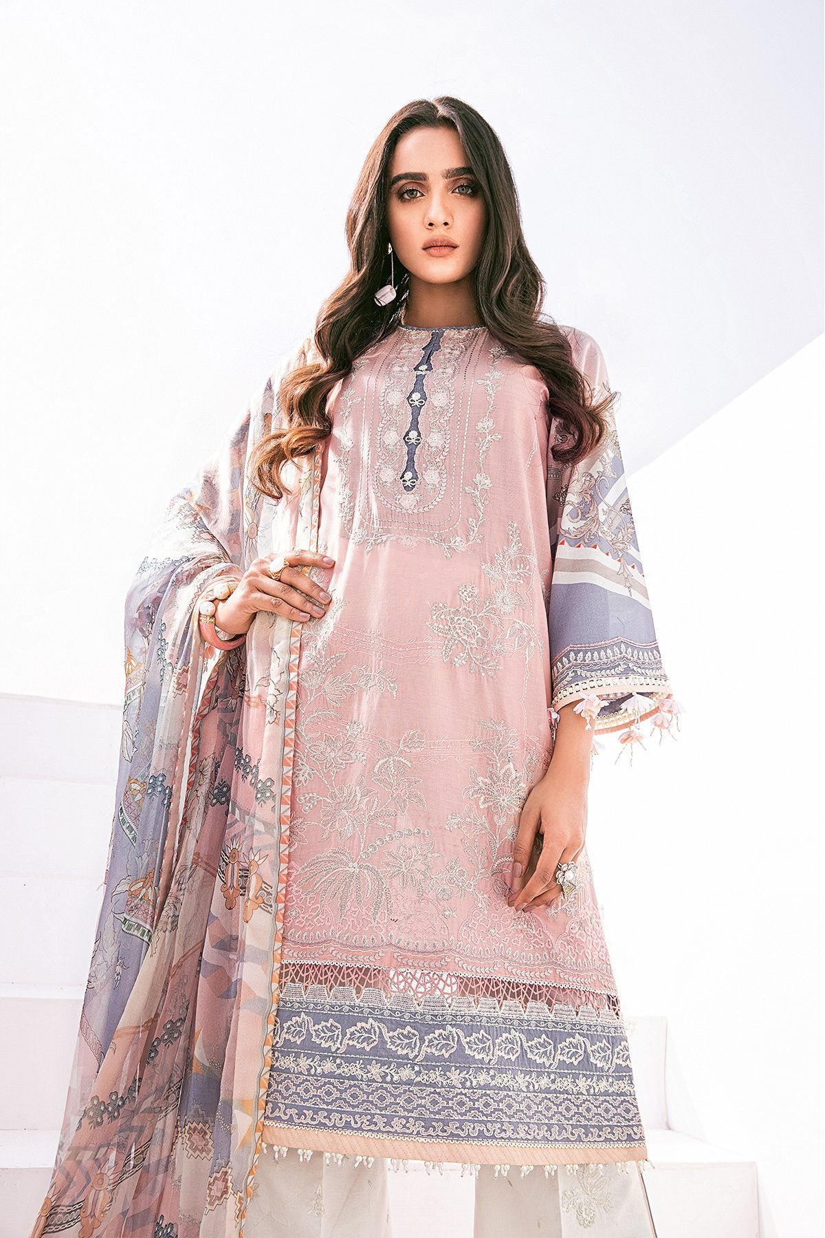 Fabric: Embroidered Lawn Front Digital Printed Lawn Back+Sleeves Embroidered Sleeves Patch Embroidered Front Patch Digital Printed Chiffon Dupatta Embroidered Cambric Lawn Trouser |