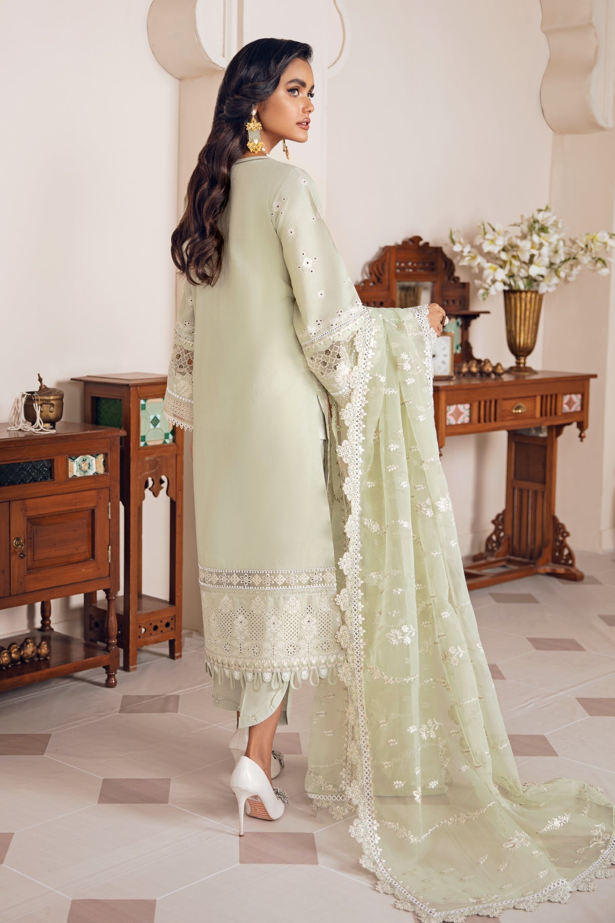 Fabric: EMBROIDERED SWISS LAWN FRONT (0.85 YARDS) PLAIN SWISS LAWN BACK (0.90 YARDS) EMBROIDERED SWISS LAWN SLEEVES (0.70 YARDS) EMBROIDERED SLEEVES PATCHES (02) (1.25 YARDS EACH) EMBROIDERED FRONT & BACK PATCHES (03) (1.80 YARDS EACH) EMBROIDERED ORGANZA DUPATTA (2.50 YARDS) EMBROIDERED DUPATTA PATCH (10 YARDS) DYED CAMBRIC LAWN TROUSER (2.70 YARDS) |