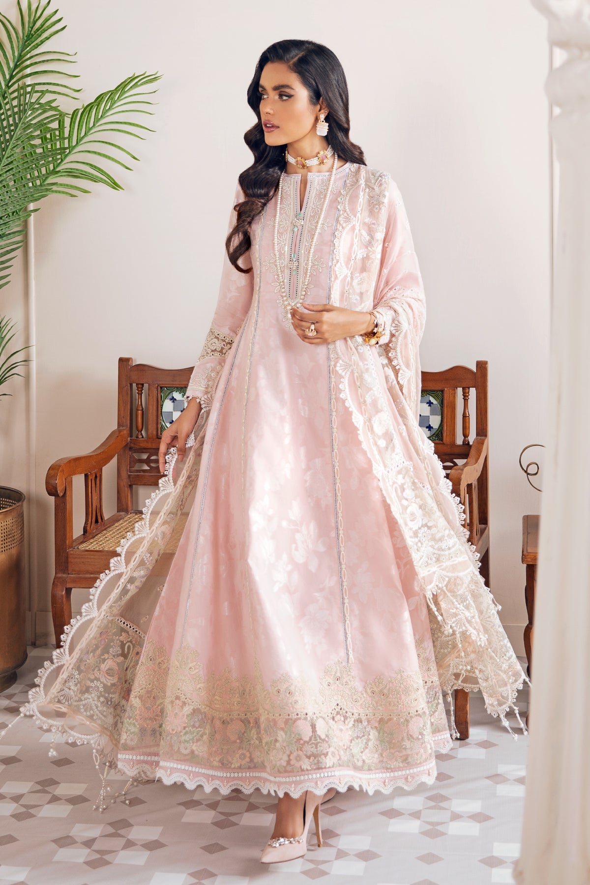 Fabric: DYED JACQUARD LAWN SHIRT (4.25 YARDS) EMBROIDERED NECKLINE PATCH (1 PC) EMBROIDERED SLEEVES PATCH (2 PCS) EMBROIDERED SLEEVES PATCH (1.10 YARDS) EMBROIDERED FRONT PANEL PATCH (2.50 YARDS) EMBROIDERED FRONT & BACK PATHCES (02) (2 YARDS EACH) EMBROIDERED CHIFFON DUPATTA (2.50 YARDS) EMBROIDERED DUPATTA PATCH (2.20 YARDS) EMBROIDERED DUPATTA PATCH (6.65 YARDS) EMBROIDERED DUPATTA PATCH (10 YARDS) DYED CAMBRIC LAWN TROUSER (2.70 YARDS) |