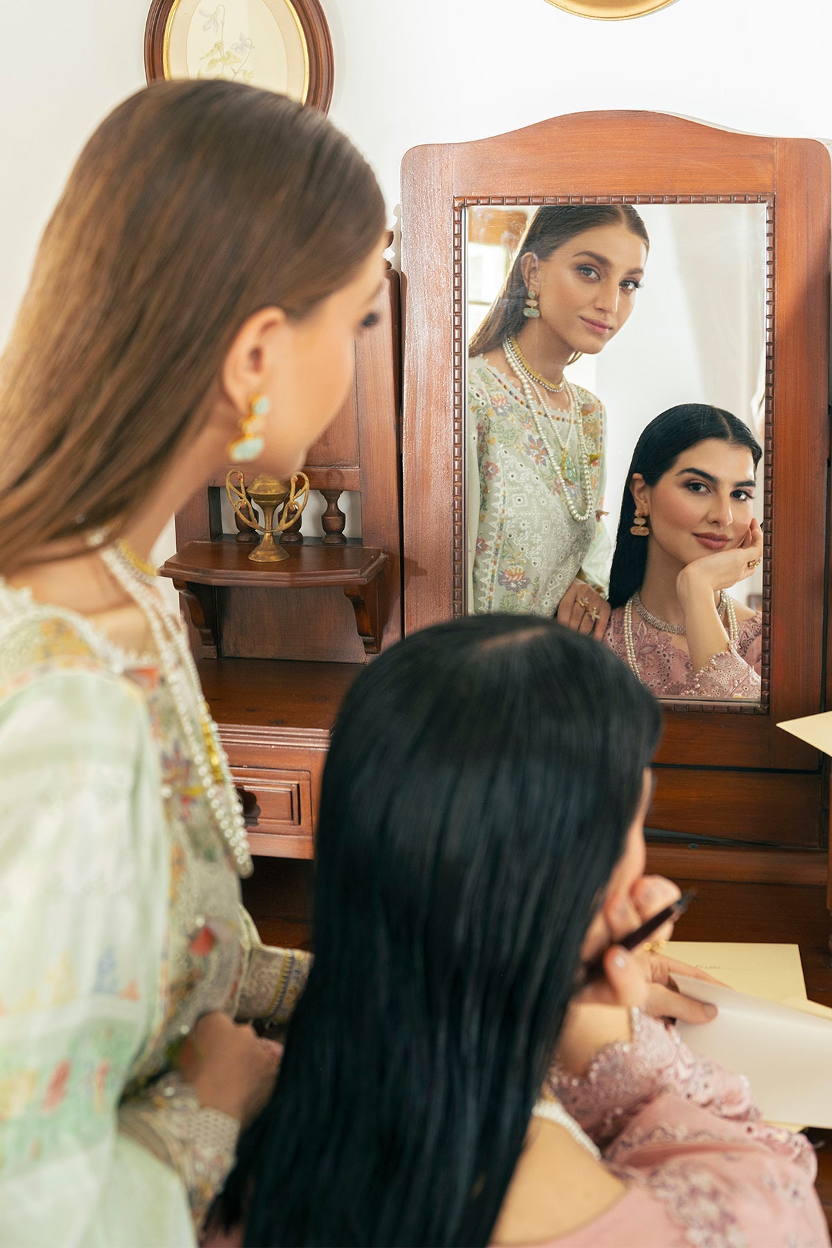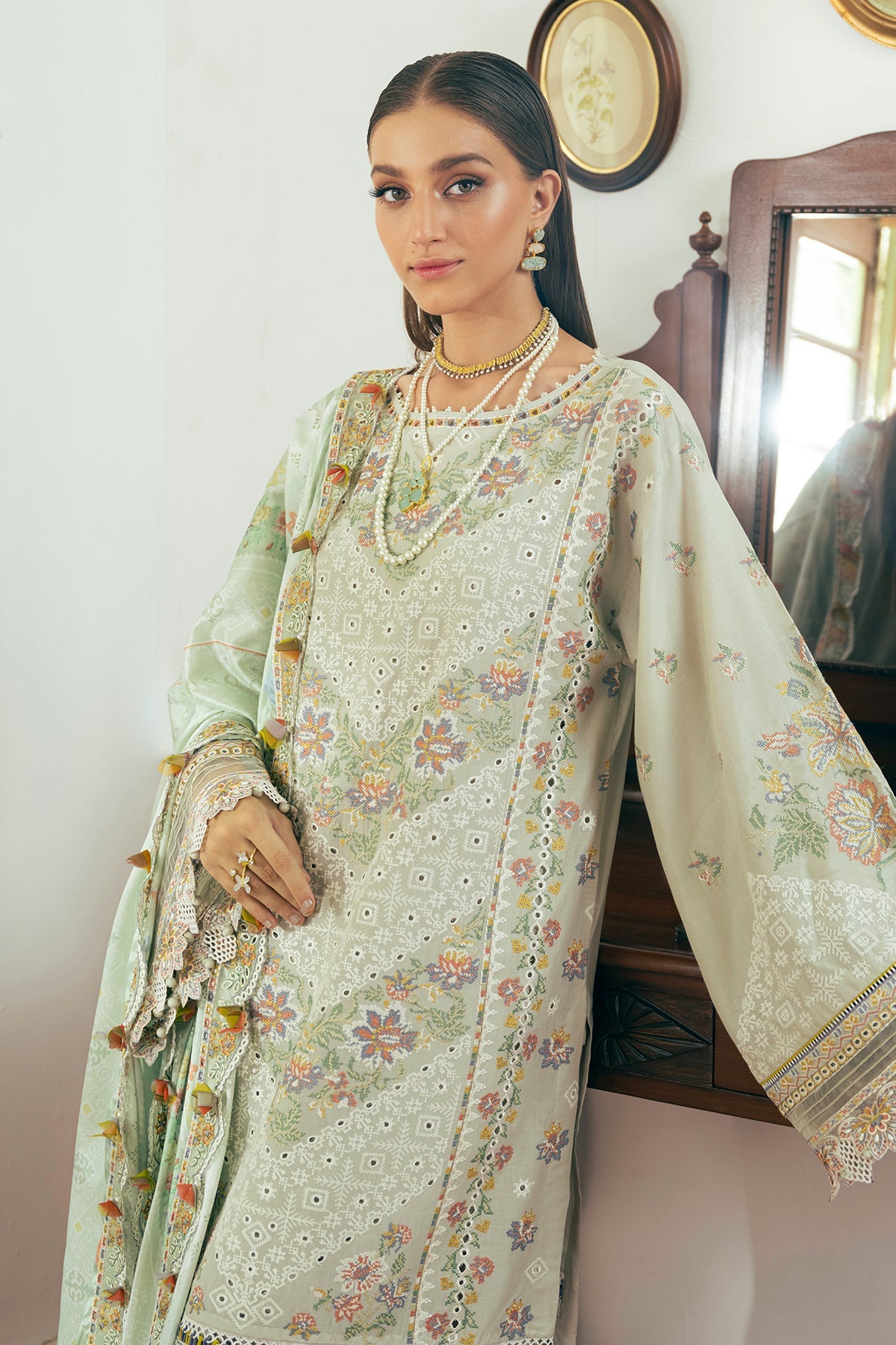 Fabric:EMBROIDERED LAWN FRONT PANEL (1 PC)EMBROIDERED LAWN FRONT SIDE PANEL (2 PC)LAWN PLAIN BACK (1 YARD)EMBROIDERED ORGANZA NECKLINE BORDER (0.5 YARDS)EMBROIDERED COTTON FRONT & BACK BORDER (2 YARDS)EMBROIDERED LAWN SLEEVE (0.72 YARDS)EMBROIDERED ORGANZA DUPATTA BORDERS (2) (1.25 YARDS EACH)DIGITAL PRINTED SILK DUPATTA (2.75 YARDS)EMBROIDERED ORGANZA DUPATTA BORDER (10 YARDS)DYED COTTON TROUSER (2.5 YARDS)EMBROIDERED COTTON TROUSER PATCH (1.08 YARDS) |