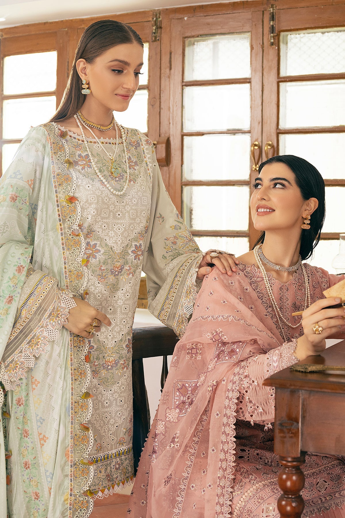 Fabric:EMBROIDERED SELF JACQUARD LAWN FRONT PANELS (2 PC)EMBROIDERED COTTON FRONT & BACK BORDER (2) (1.77 YARDS)SELF JACQUARD LAWN PLAIN BACK (1 YARD)EMBROIDERED ORGANZA FRONT & BACK BORDER (1.77 YARDS)EMBROIDERED COTTON SLEEVE PATCH (1.08 YARDS)EMBROIDERED SELF JACQUARD LAWN SLEEVES (0.72 YARDS)EMBROIDERED ORGANZA SLEEVE PATCH(1.08 YARDS)EMBROIDERED ORGANZA DUPATTA CENTER PANEL (2.5 YARDS)EMBROIDERED ORGANZA COTTON PATTI DUPATTA SIDE PANELS (5 YARDS)EMBROIDERED ORGANZA DUPATTA BORDER (10 YARDS)DYED COTTON TROUSER (2.5 YARDS)EMBROIDERED ORGANZA TROUSER BORDER (1.08 YARDS) |