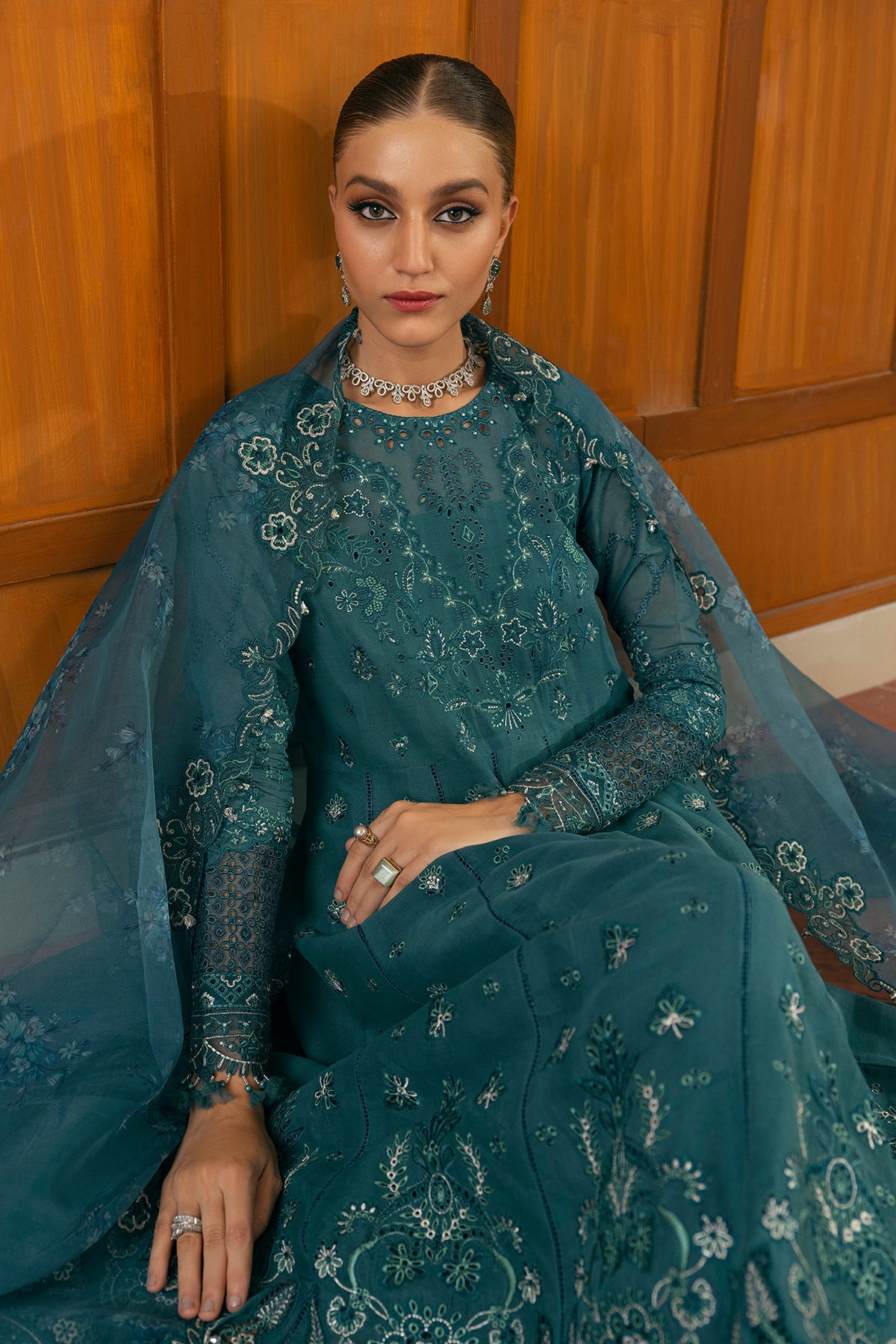 Fabric:EMBROIDERED SWISS LAWN FRONT BODY (1 PC)EMBROIDERED SWISS LAWN FRONT (1.75 YARDS)EMBROIDERED ORGANZA FRONT MOTIF (7 PCS)SWISS LAWN BACK (2 YARDS)EMBROIDERED COTTON FRONT & BACK BORDER (3.37 YARDS)EMBROIDERED ORGANZA FRONT , BACK & SLEEVES BORDER (5 YARDS)EMBROIDERED SWISS LAWN SLEEVE (0.72 YARDS)EMBROIDERED ORGANZA SLEEVE BORDER (1.08 YARDS)EMBROIDERED DIGITAL PRINTED ORGANZA DUPATTA (2.2 YARDS)EMBROIDERED DIGITAL PRINTED ORGANZA DUPATTA PALLU (2 PC)DYED COTTON TROUSER (2.50 YARDS) |