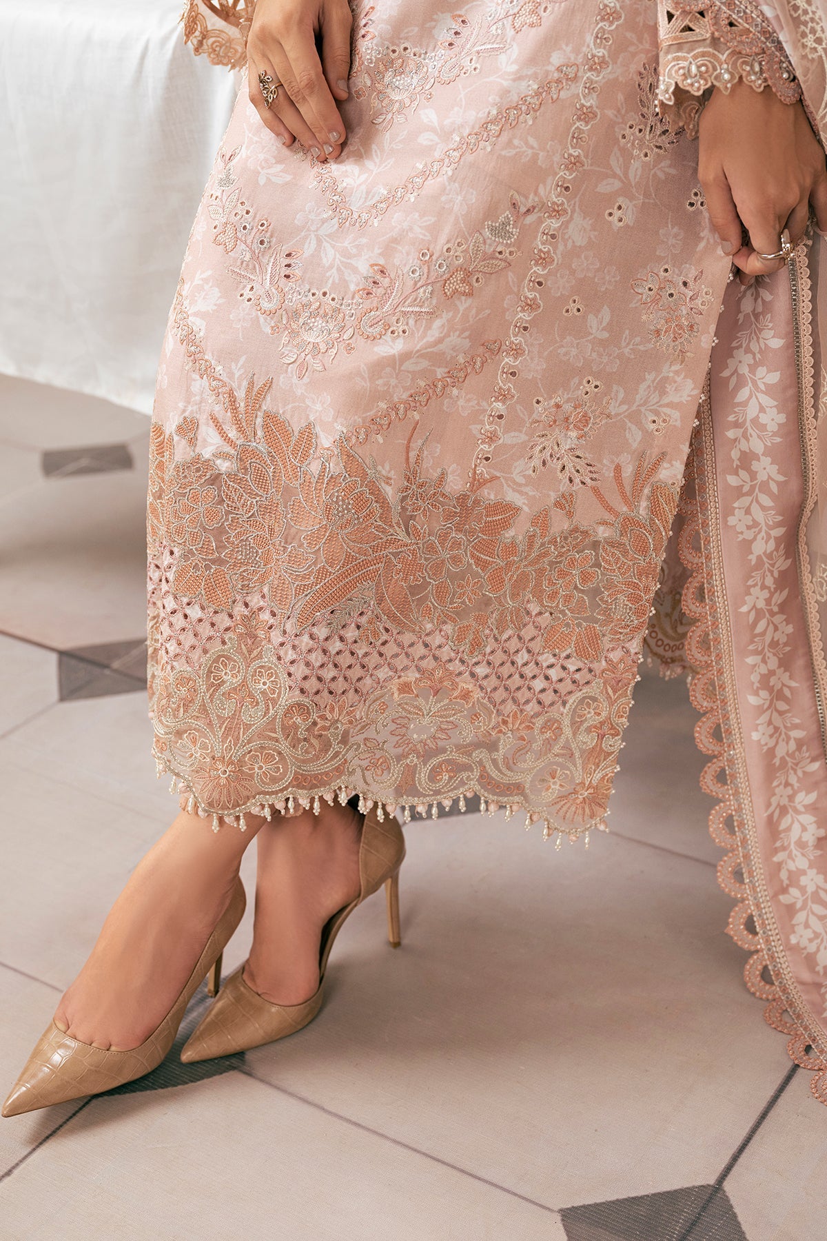 Fabric:EMBROIDERED DIGITAL PRINTED LAWN FRONT (0.72 YARDS)EMBROIDERED DIGITAL PRINTED LAWN FRONT SIDE PANELS (1.08 YARDS)EMBROIDERED DIGITAL PRINTED LAWN FRONT BORDER (1 YARD)DIGITAL PRINTED LAWN BACK (1.25 YARDS)EMBROIDERED ORGANZA FRONT PATCH (1 YARD)EMBROIDERED ORGANZA FRONT & BACK PATCH (2.16 YARDS)EMBROIDERED DIGITAL PRINTED LAWN SLEEVE (0.72 YARDS)EMBROIDERED ORGANZA SLEEVE BORDERS (02) (1.25 YARDS)EMBROIDERED CHIFFON DUPATTA (2.66 YARDS)DIGITAL PRINTED SILK DUPATTA BORDER (8 YARDS)EMBROIDERED ORGANZA DUPATTA BORDER (10 YARDS)DIGITAL PRINTED COTTON TROUSER (2.50 YARDS)EMBROIDERED ORGANZA TROUSER BORDER (1.08 YARDS) |