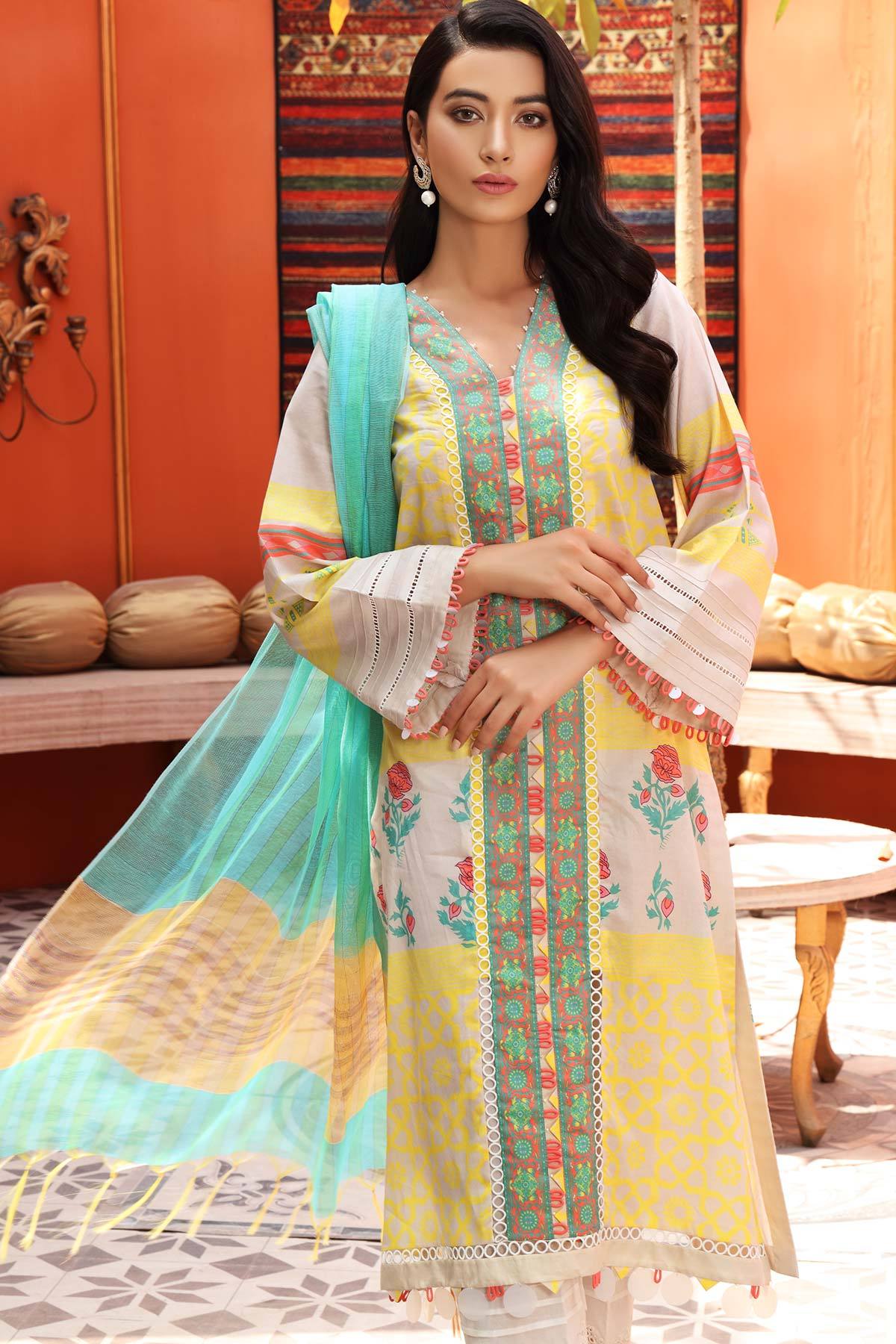 Lawn Printed Front + Back + Sleeves 3.4 M