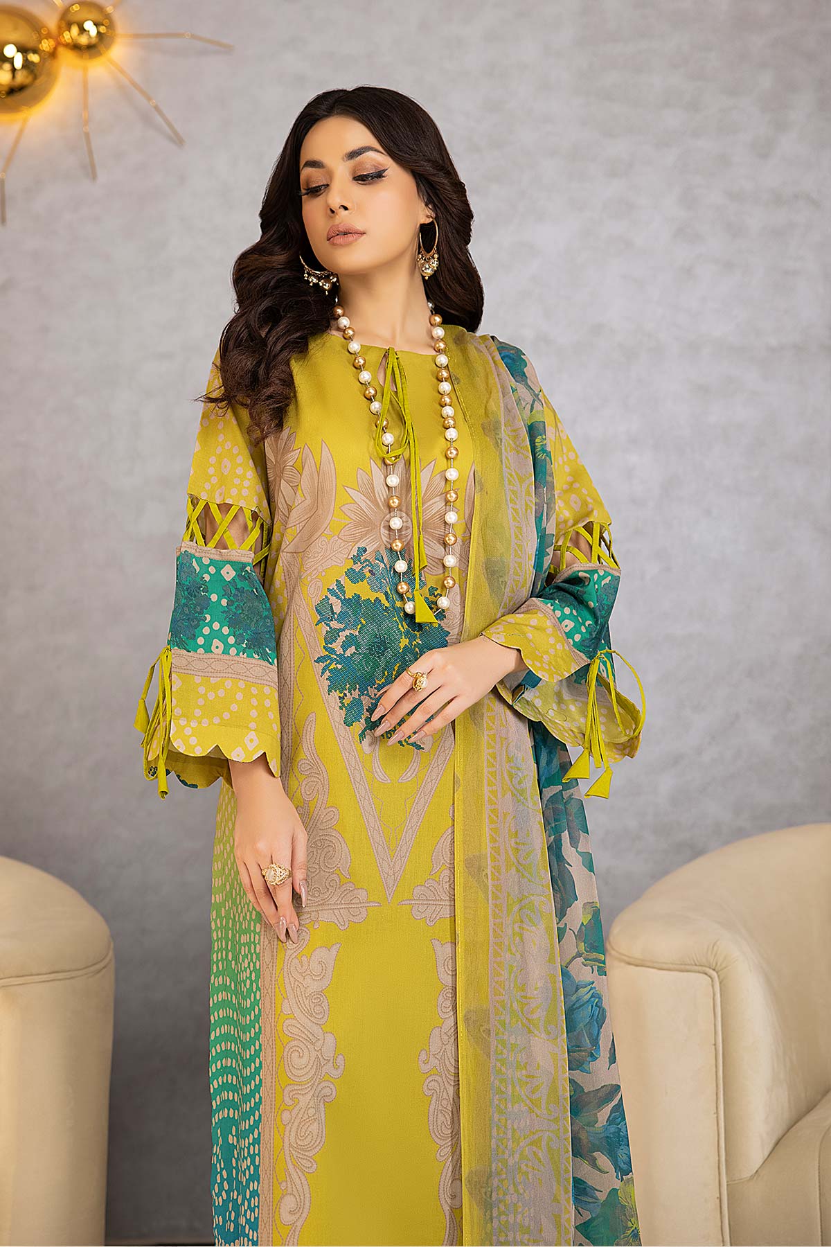 Fabric: Shirt Print Lawn Front +Back & Sleeves 3.4M Trouser Cotton Trouser 2.5 M Dupatta Printed chiffon Dupatta 2.5M |