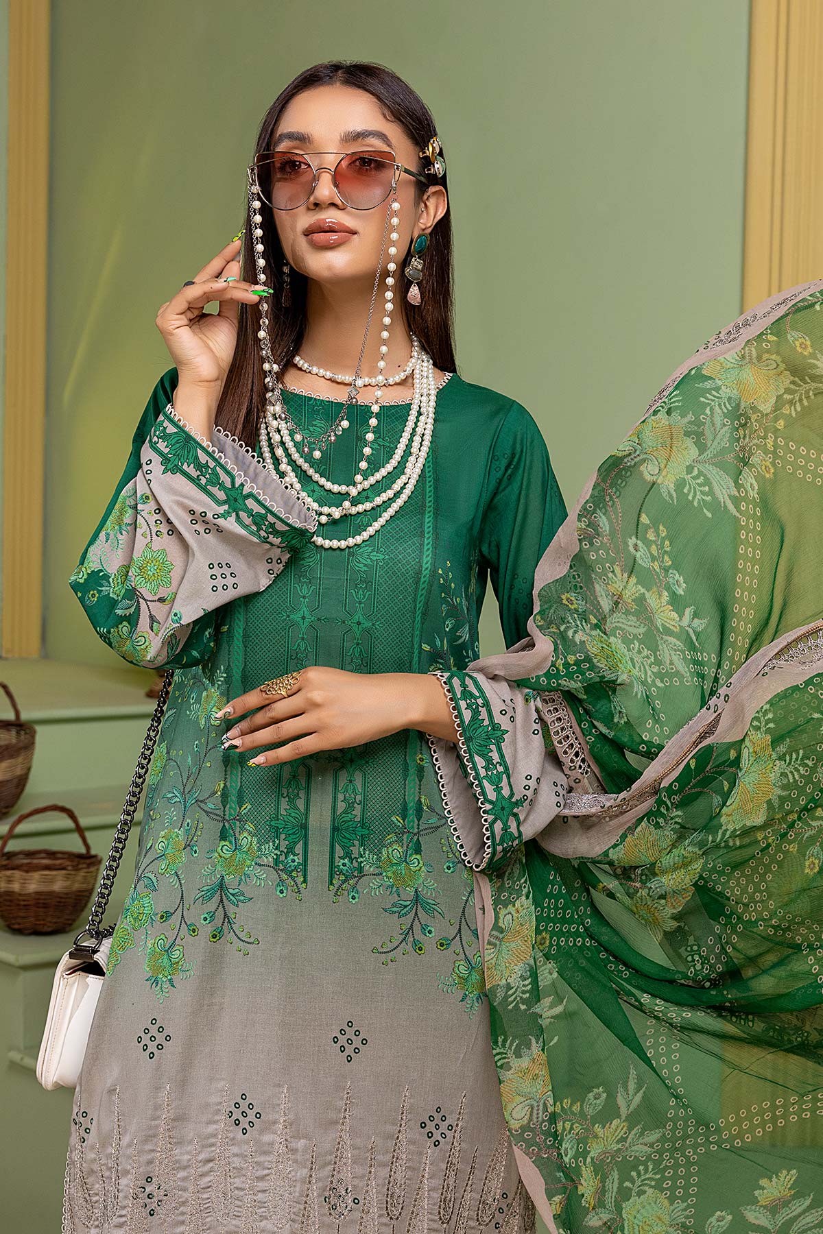 - Embroidered chiffon Printed Dupatta 2.5M