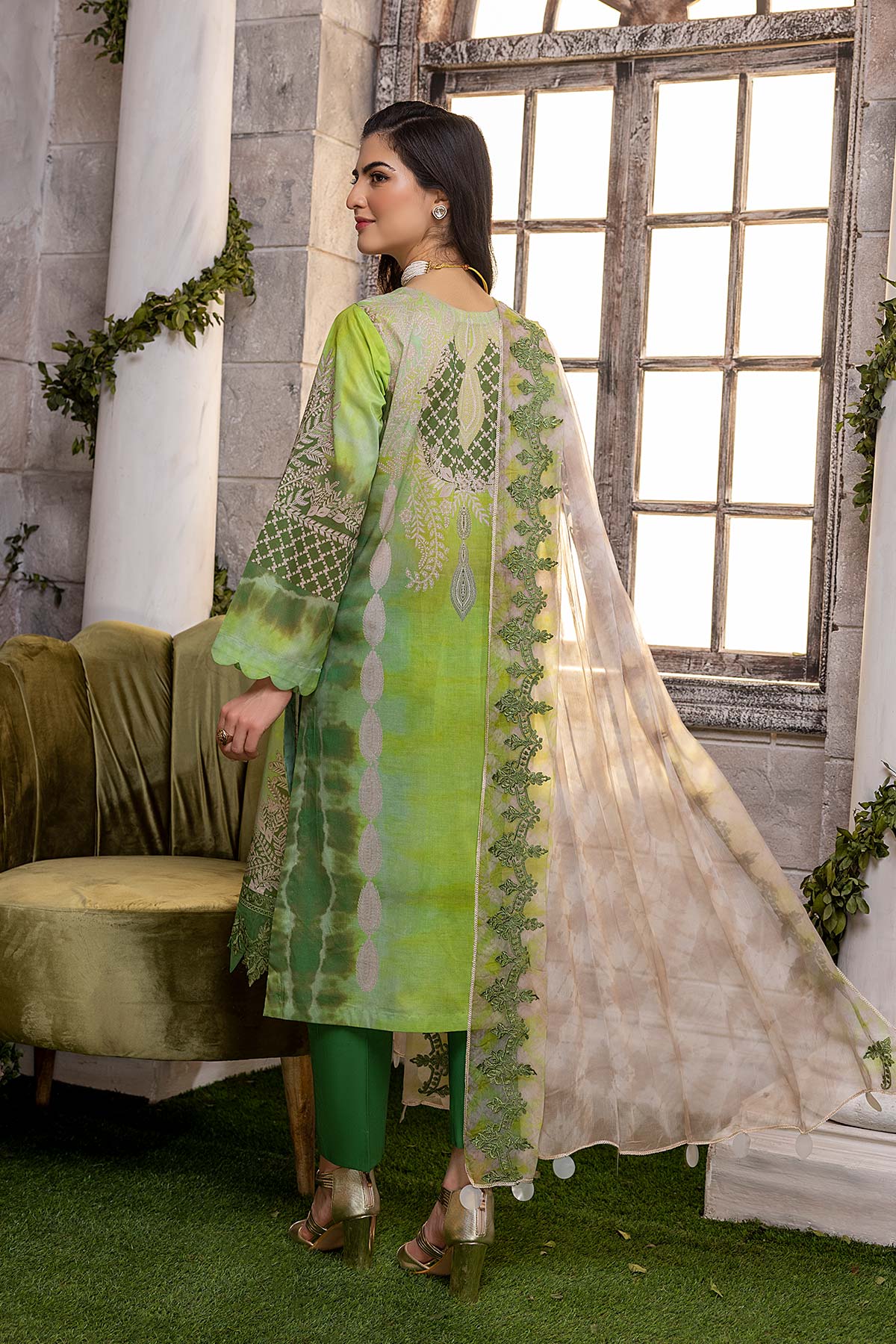 Fabric: Shirt - Printed Lawn Front + Back +Sleeves 3.4M - Embroidered Front Neck 1Pcs - Embroidered Front daman Patti 1M Trouser - Cotton Trouser 2.5 M Dupatta - Embroidered chiffon Printed Dupatta 2.5M |