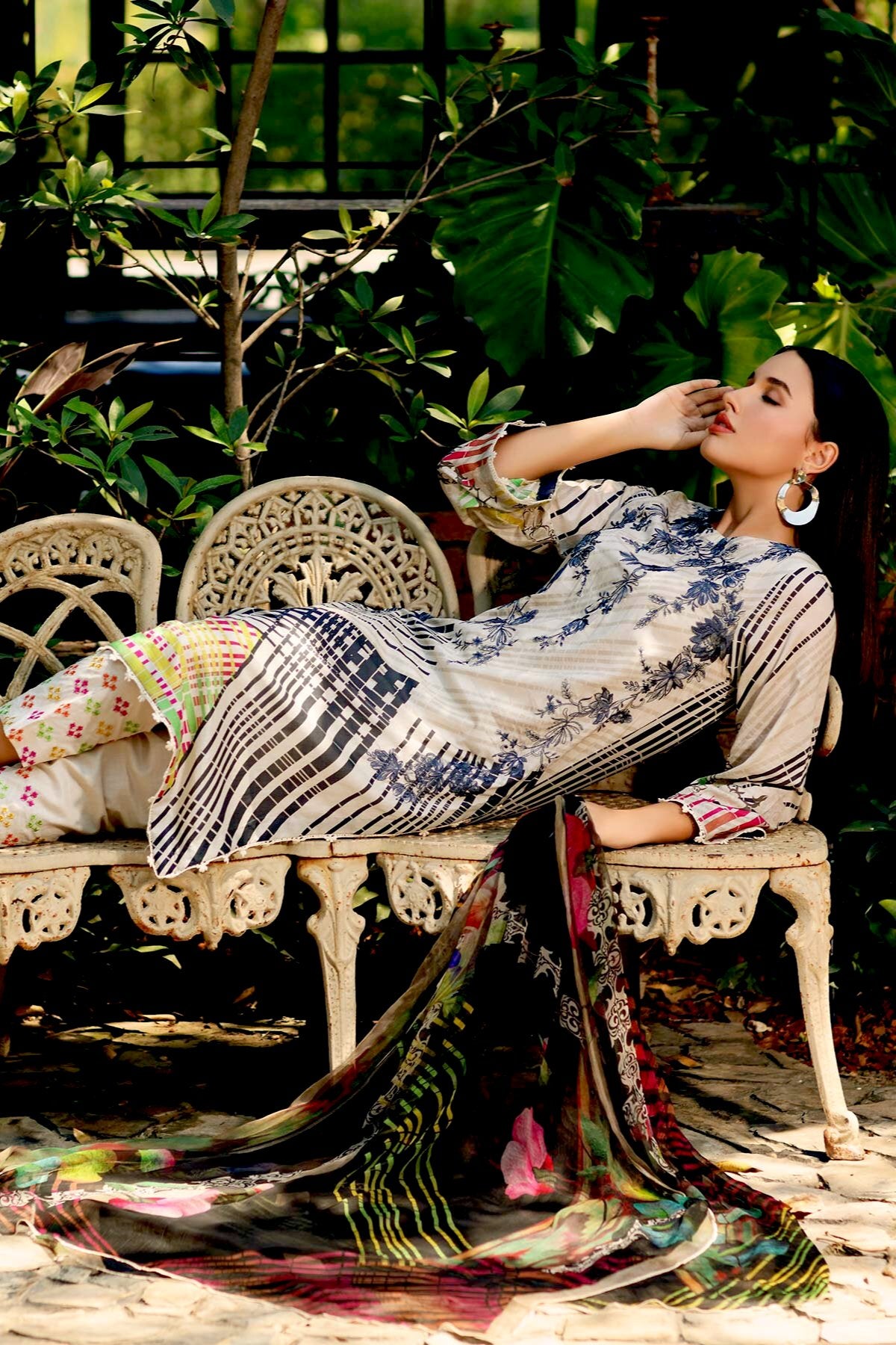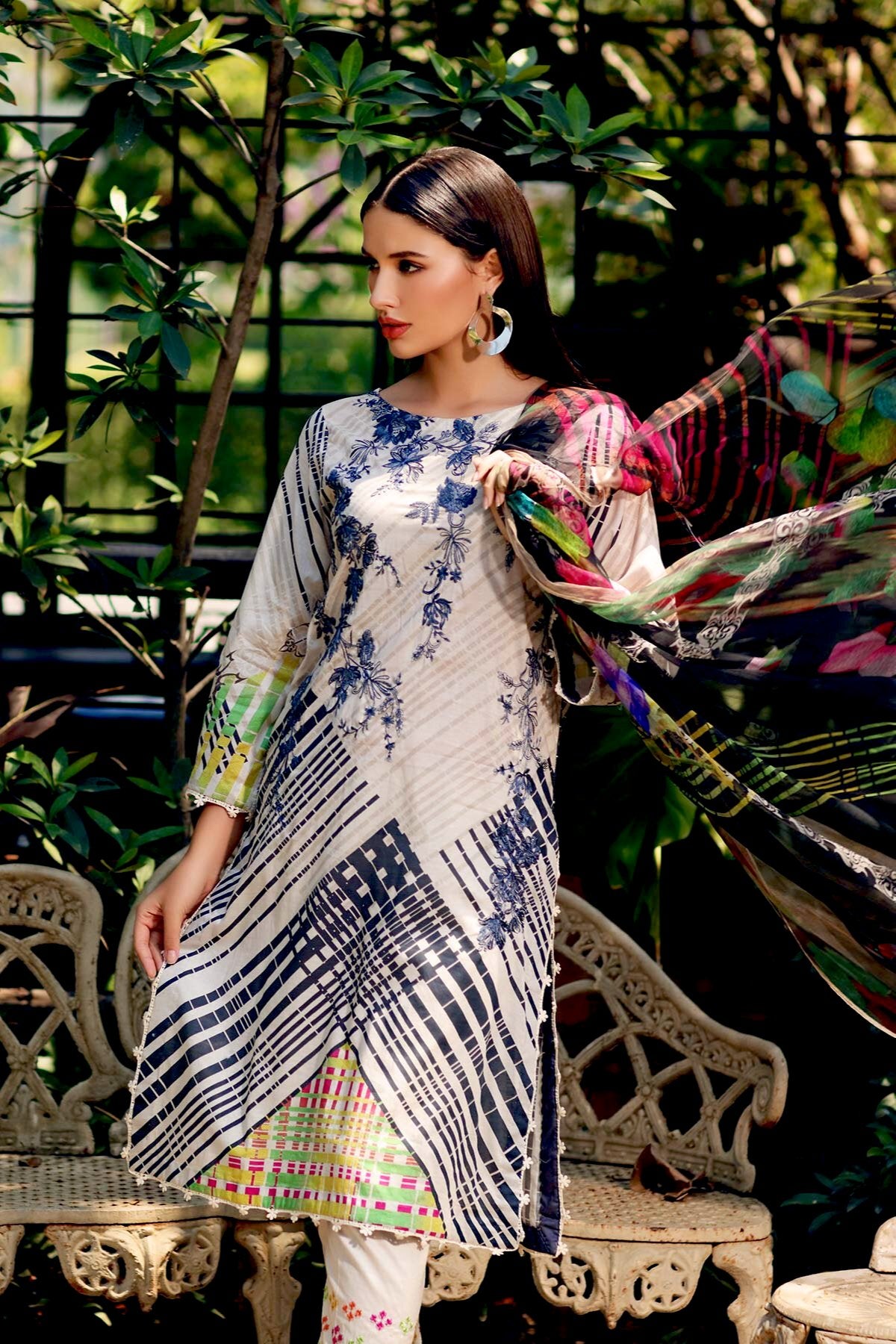 Fabric: Shirt Embroidered Digital Printed Lawn Front 1.4 m Digital Printed Lawn Back + Sleeves 2 m Trouser Embroidered Cotton Trouser 2.5 m. Dupatta Printed Chiffon Dupatta 2.5 m. |