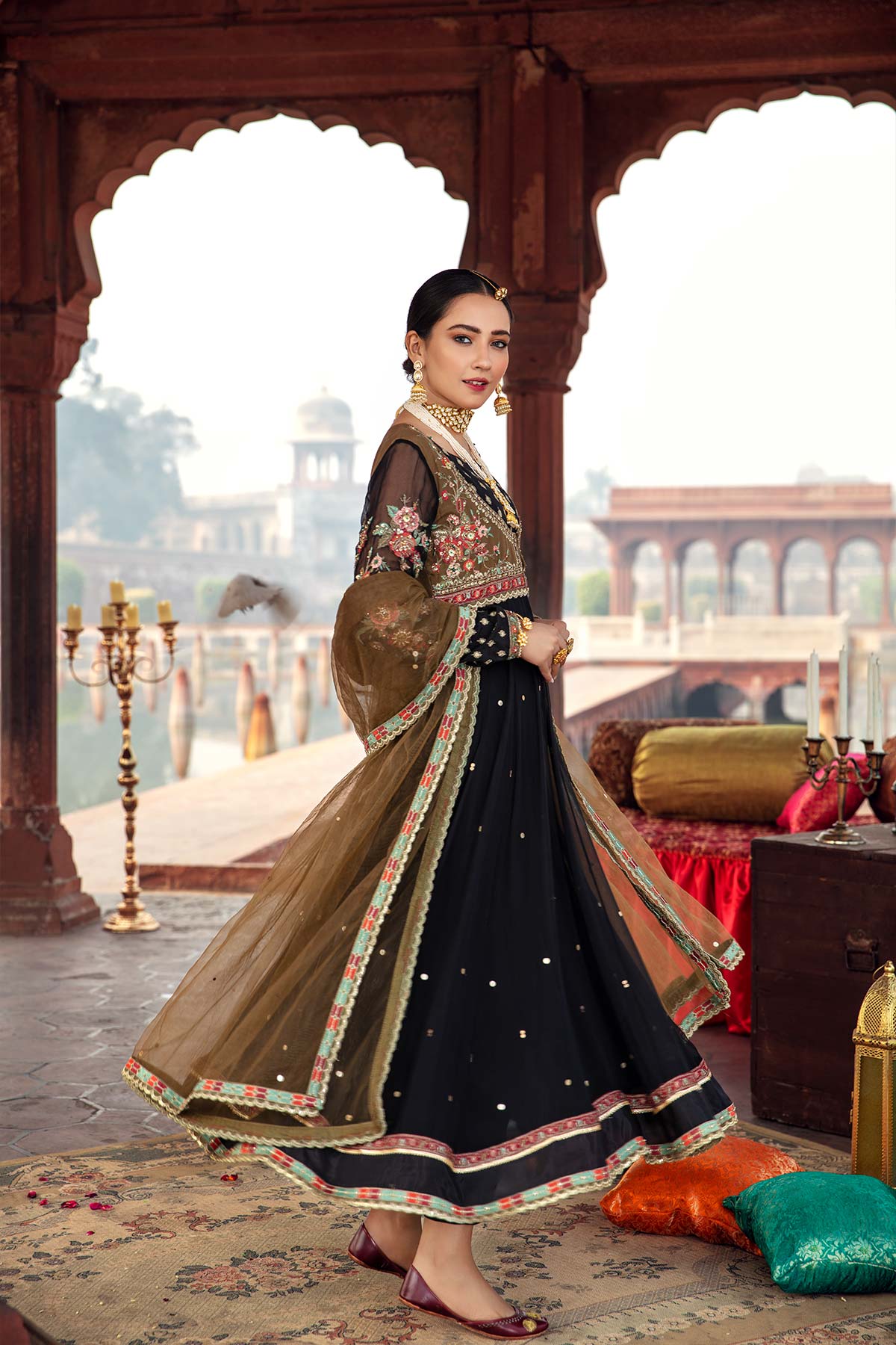 Fabric: Shirt Embroidered Front + Back Chiffon 3 m Embroidered + Adda Chiffon Sleeves 26 inches Embroidered + Adda Work Front Yoke 1 Piece Embroidered Sleeves + Neck 1 Piece Embroidered + Adda Work Front + Back Patti 4 m Embroidered Sleeves + Daman Patti 4 m Embroidered Sleeve Patti 1 m Inner Shirt 2.25 m Trouser Raw Silk Trouser 2.5 m Duppata Embroidered Net Duppata 2.5 m |