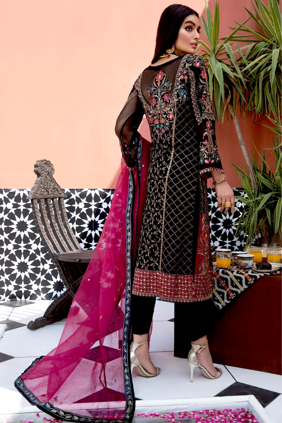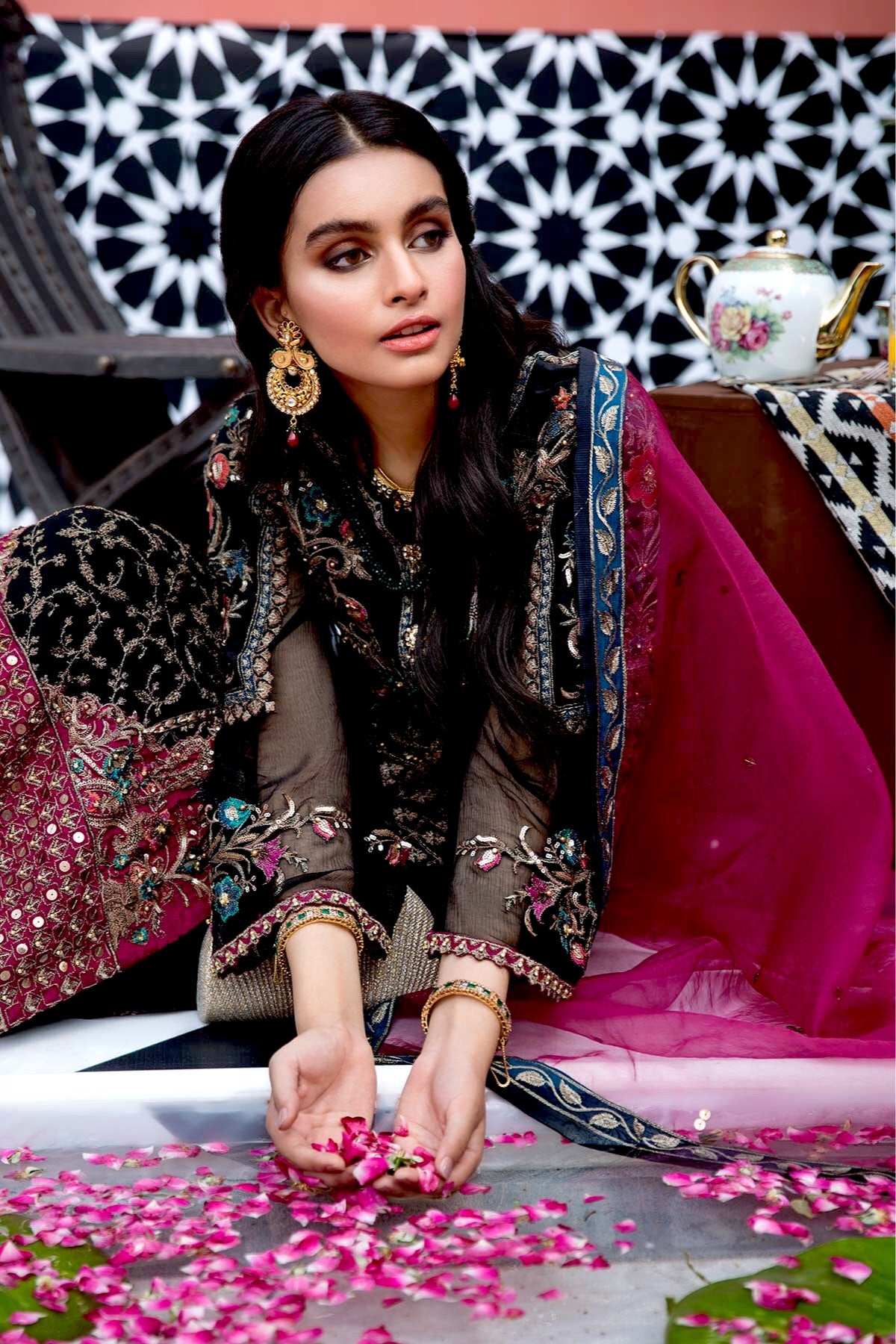 Fabric: Shirt Embroidered front chiffon 1.4M Embroidered Chiffon Back 1.4M Embroidered adda work Front Neck 1Pcs Embroidered adda work Front +Back Daman Patti 1.5M Embroidered adda work Front Daman Motif 2Pcs Embroidered adda work sleeves Chiffon 26 inches Embroidered Adda work Sleeves Motif 2Pcs Embroidered sleeves patti 1M Inner Shirt 2.25M Trouser Raw Silk Trouser 2.5 M Dupatta Adda work Organza Dupatta 2.5M Embroidered Dupatta Patti 8M Finishing Patti 1Pcs |