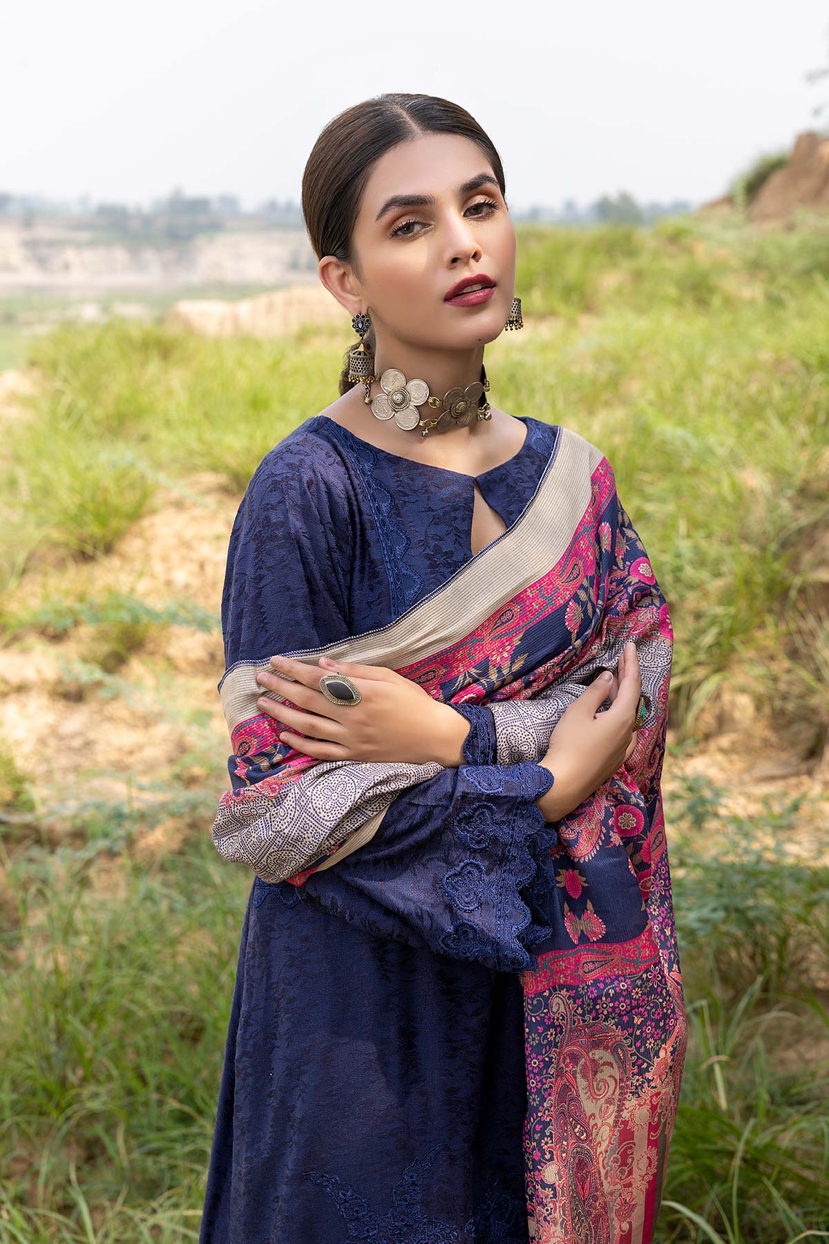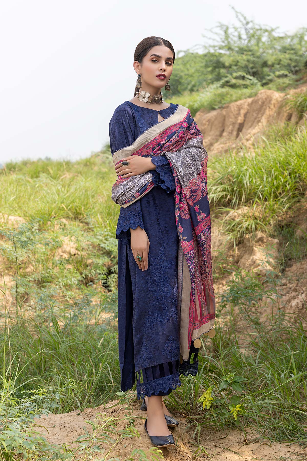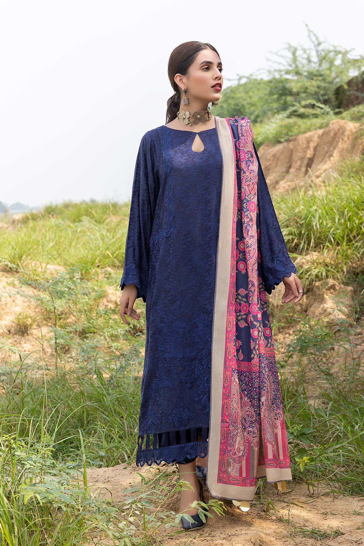 Fabric: Shirt - Embroidered Marina Jacquard Front 1.4M - Marina Jacquard Back 1.4M - Embroidered Marina Jacquard Sleeves 26 inches - Embroidered Front Neck Patti 1.4M - Embroidered Front + Back Patti 2M Trouser - Marina Jacquard Trouser 2.5M Dupatta - Printed Pashmina Shawl 2.5M |