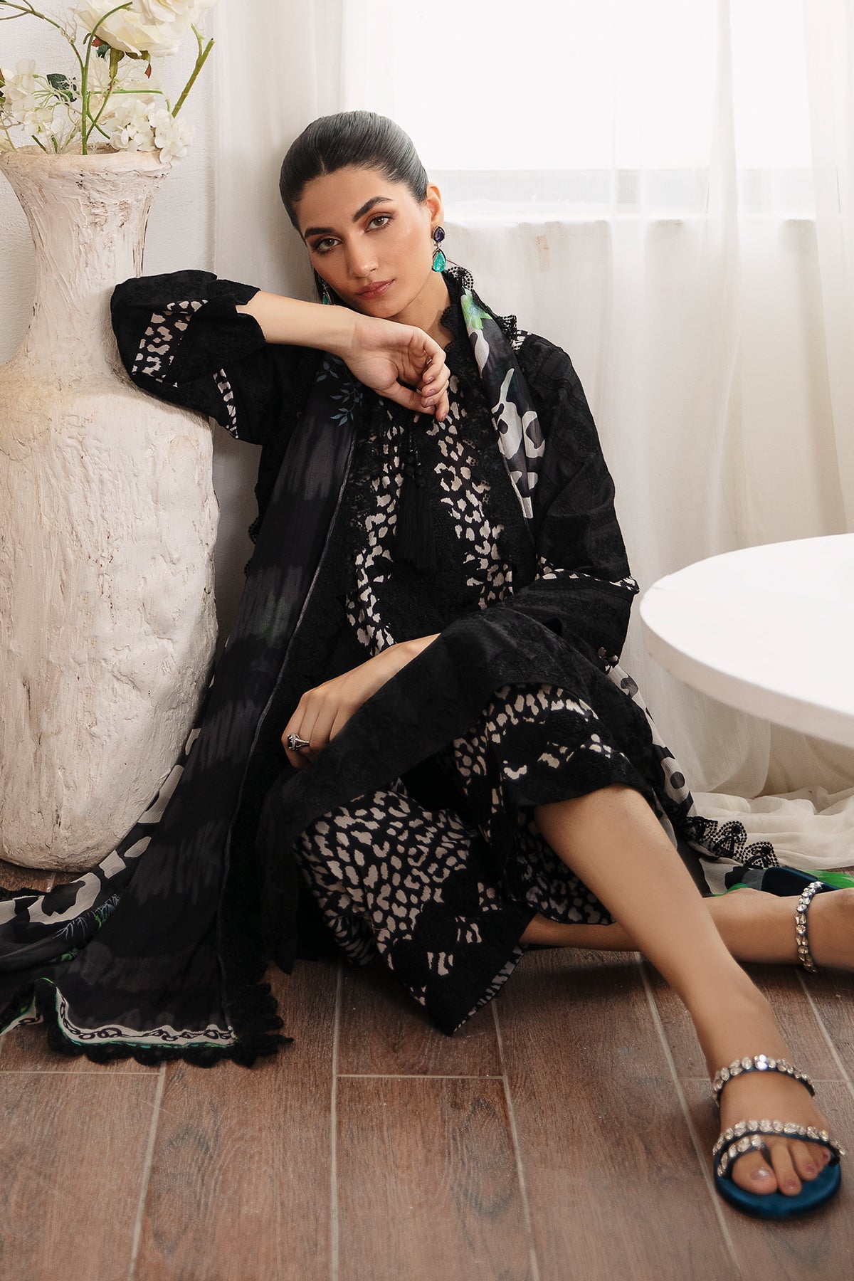 Fabric: - Front Embroidered Lawn 1.25 mtr Embroidered Sleeves Lawn 0.66 mtr Back Plain Lawn 1.25 mtr Embroidered Front+Back+Sleeves+Trousers Patti 4 mtr Trousers Cotton Printed 2.50 mtr Embroidered Dupatta Patti 8 mtr Dupatta Printed Chiffon 2.50 mtr Finishing Patti 1 pcs |