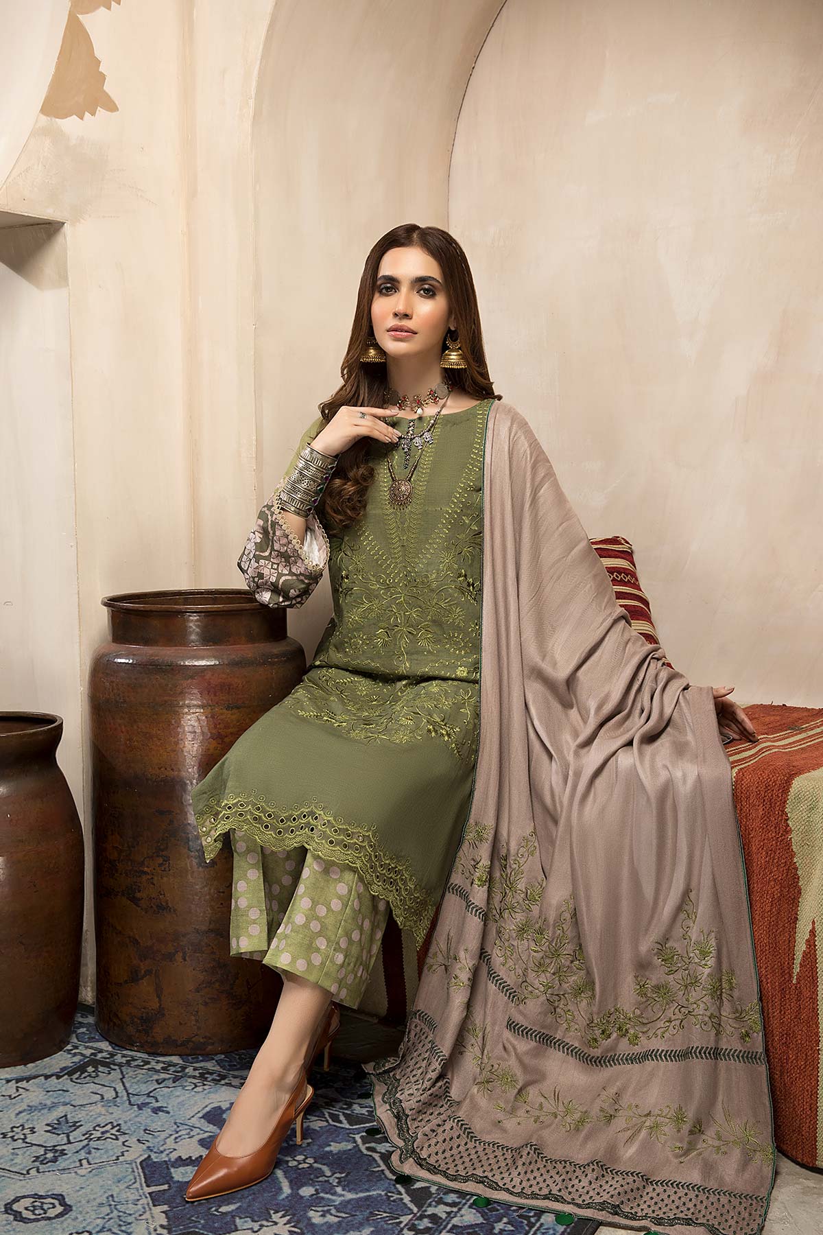 Charizma Naranji · Embroidered Khaddar With Khaddar Shawl Vol 1 – CNW-03