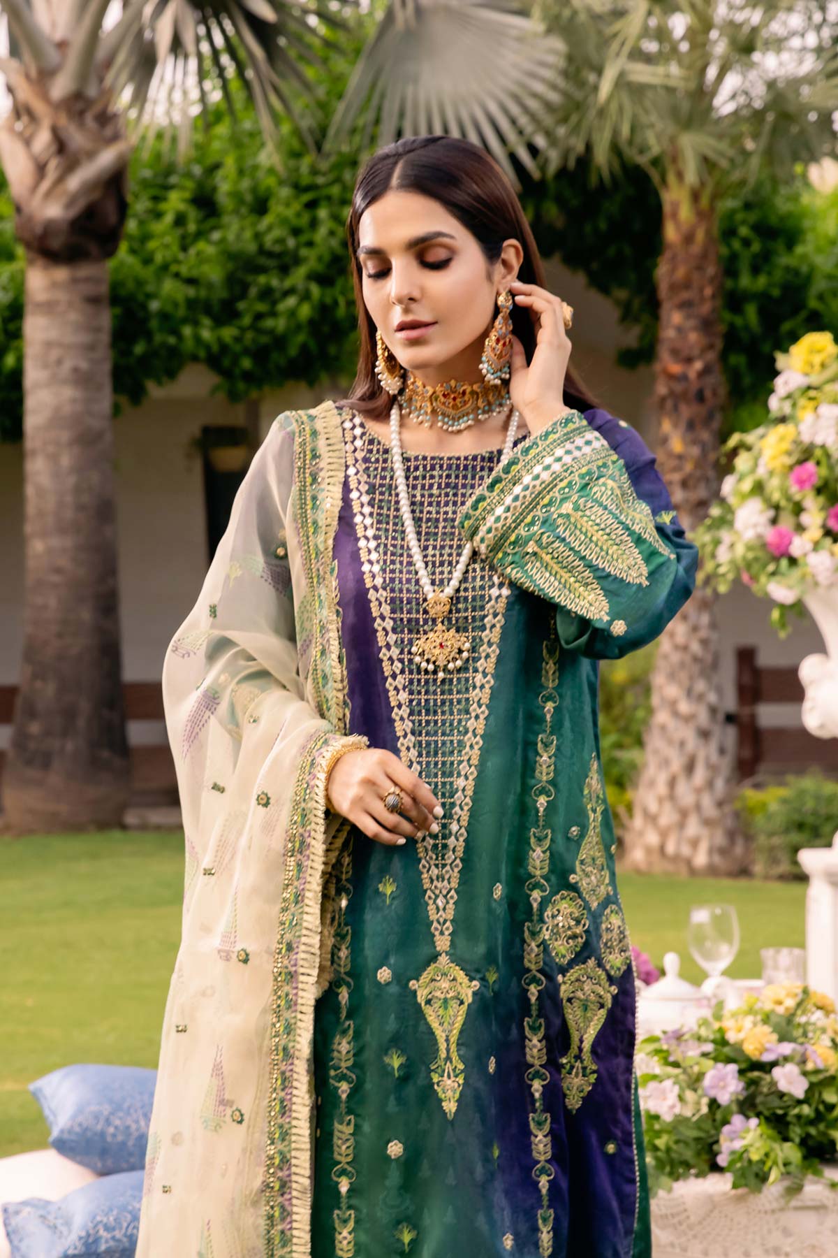 - Embroidered Organza Sublimation Printed Dupatta 2.5M