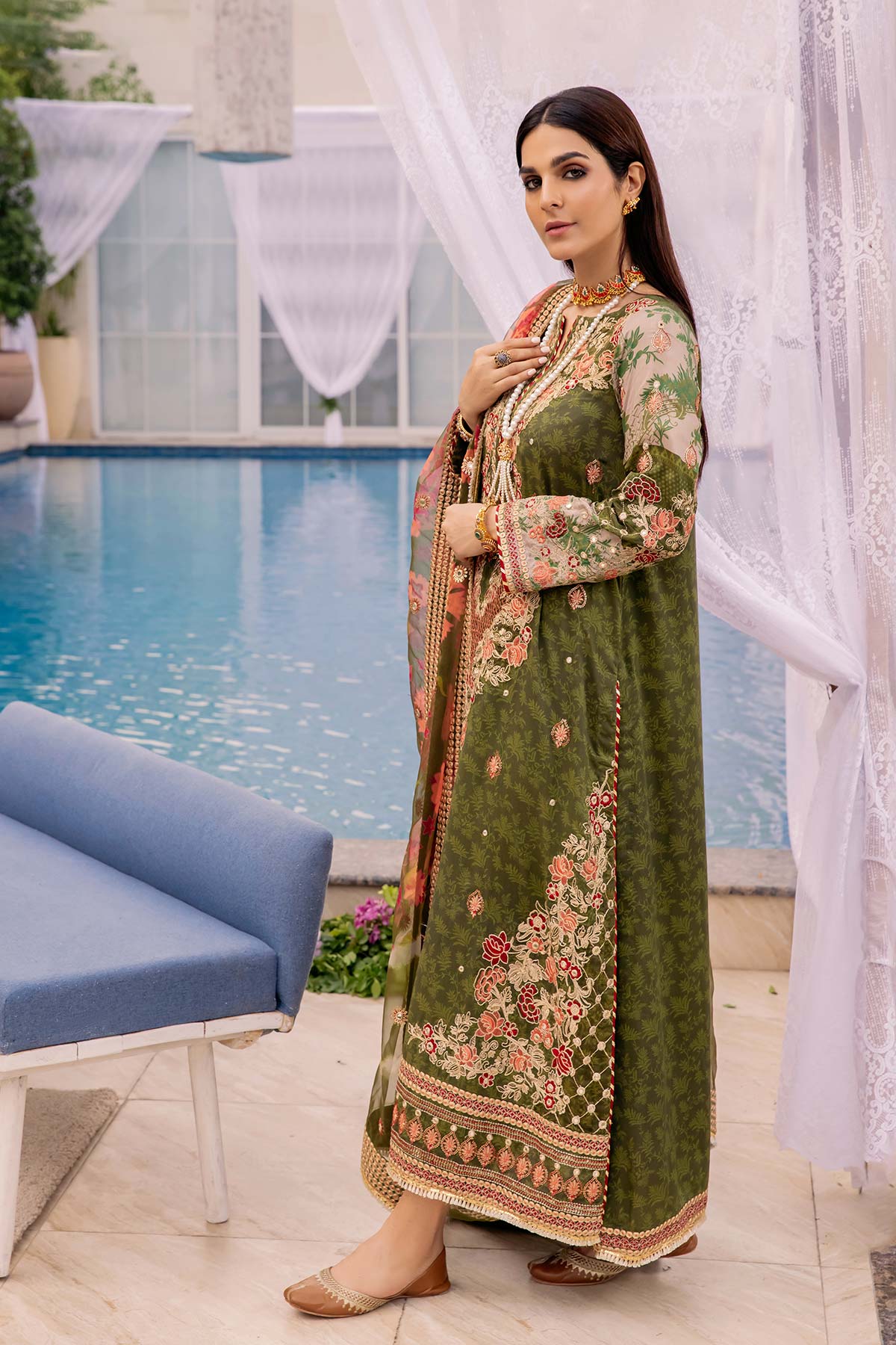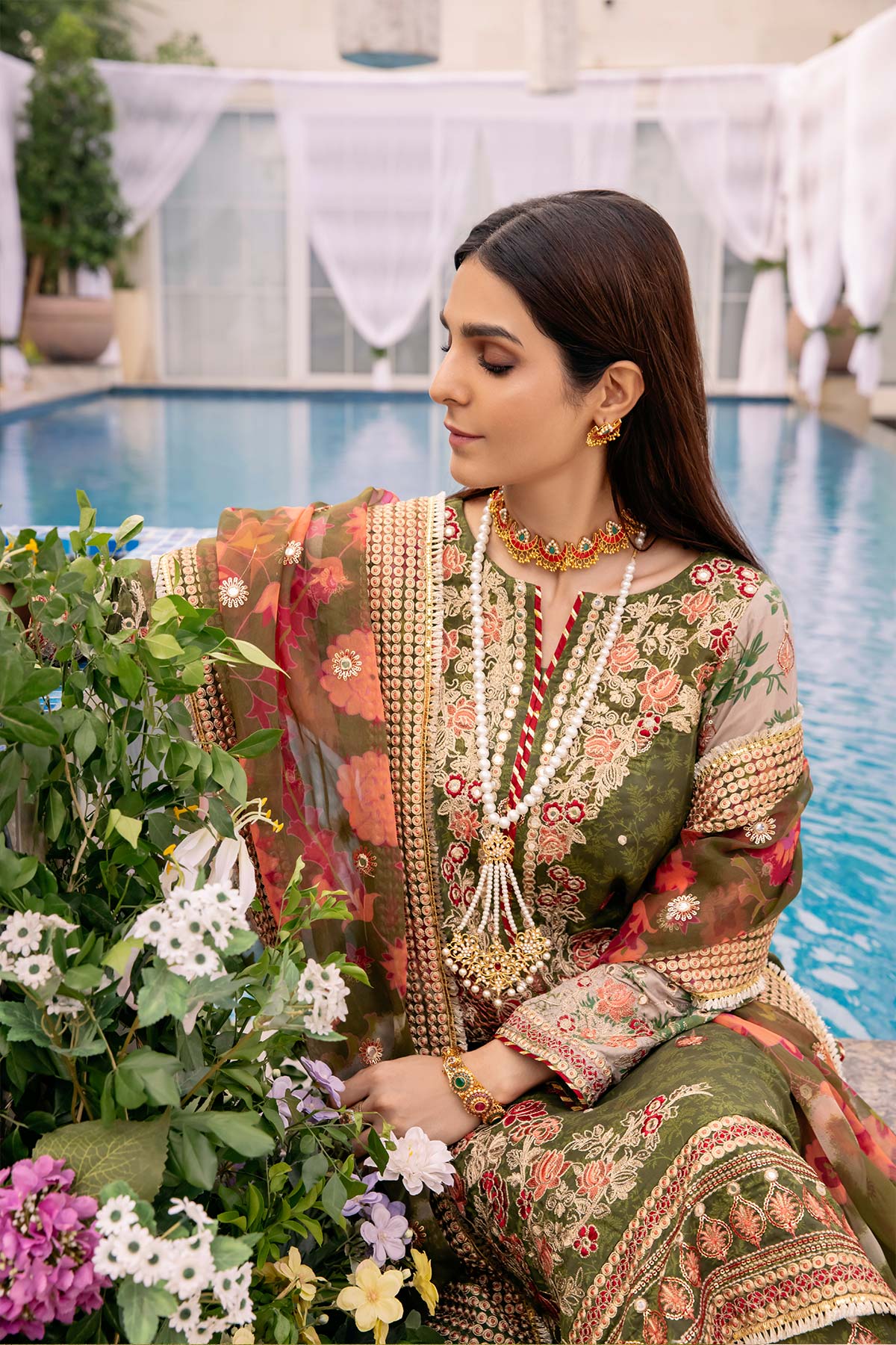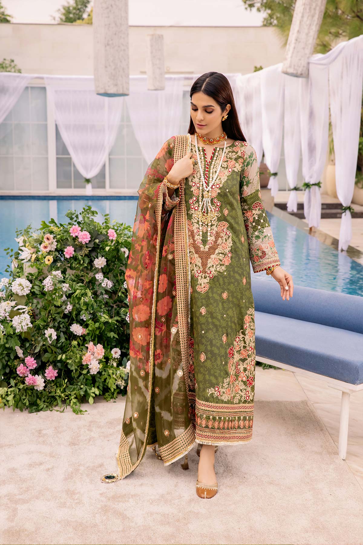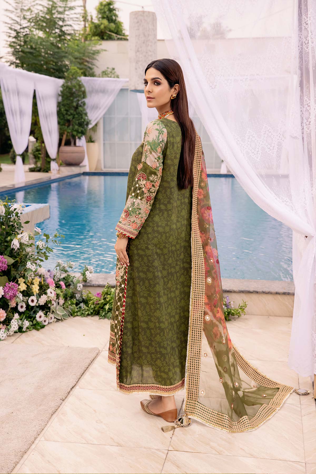 Fabric: Shirt - Embroidered Viscose Printed Silk Front 1.4M - Embroidered Viscose Printed Silk Sleeves 26 inches - Printed Viscose Silk Back 1.4M - Embroidered Front Daman Motif 2Pcs - Embroidered Front Daman Patti 1M - Embroidered Back Daman Patti 1M Trouser - Embroidered Printed Viscose Silk Trouser 2.5M Dupatta - Embroidered Organza Sublimation Printed Dupatta 2.5M - Embroidered Dupatta Patti 2.5M |